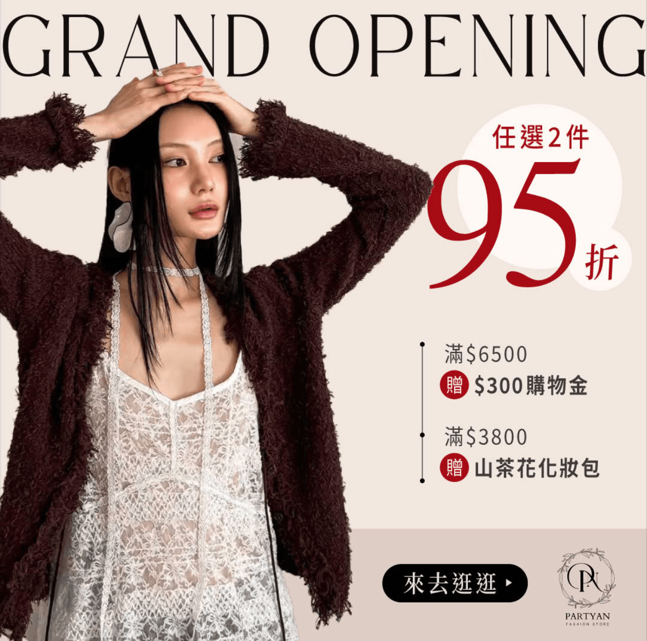 全館任選 2 件 95 折 + 滿 NT$6,500 送購物金 $300