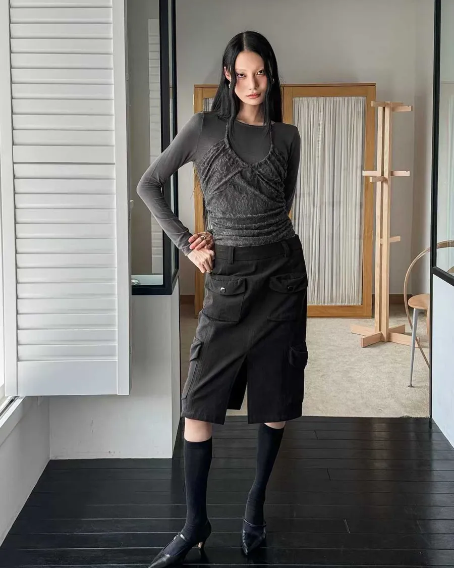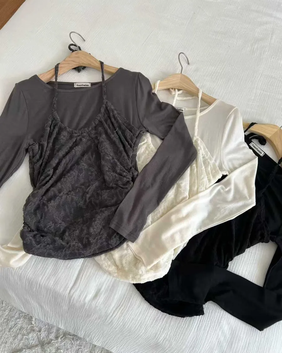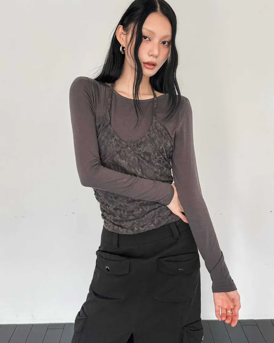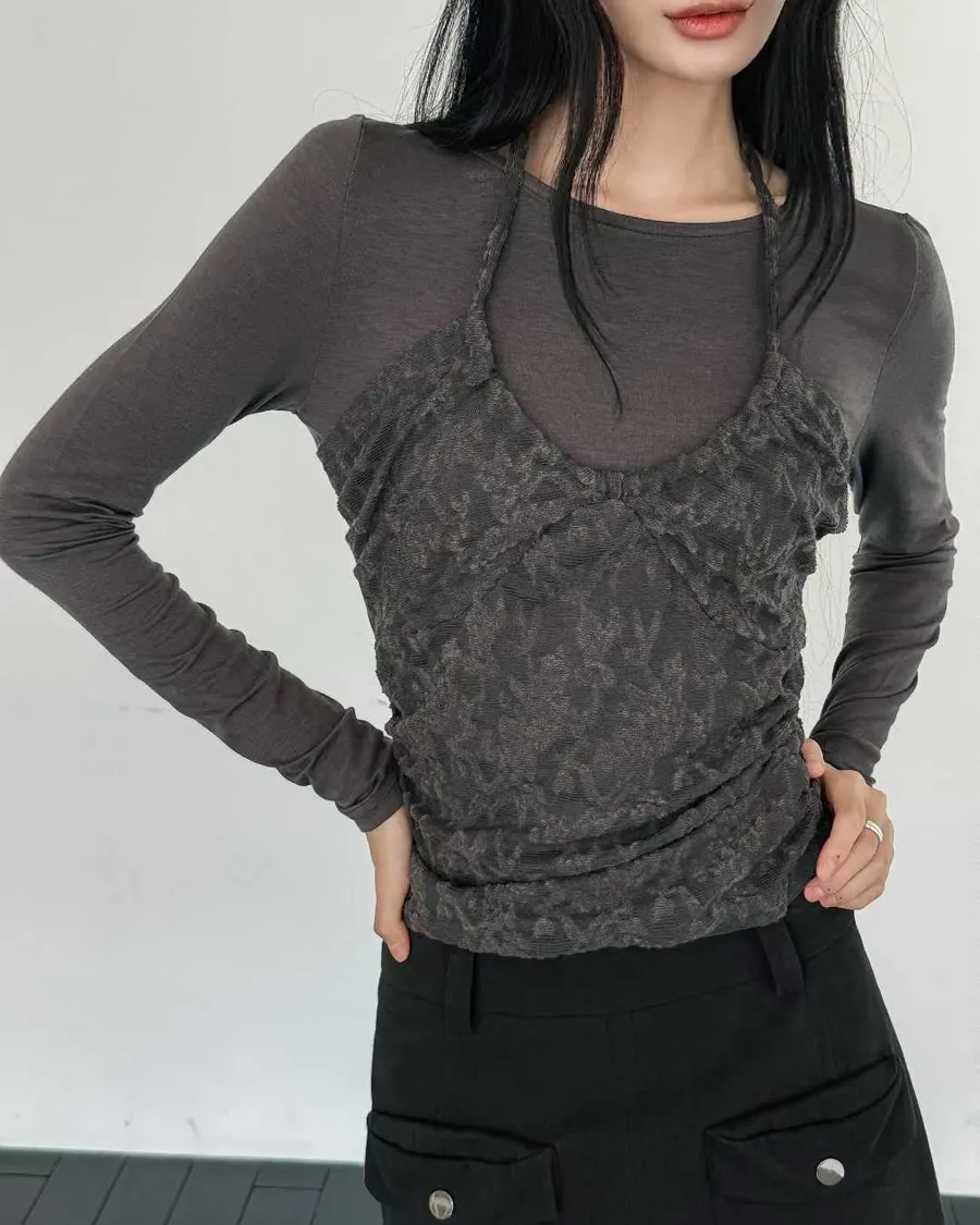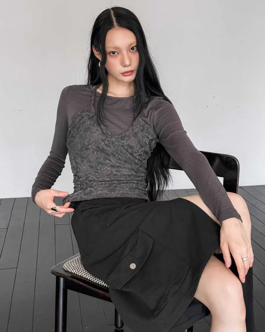 - 疊穿感吊帶蕾絲設計 → 落差層次,視覺顯瘦