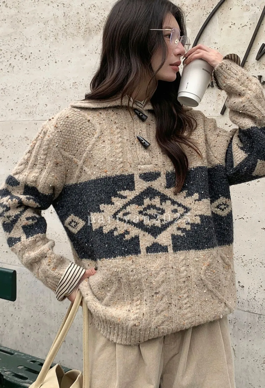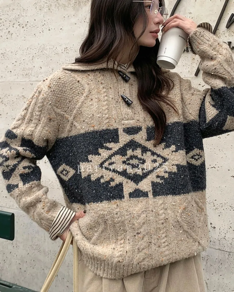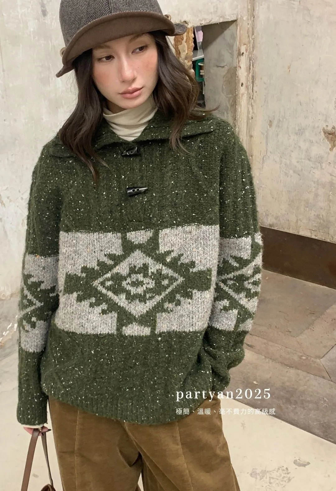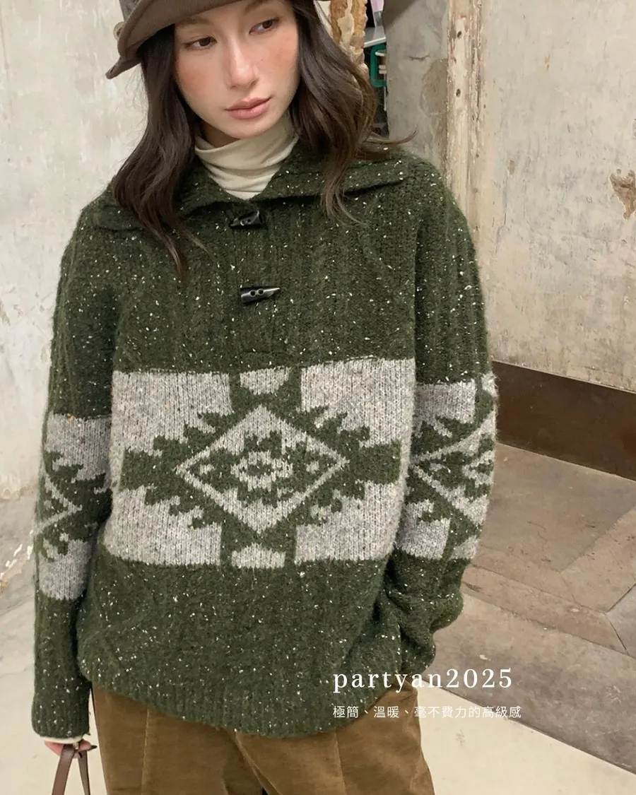 PARTYAN 設計款 Fair Isle Toggle Knit Sweater|費爾島翻領牛角扣羊毛毛衣