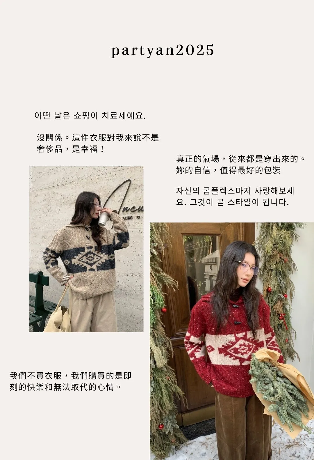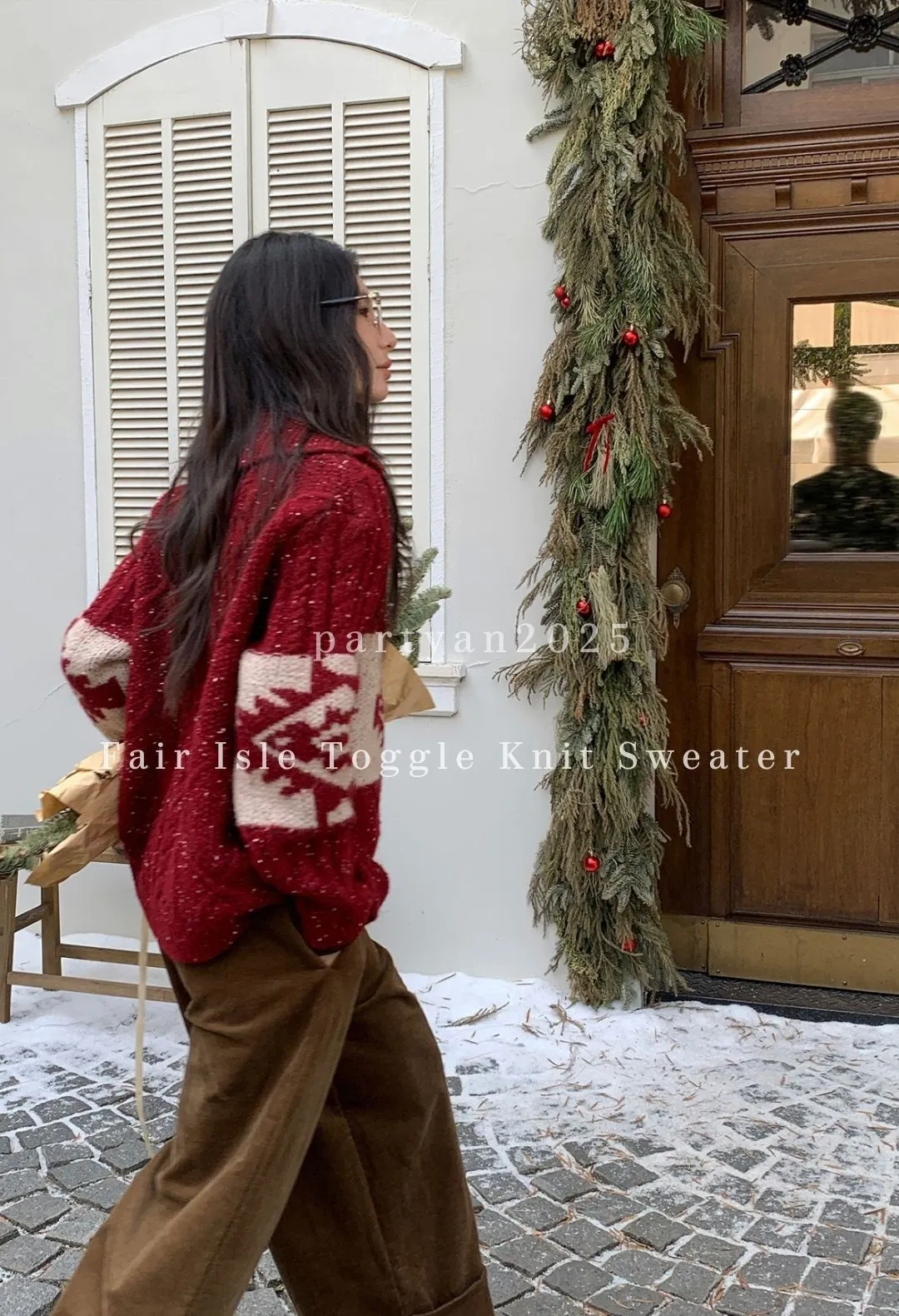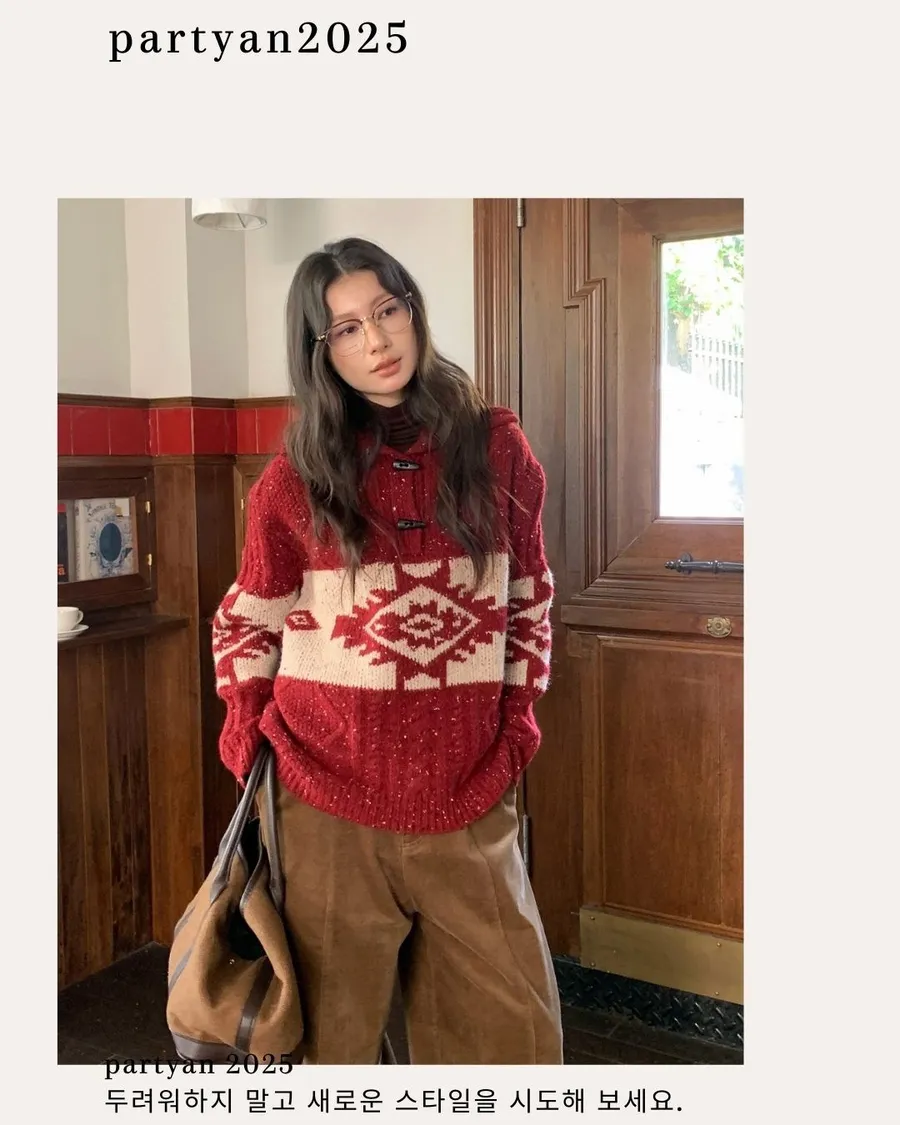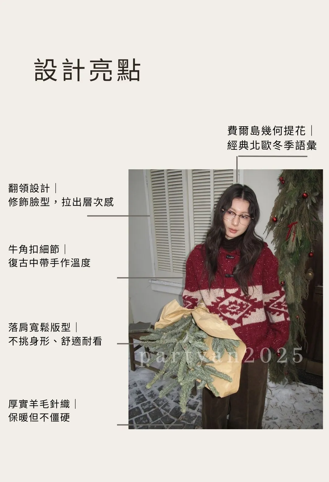 PARTYAN 設計款 Fair Isle Toggle Knit Sweater|費爾島翻領牛角扣羊毛毛衣
