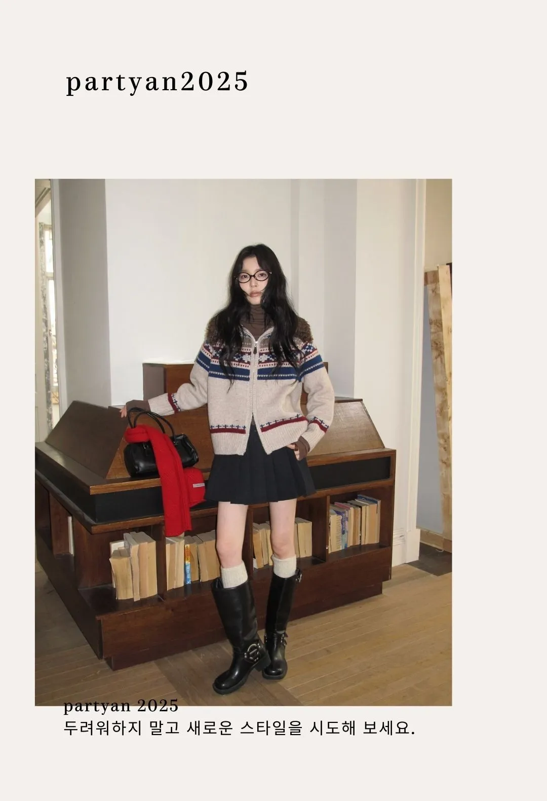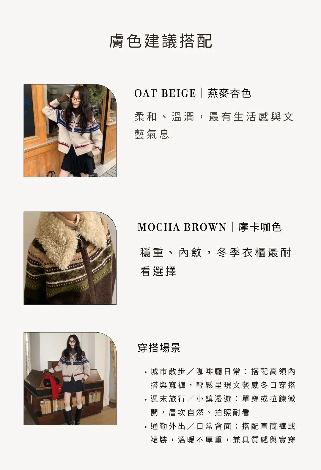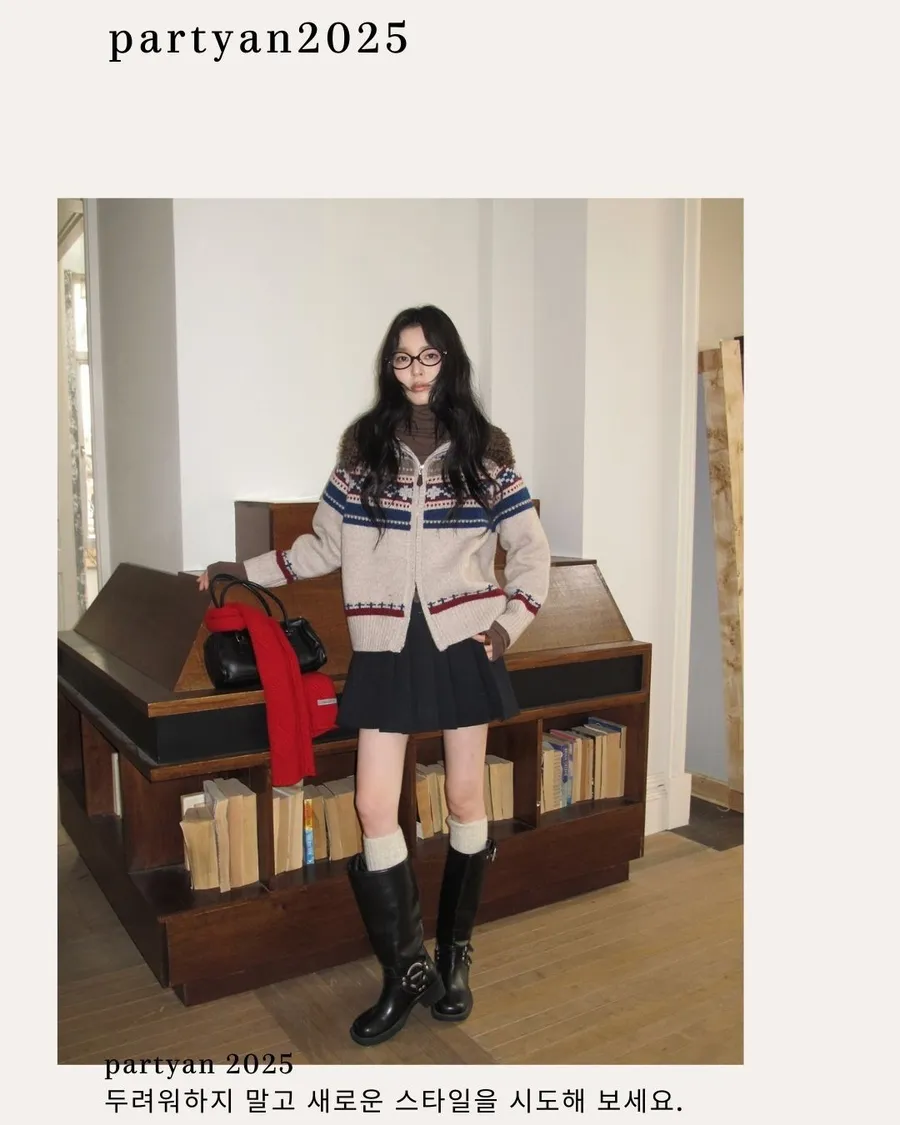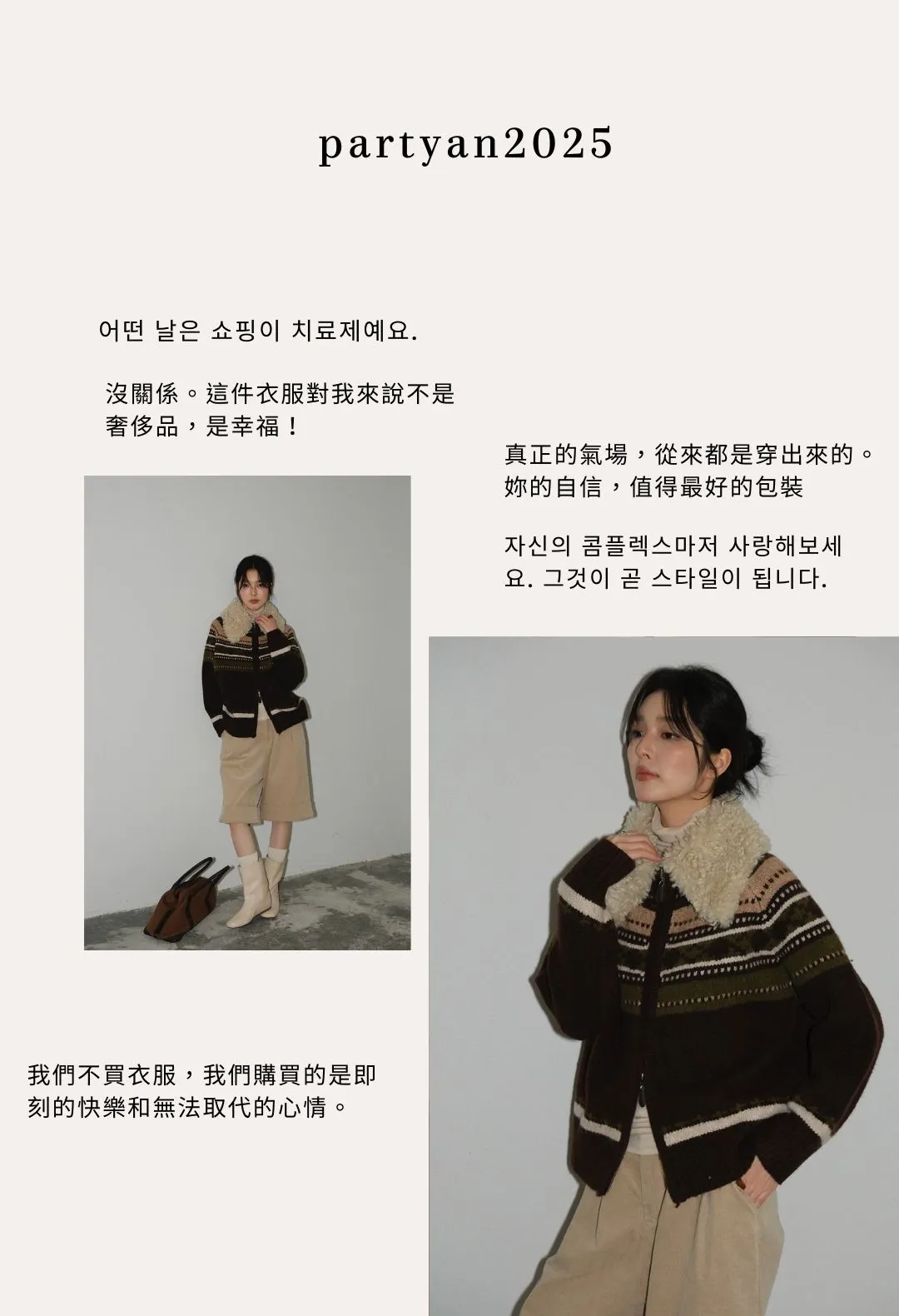 PARTYAN 設計款 Fair Isle Shearling Collar Knit Jacket|費爾島毛領拼色羊毛針織外套