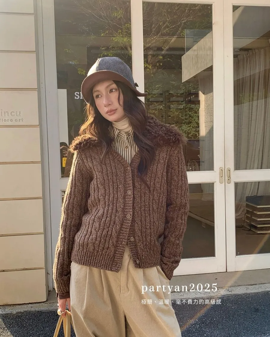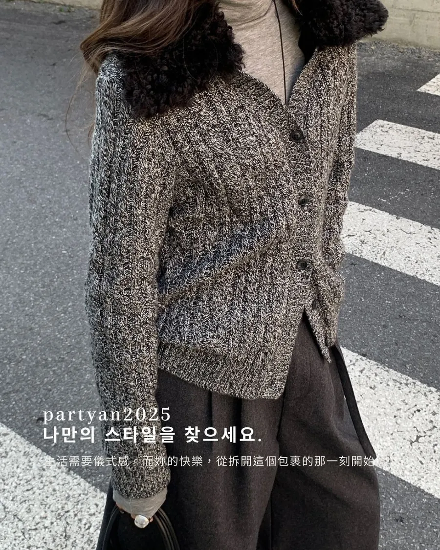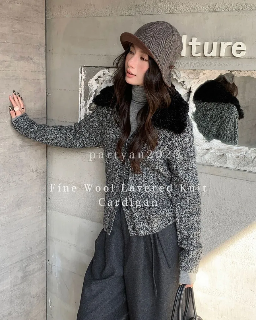 PARTYAN 設計款 Fine Wool Layered Knit Cardigan|細羊絨復古花紗假兩件毛衣開衫