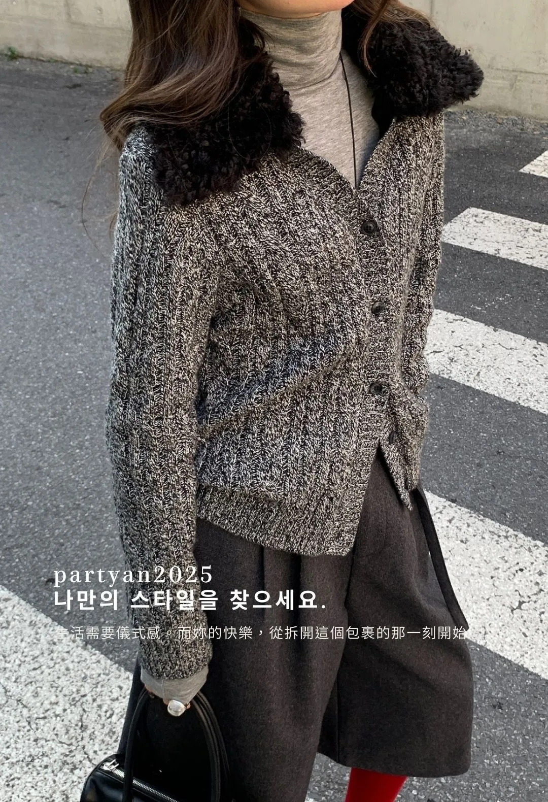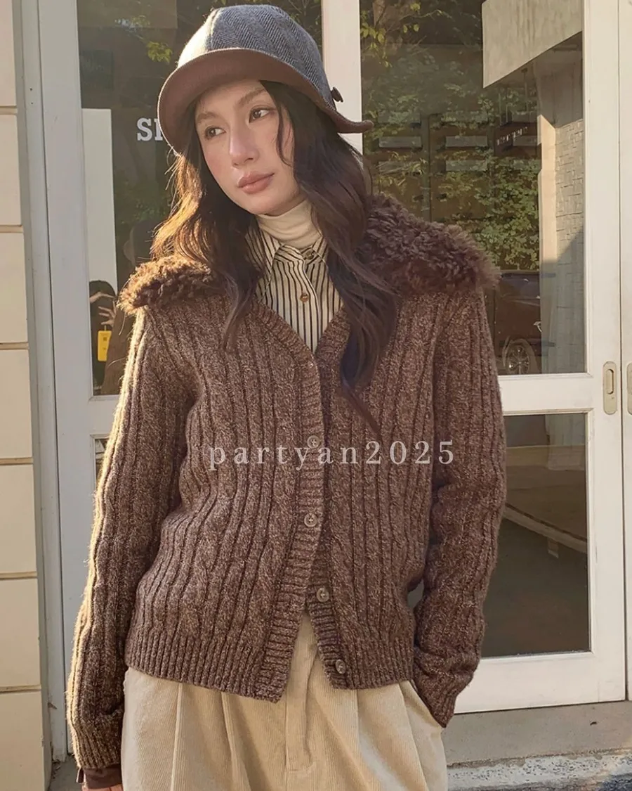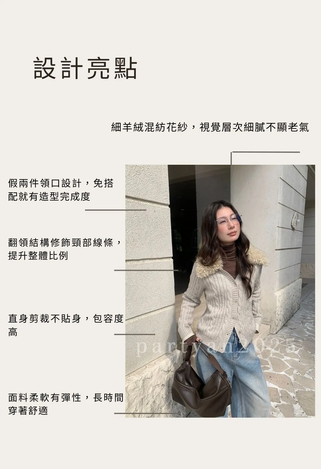 PARTYAN 設計款 Fine Wool Layered Knit Cardigan|細羊絨復古花紗假兩件毛衣開衫
