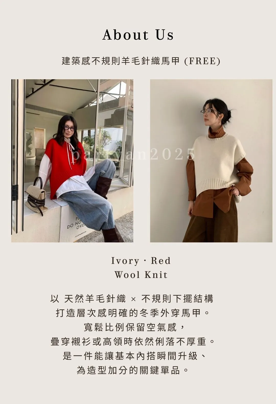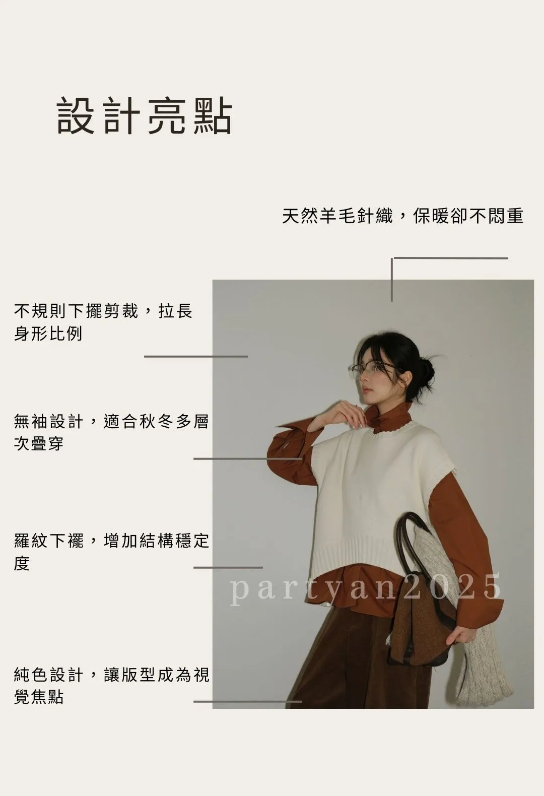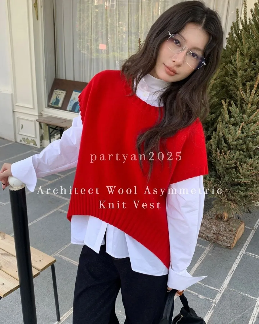 PARTYAN 設計款 Architect Wool Asymmetric Knit Vest|建築感不規則羊毛針織馬甲