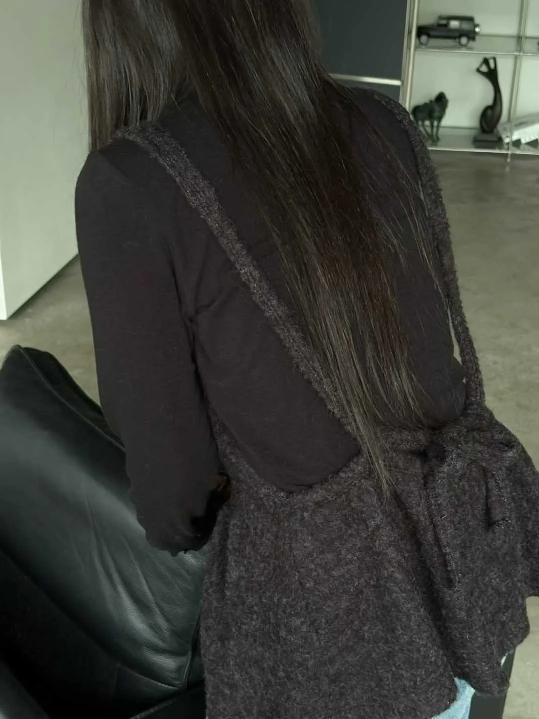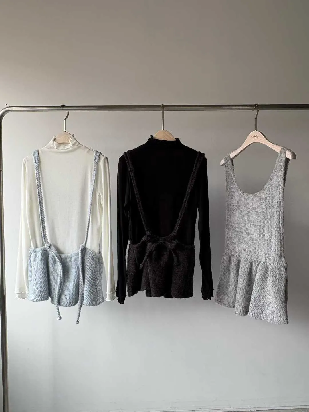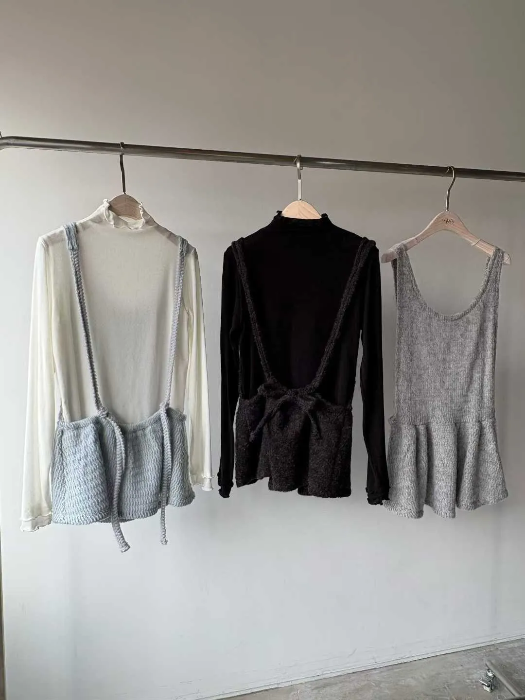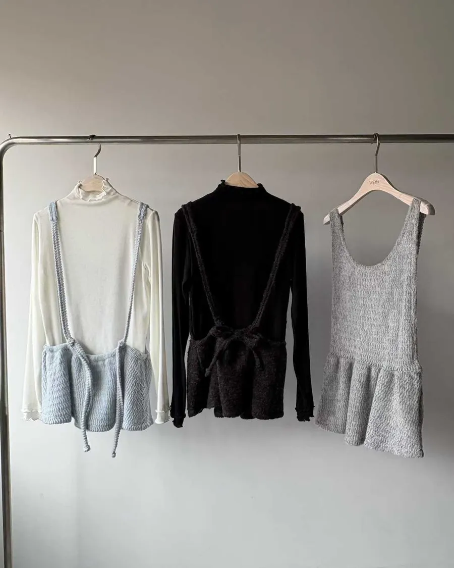 後綁帶可自由調節,與高領或貼身上衣疊穿時展現柔美層次。