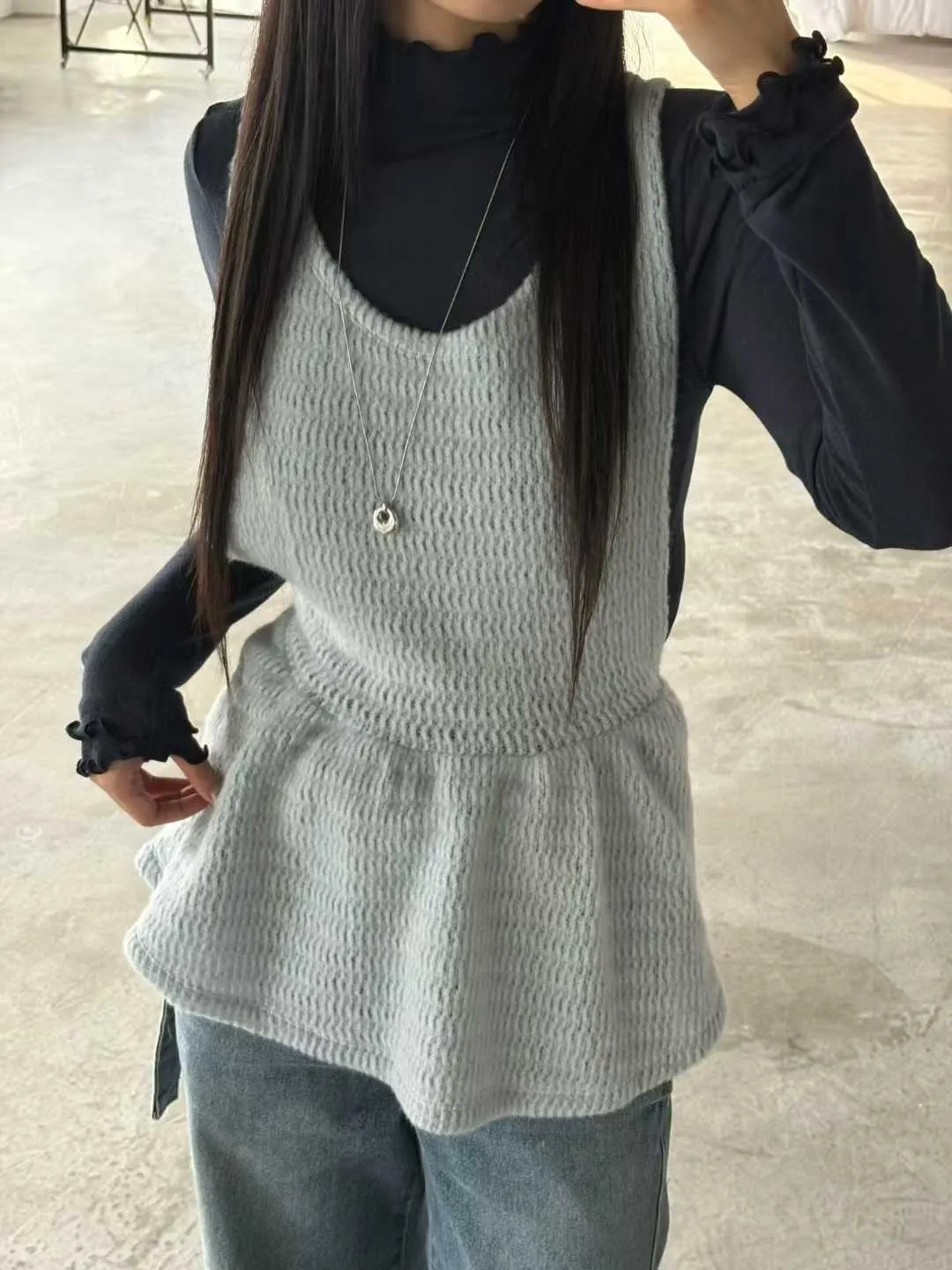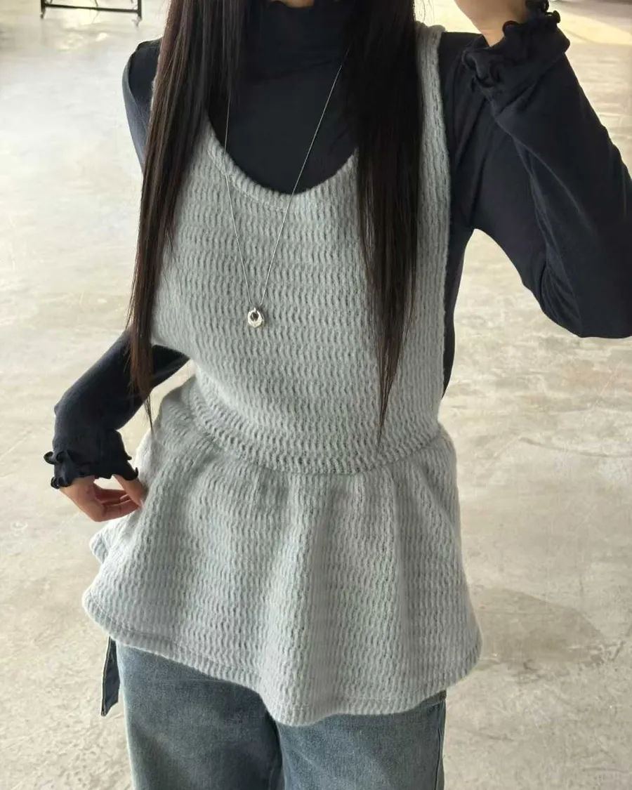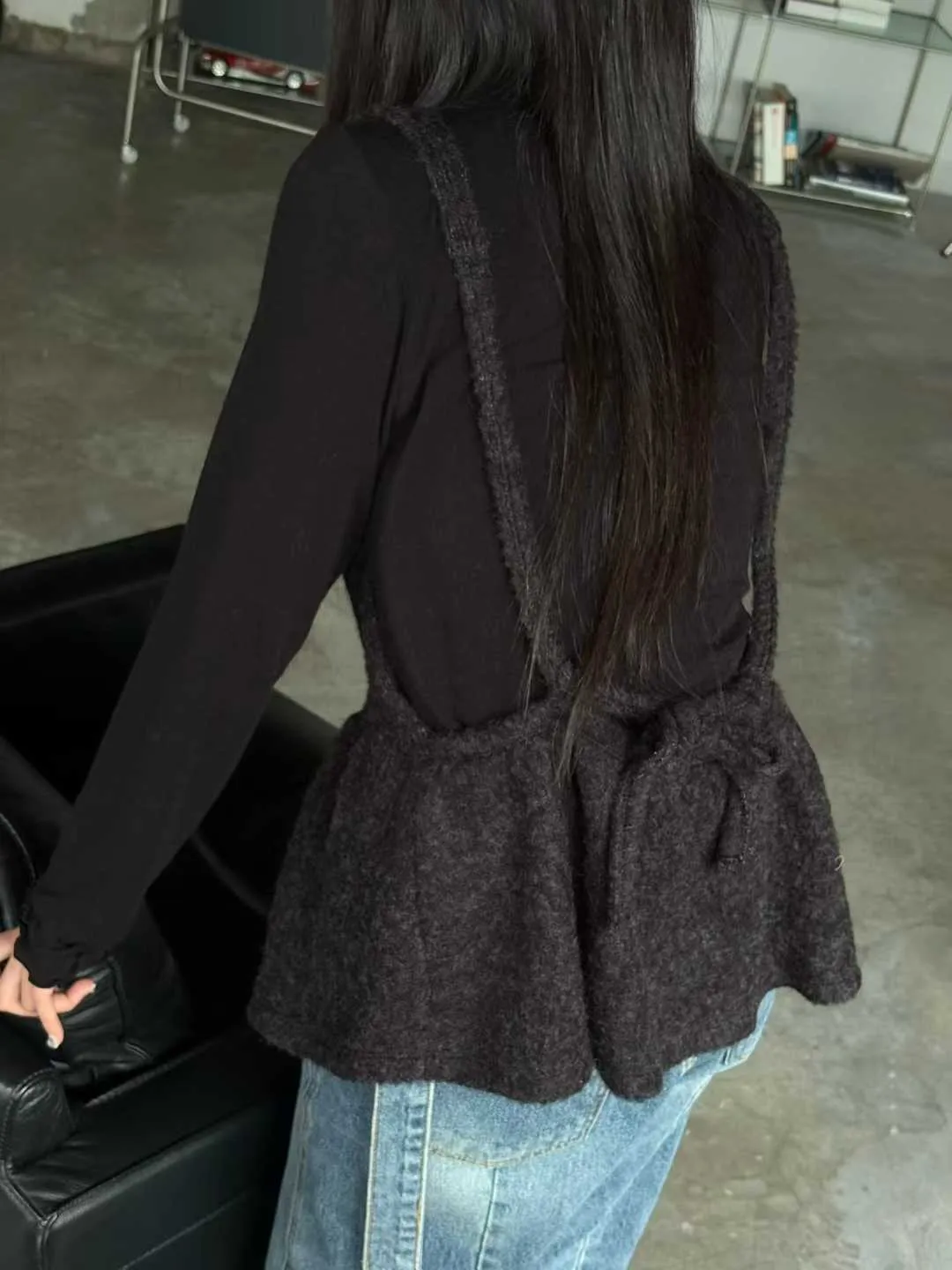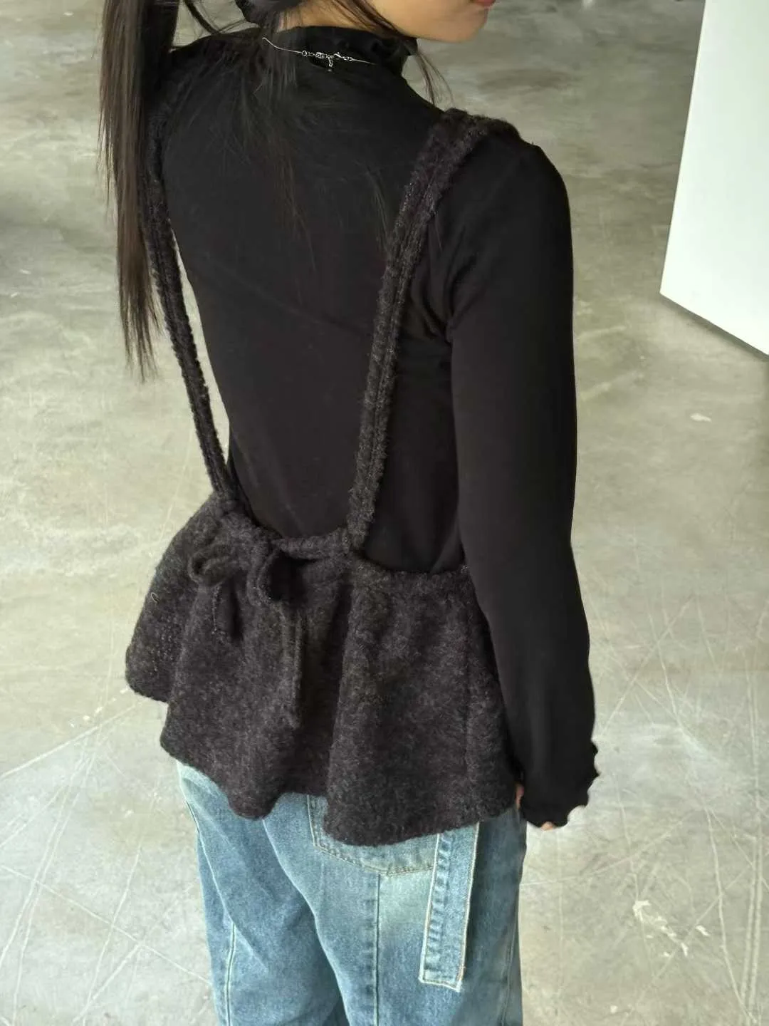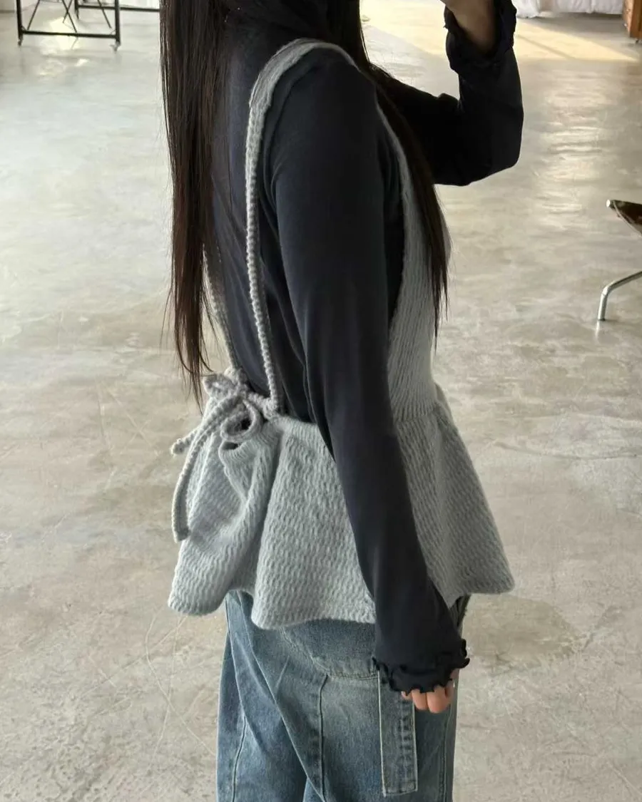 後綁帶可自由調節,與高領或貼身上衣疊穿時展現柔美層次。