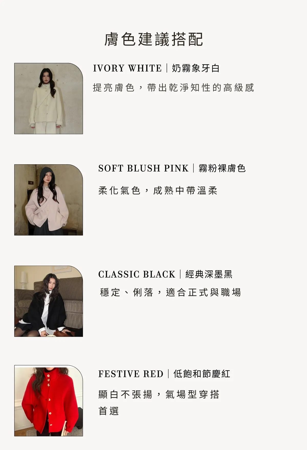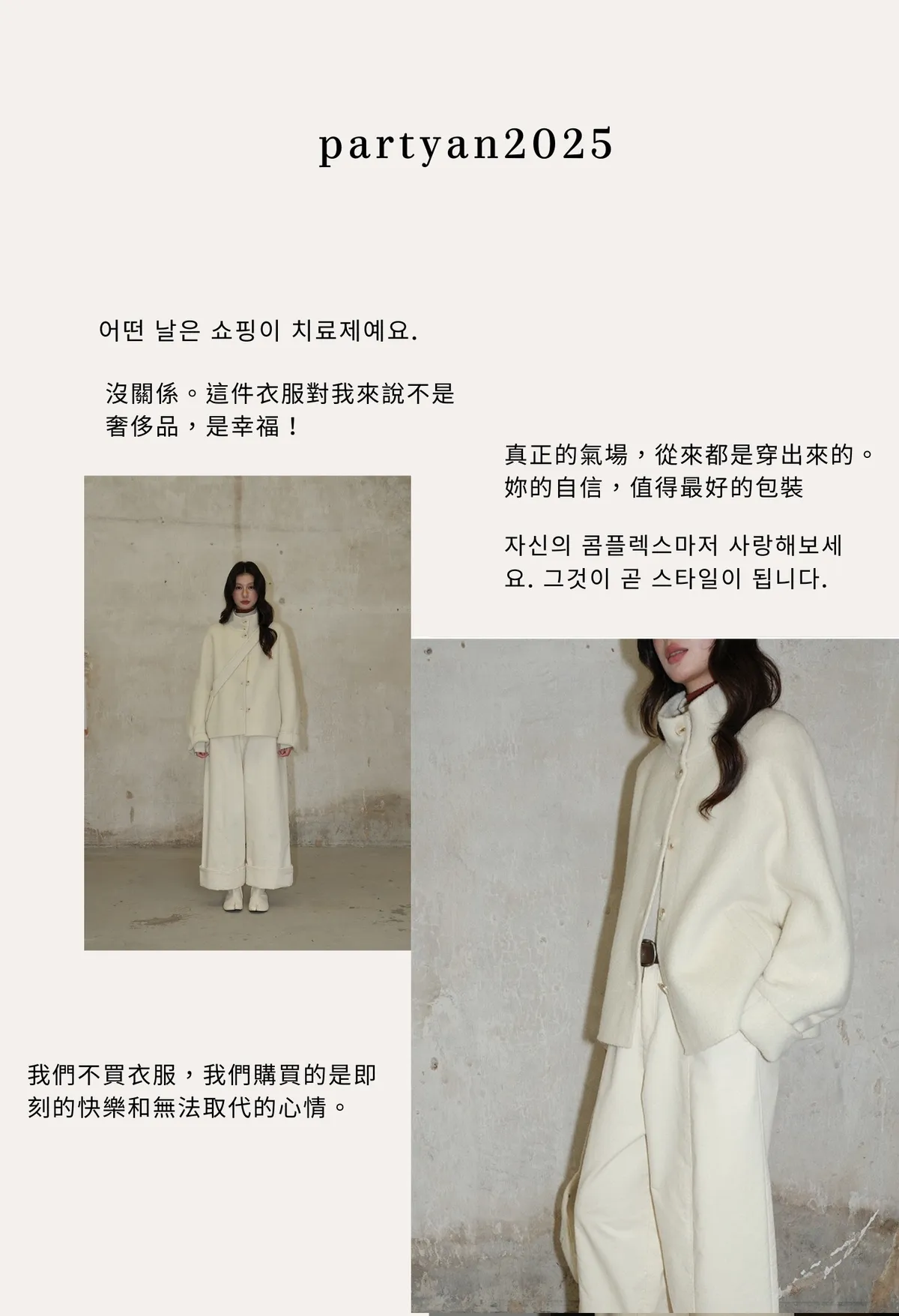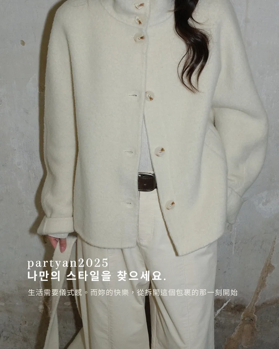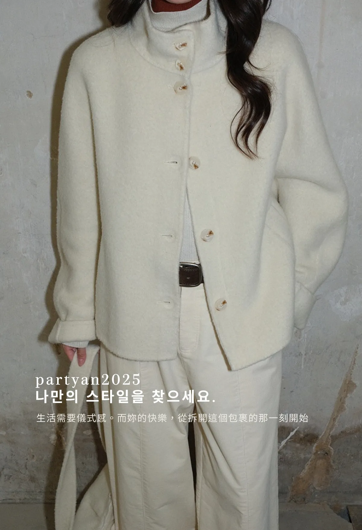 PARTYAN 設計款 Maison Élan Wool Jacket|法式立領斜襟羊毛短外套+牛角包
