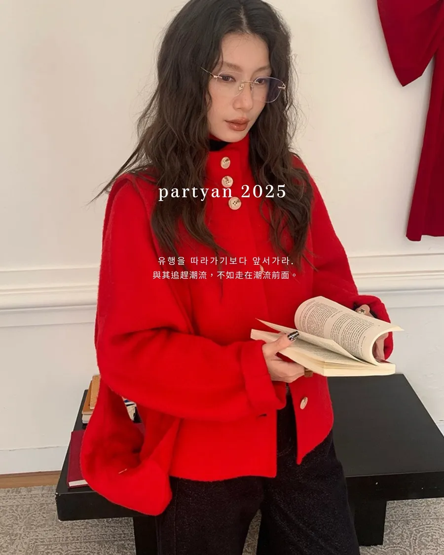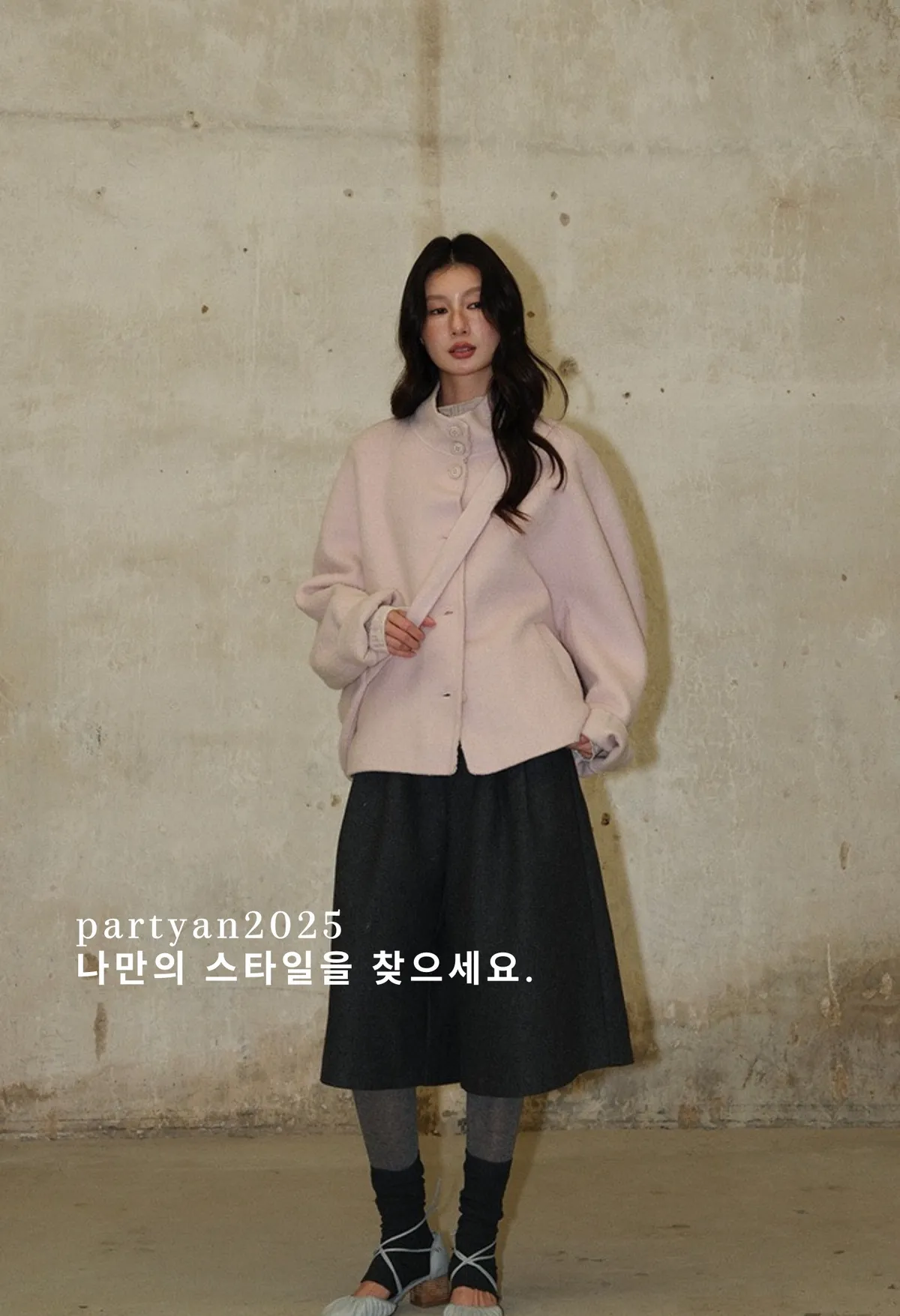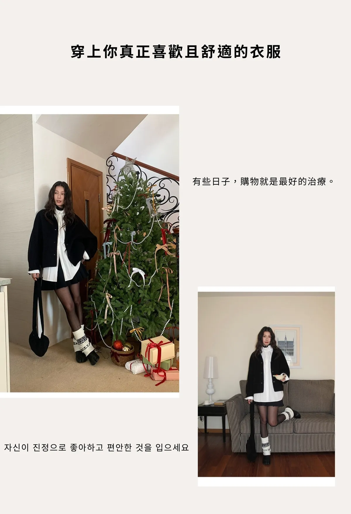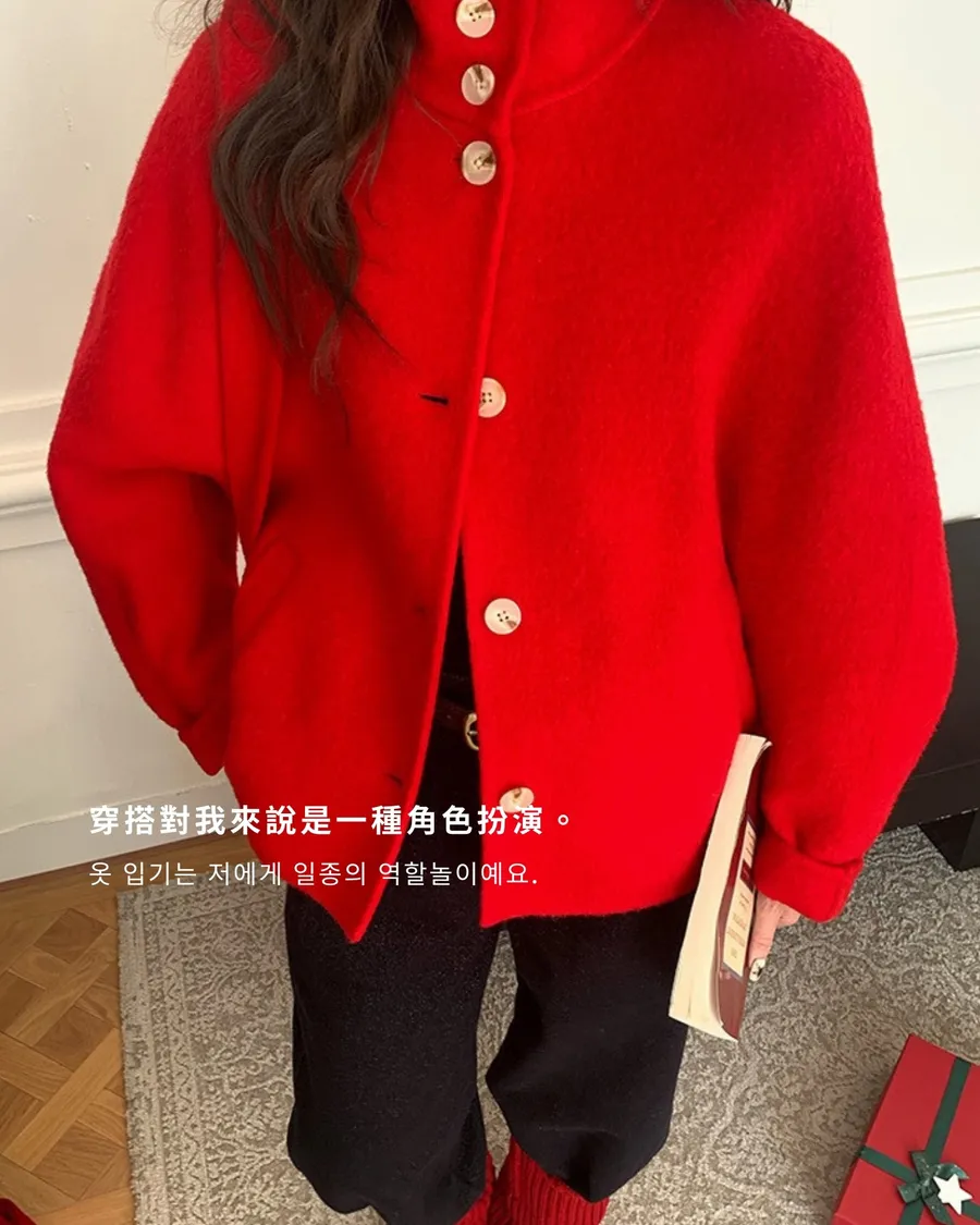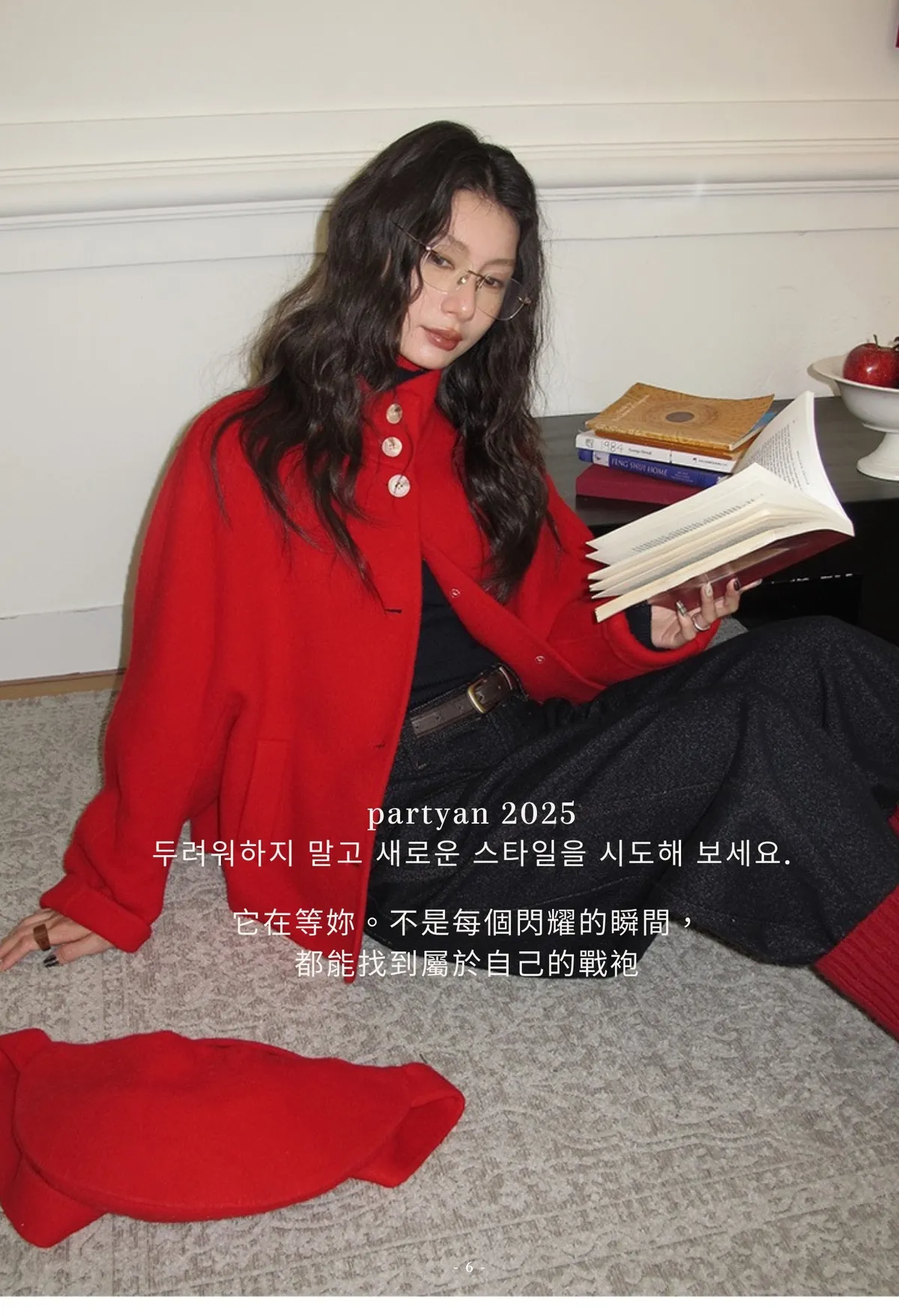 PARTYAN 設計款 Maison Élan Wool Jacket|法式立領斜襟羊毛短外套+牛角包