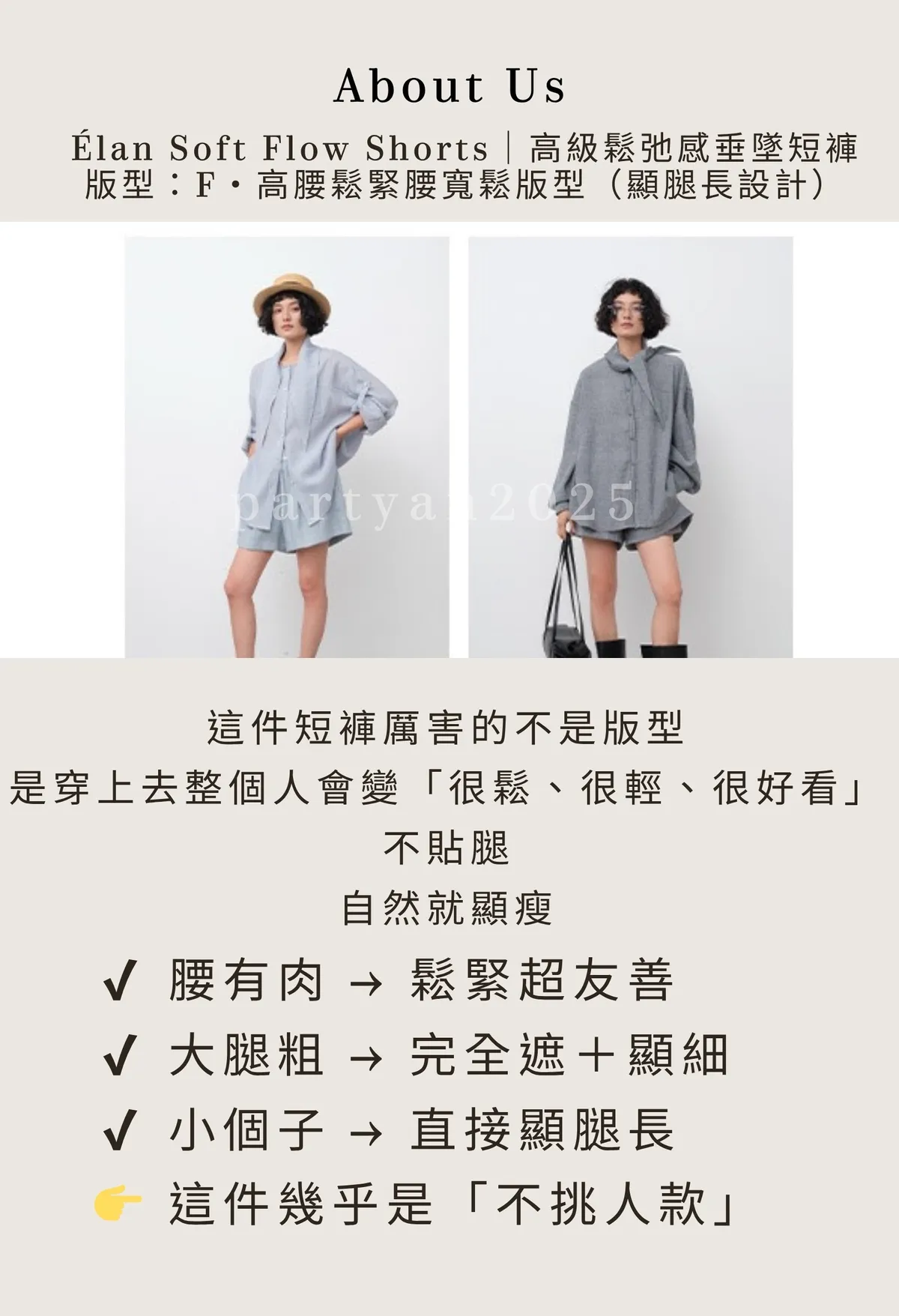 Partyan 設計 Élan Soft Flow Shorts|高級鬆弛感垂墜短褲