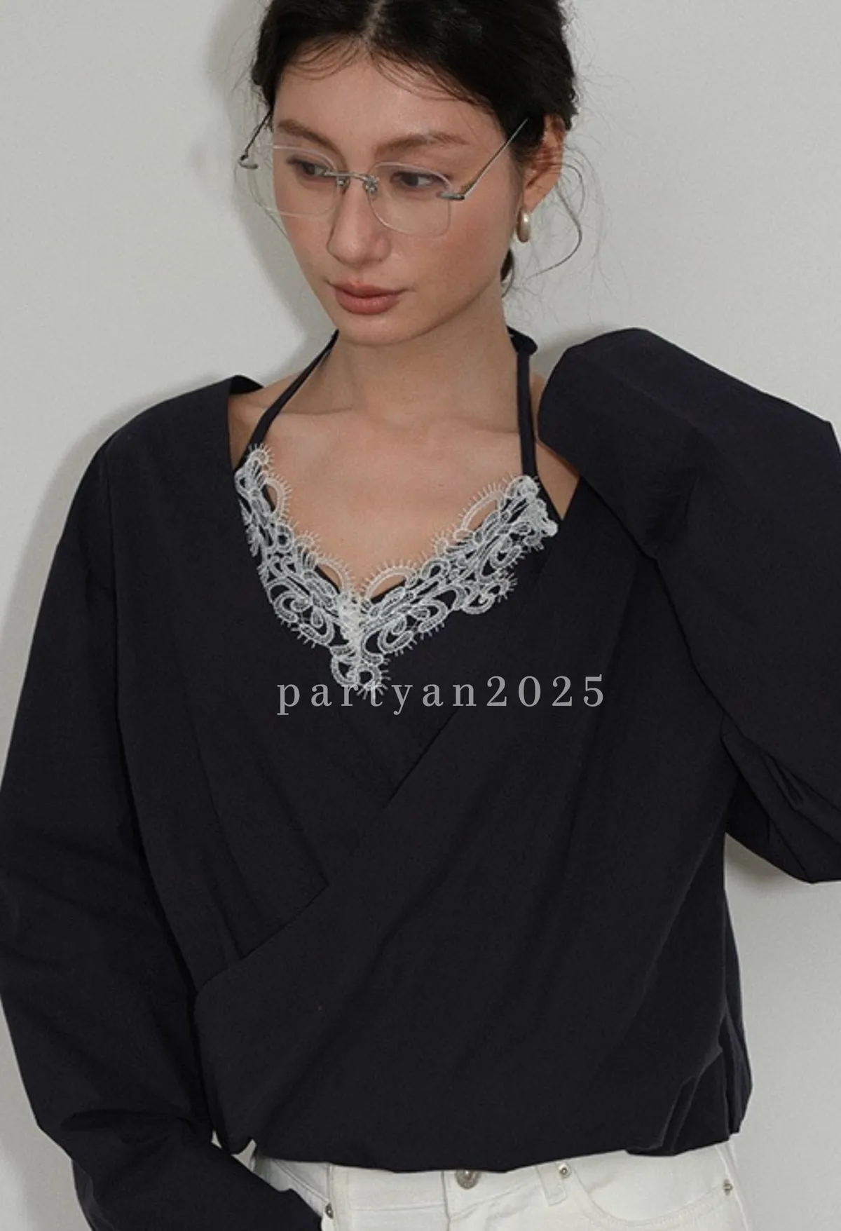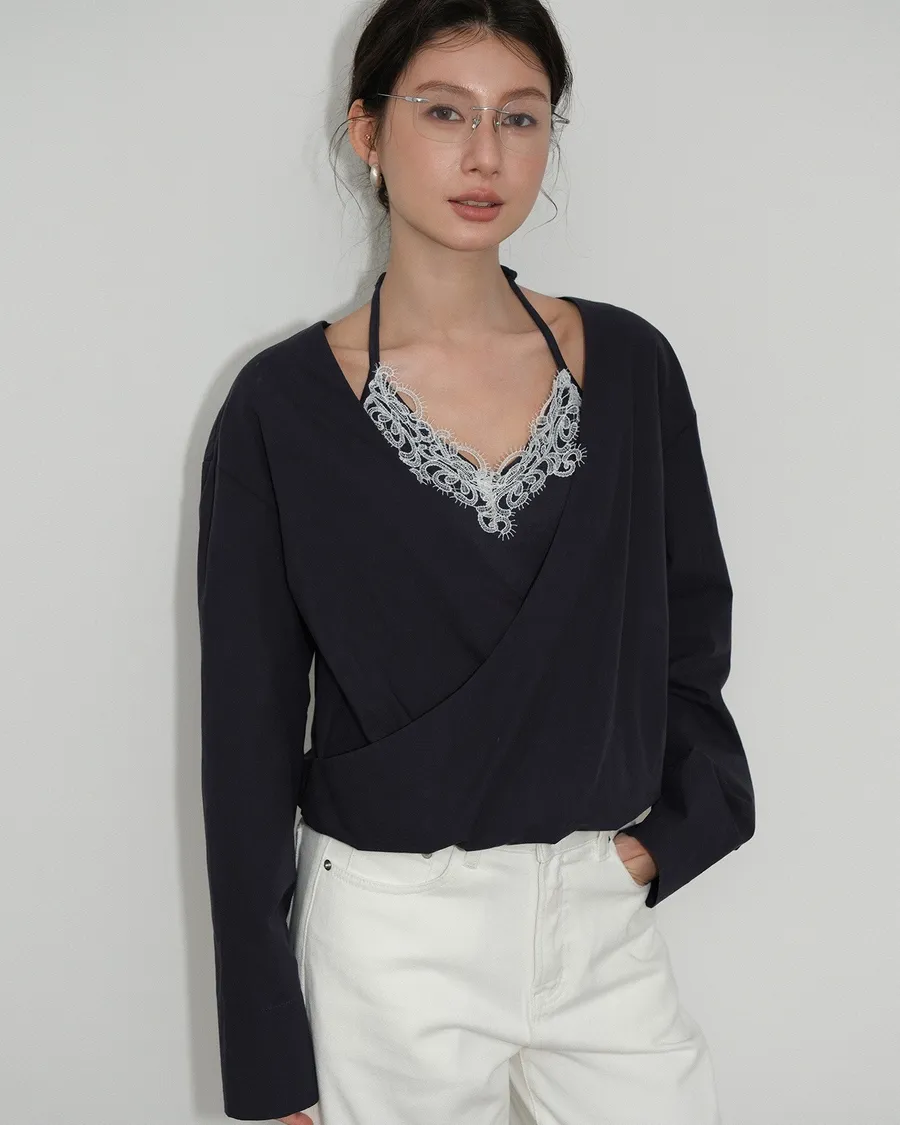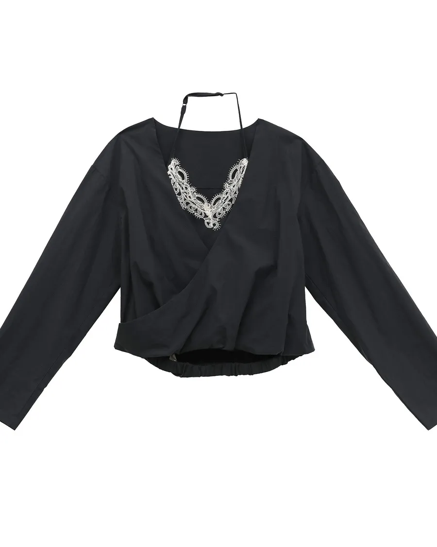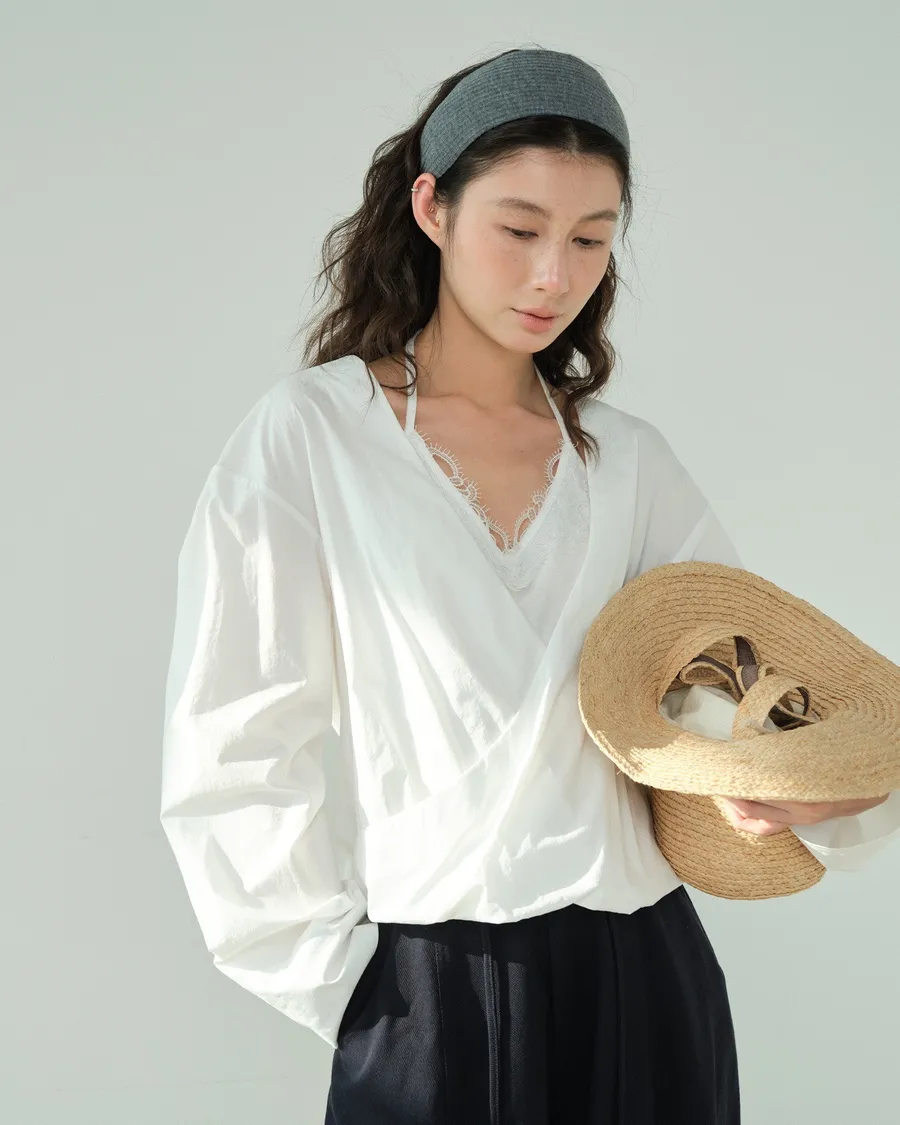 Partyan 設計 Élan Draped Lace Wrap Blouse|蕾絲層次交疊上衣