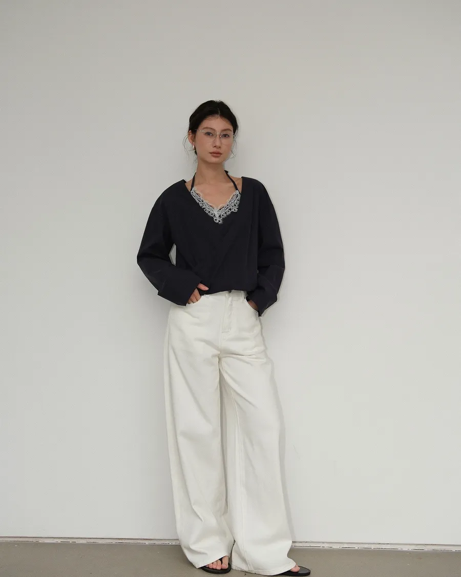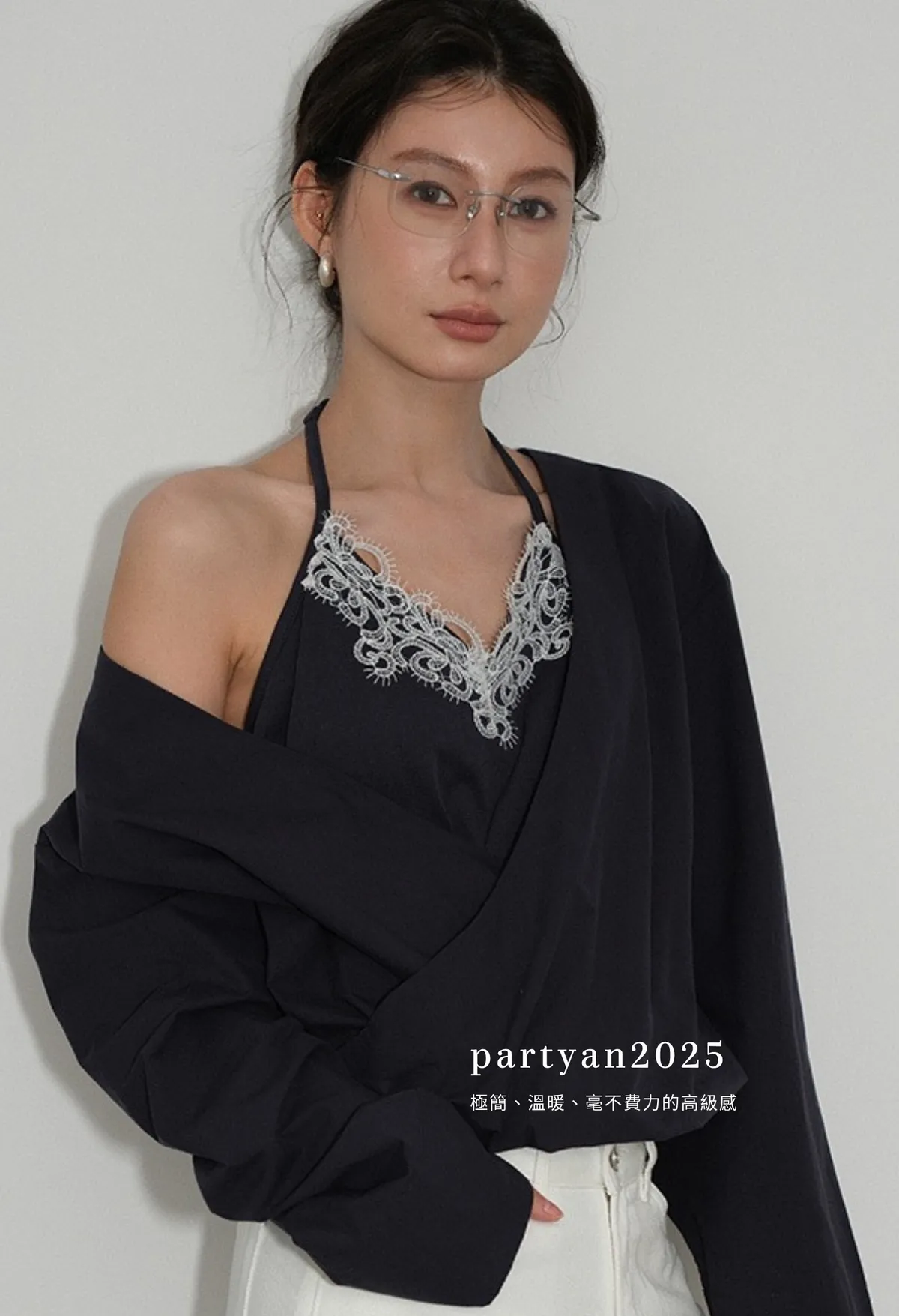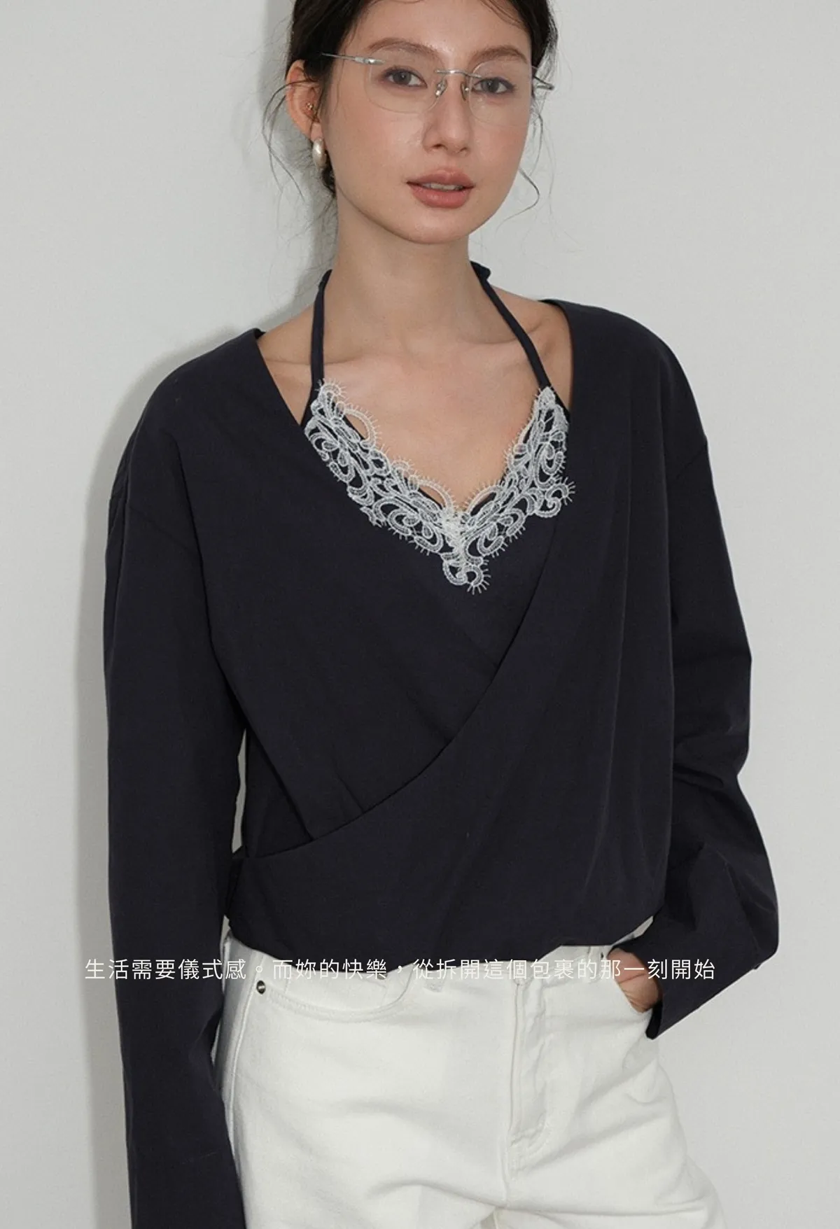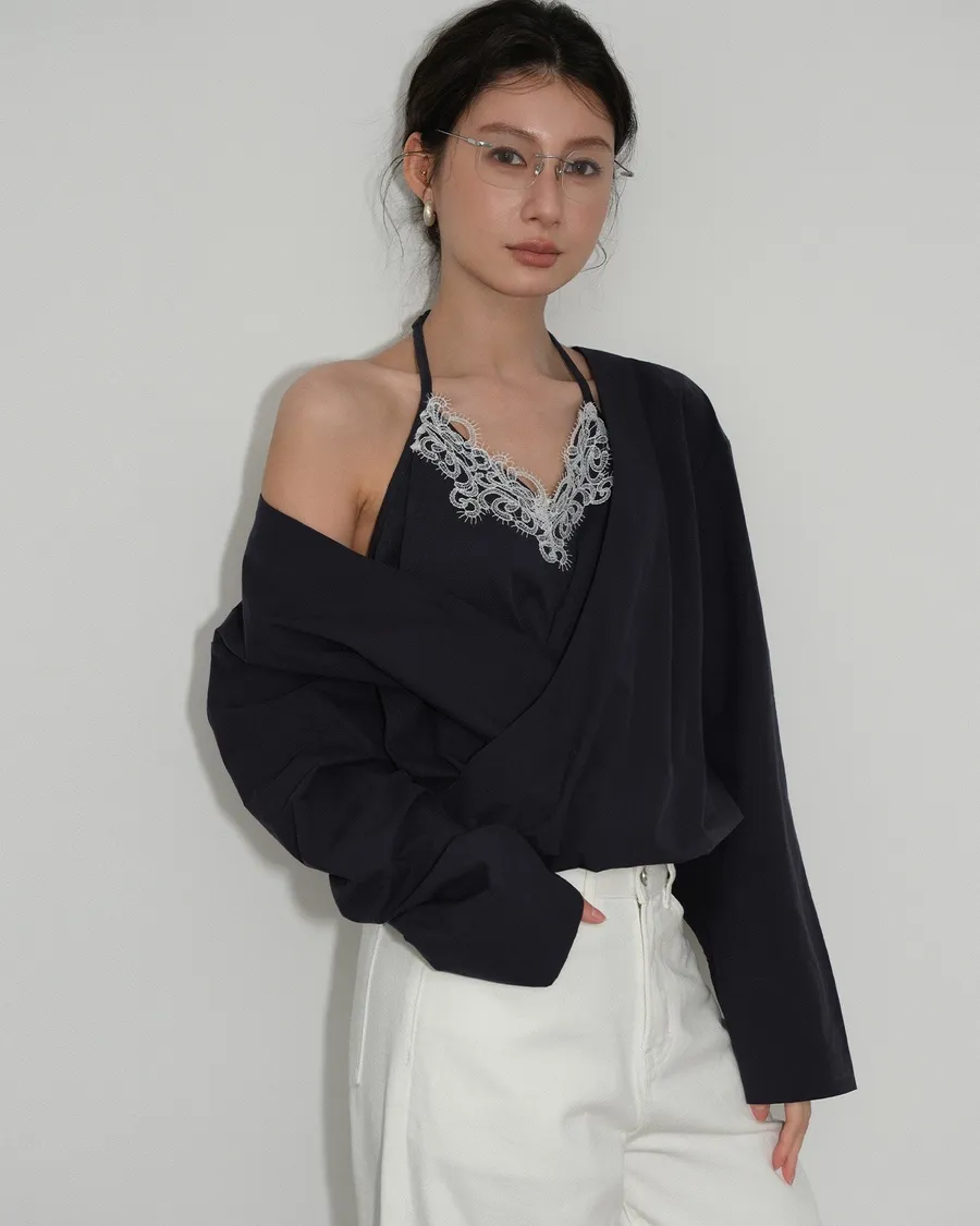 Partyan 設計 Élan Draped Lace Wrap Blouse|蕾絲層次交疊上衣