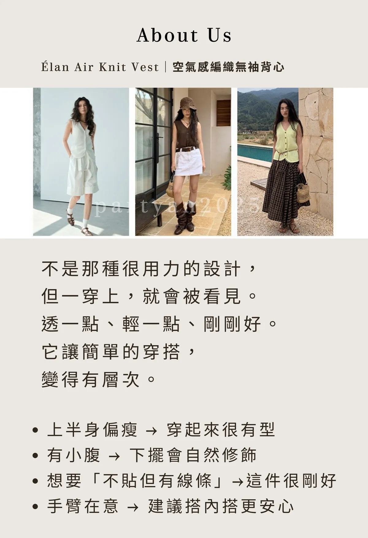 Partyan 設計 Élan Air Knit Vest|空氣感編織無袖背心