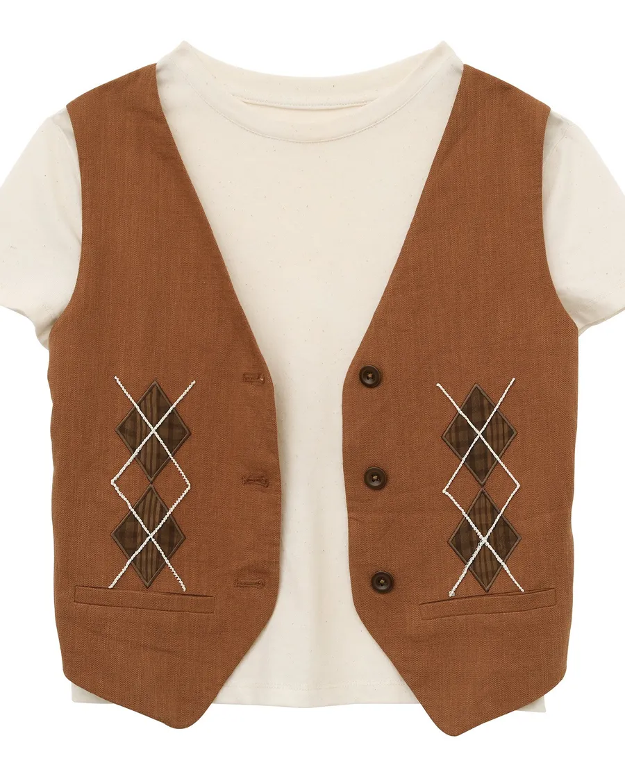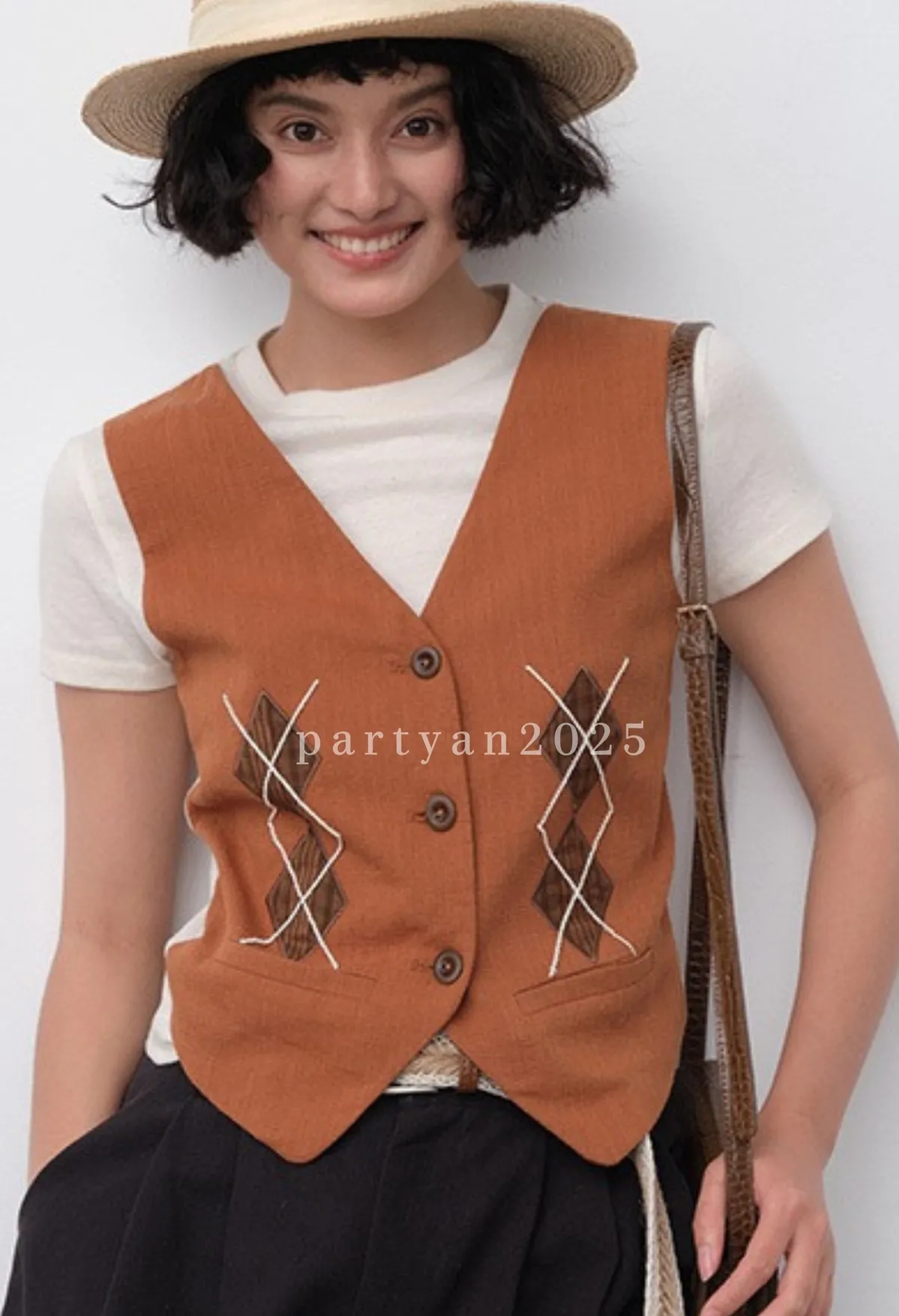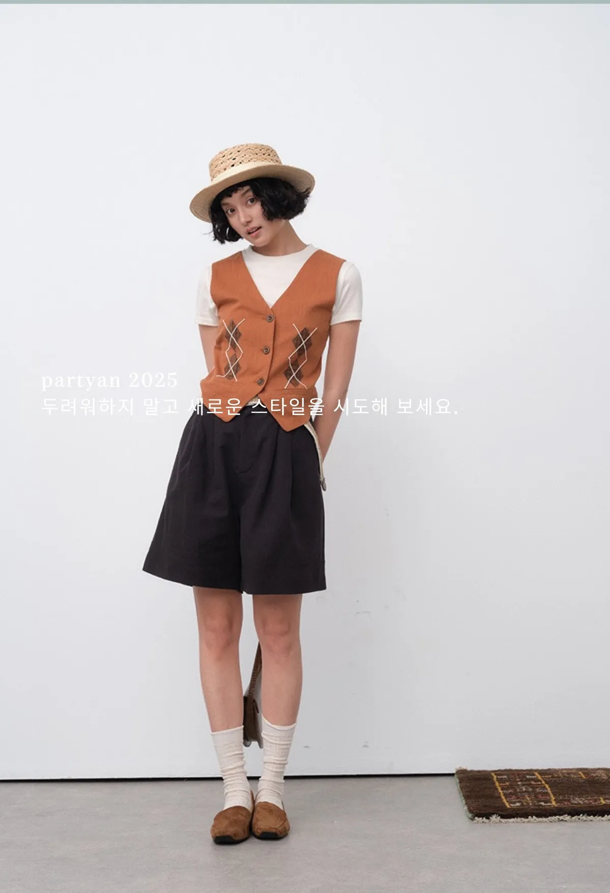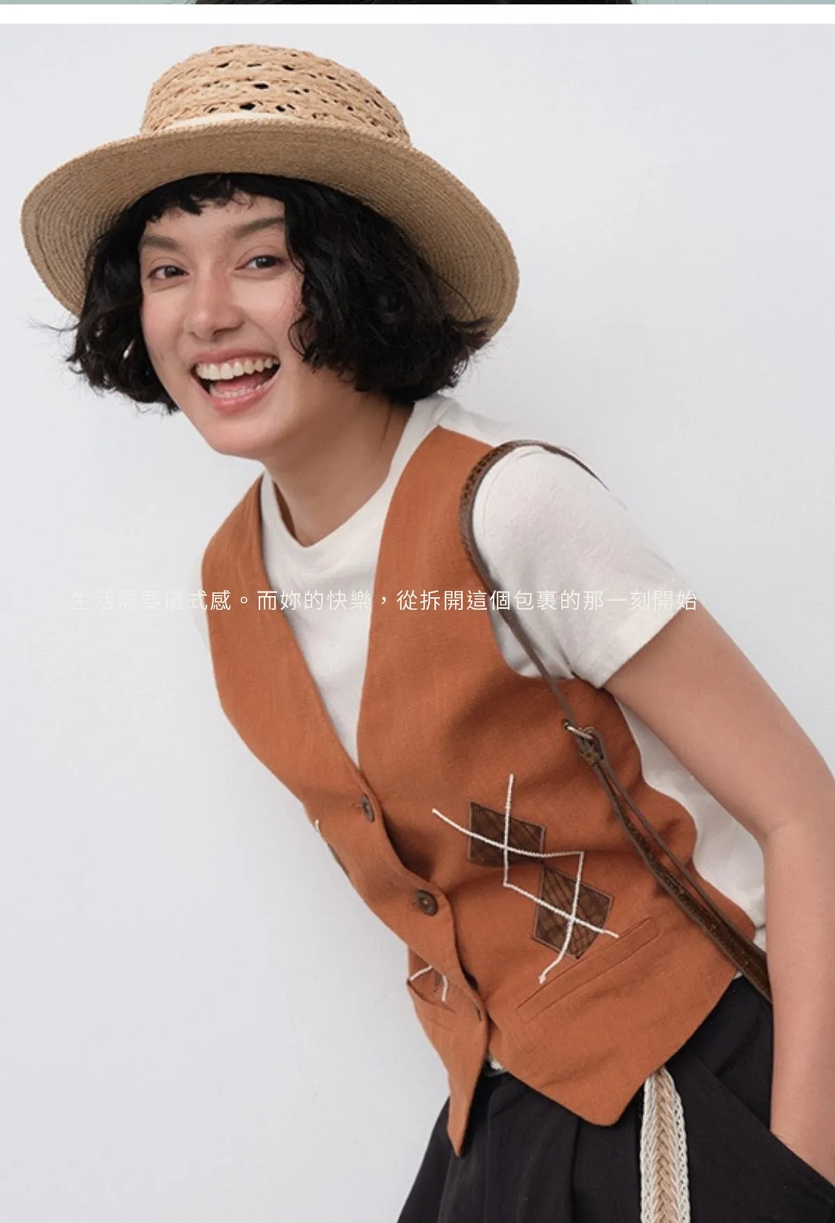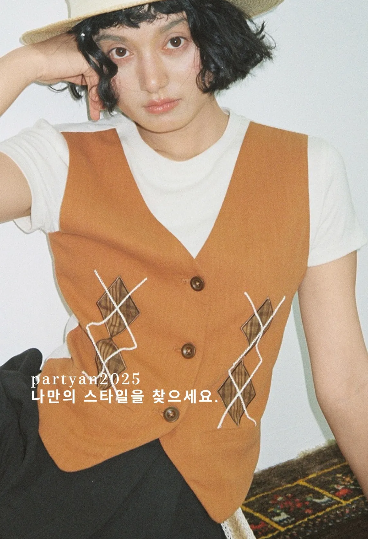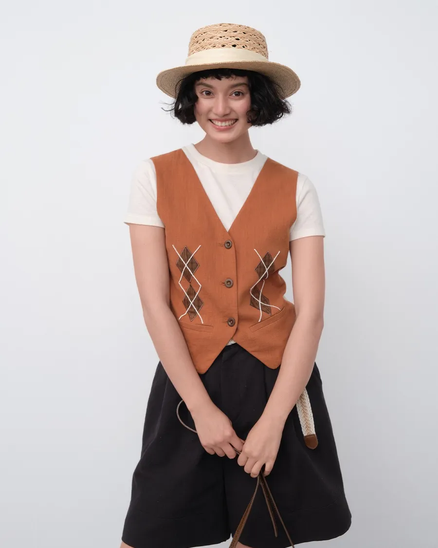 Partyan 設計Élan Faux Layered Argyle Vest Top|法式復古菱格刺繡假兩件背心上衣