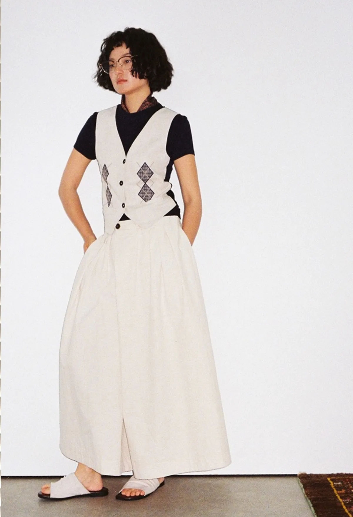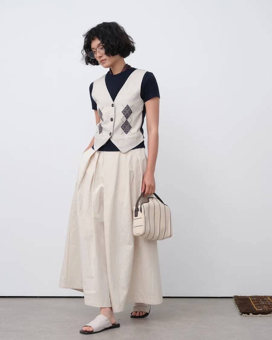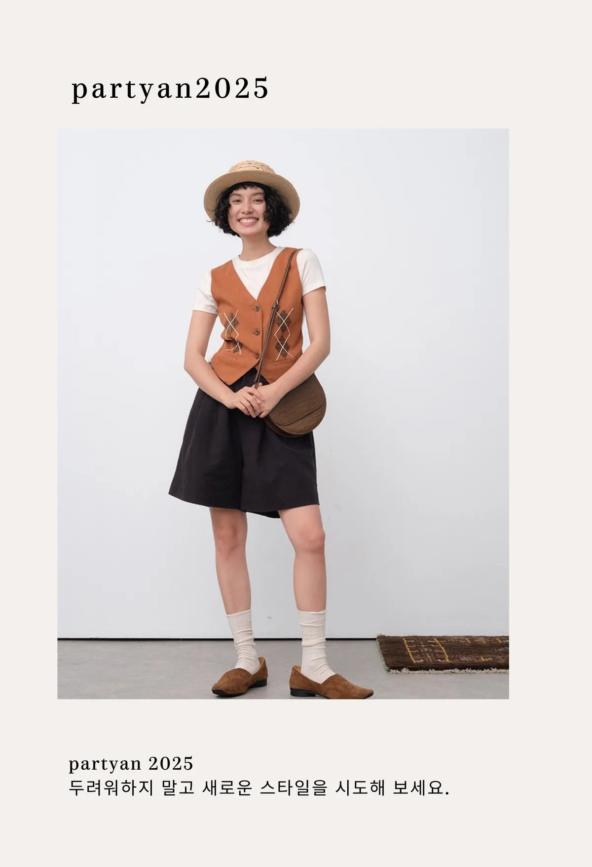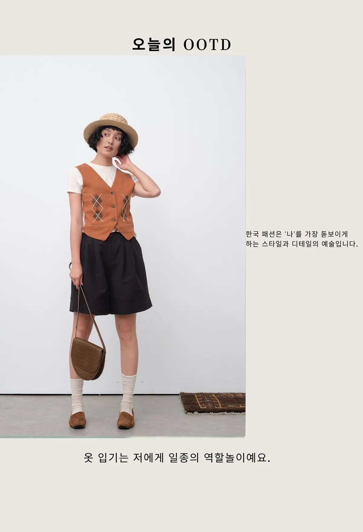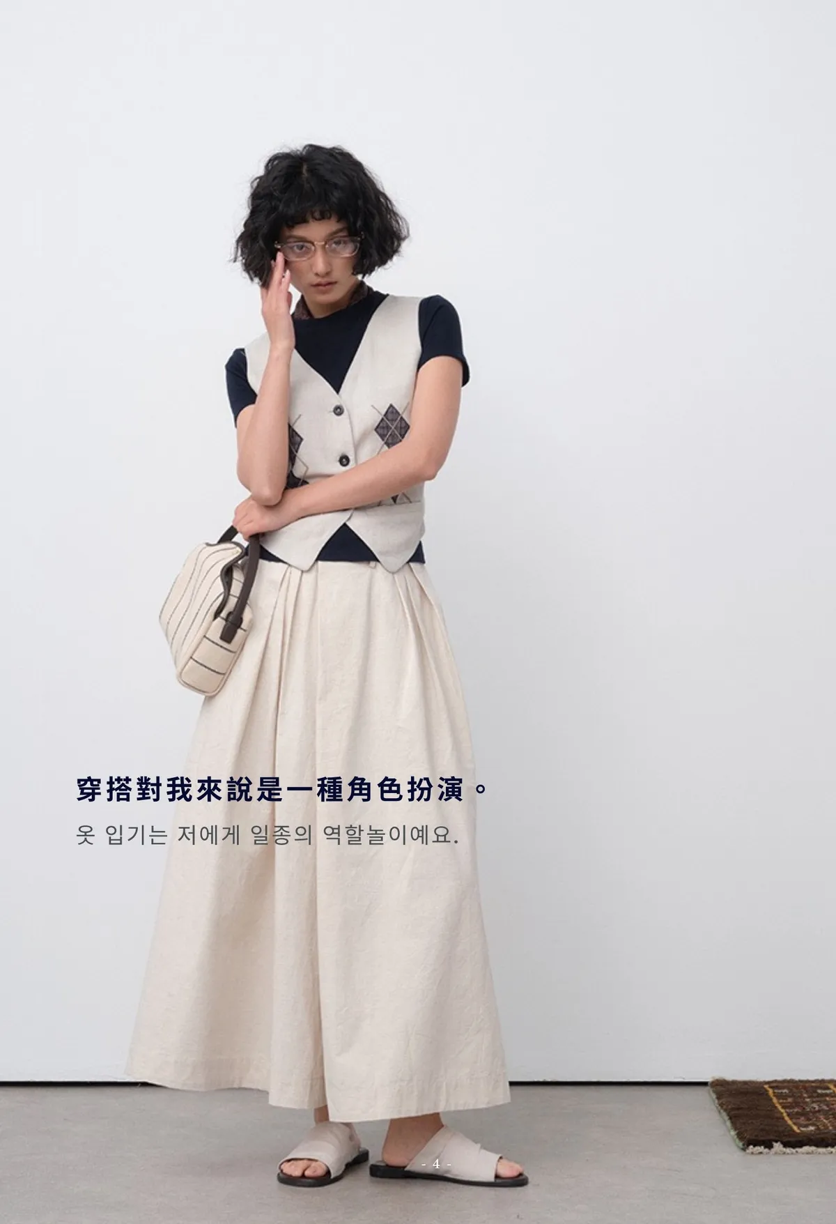 Partyan 設計Élan Faux Layered Argyle Vest Top|法式復古菱格刺繡假兩件背心上衣