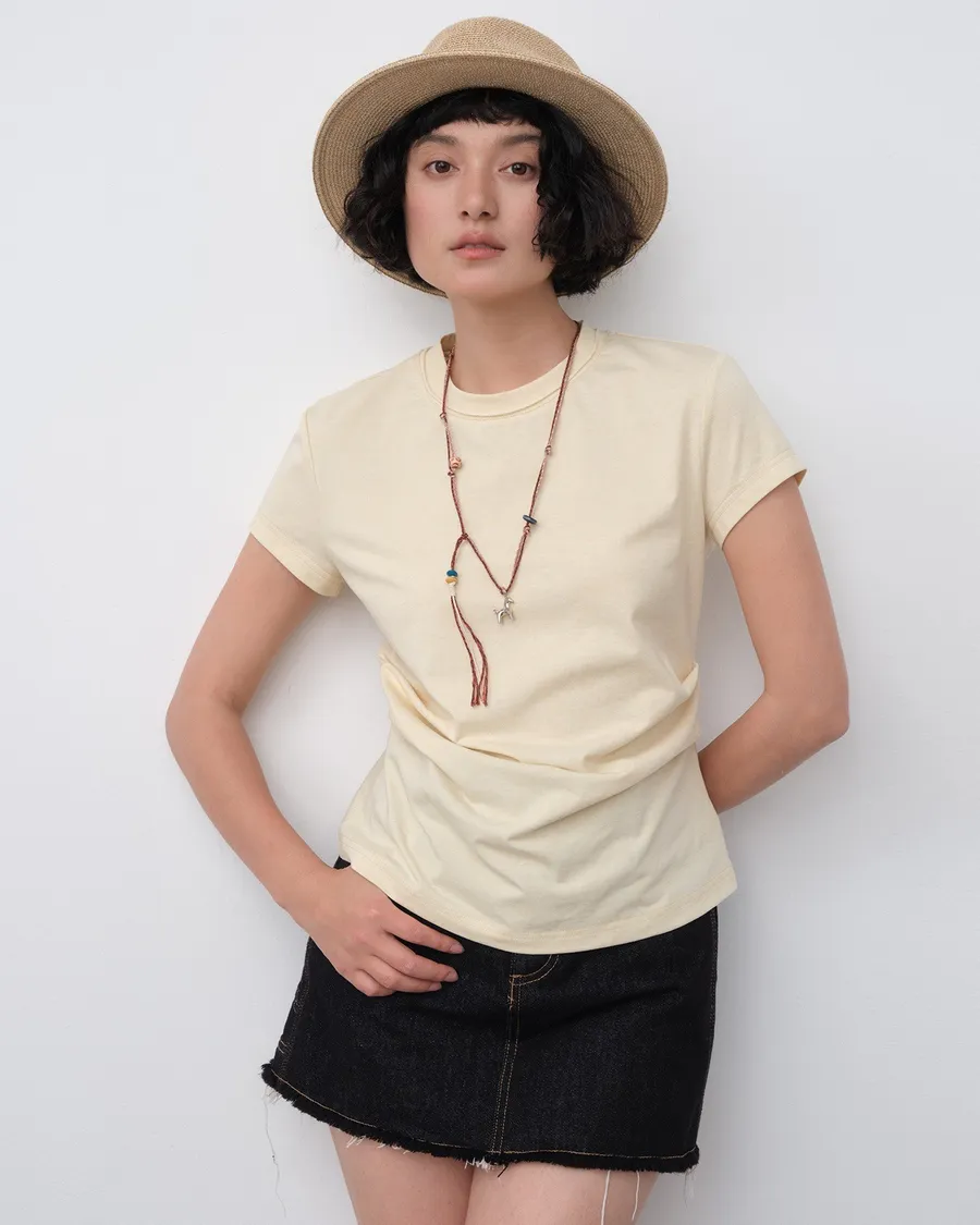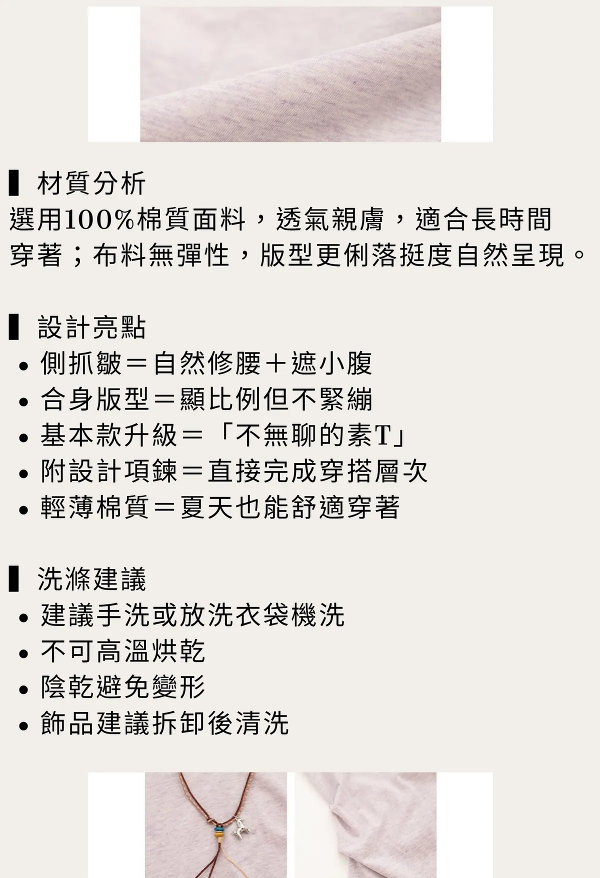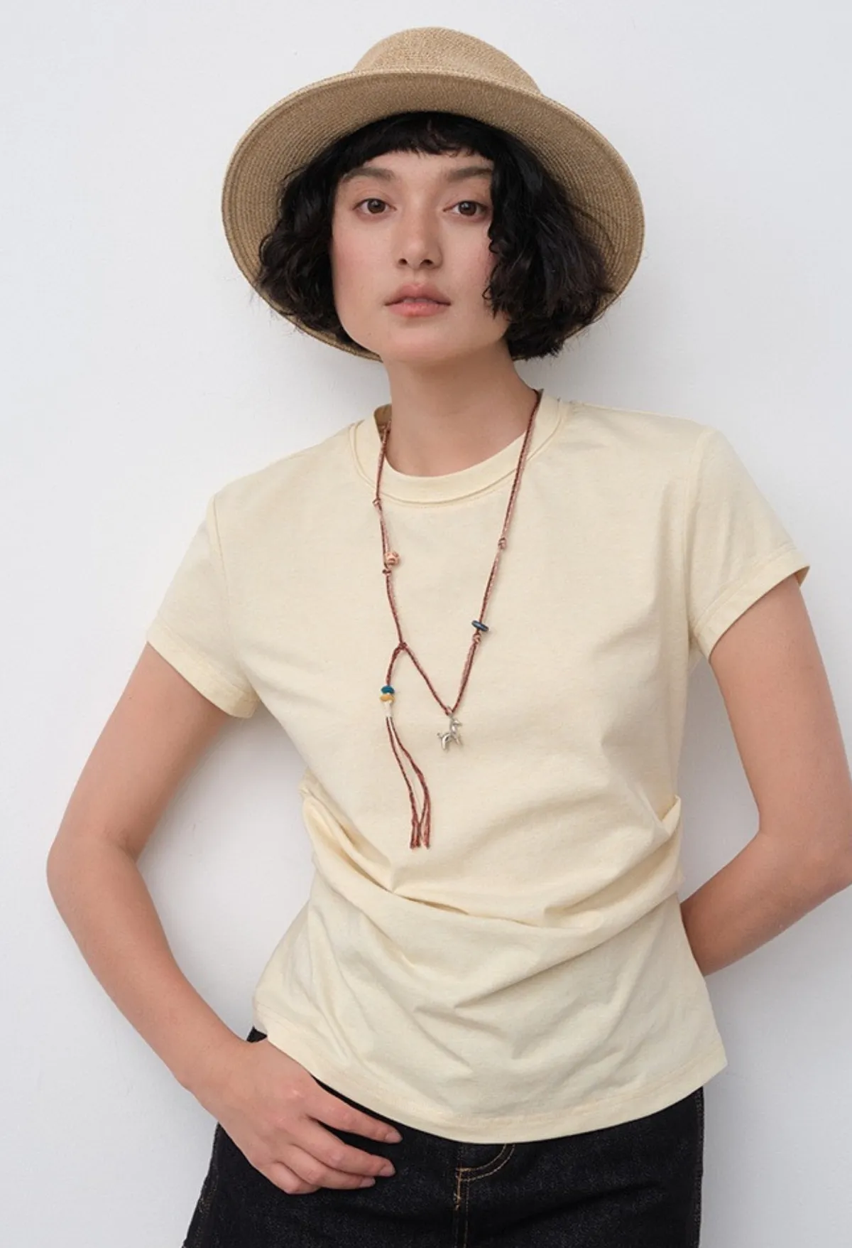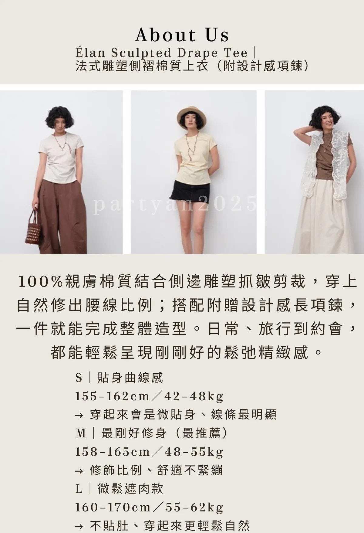 Partyan 設計 Élan Sculpted Drape Tee|法式雕塑側褶棉質上衣(附設計感項鍊)