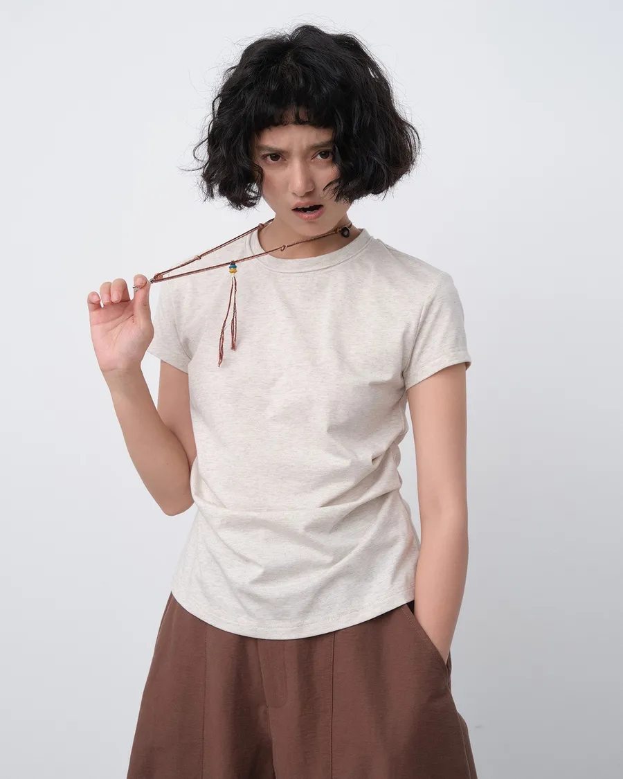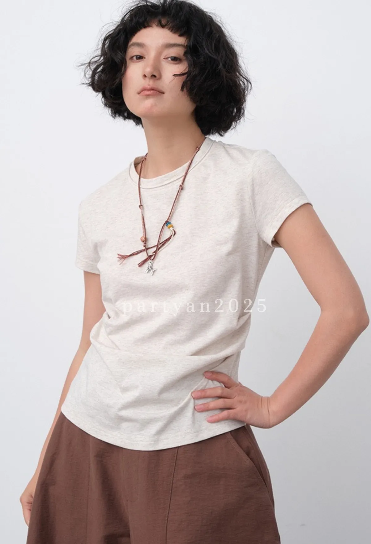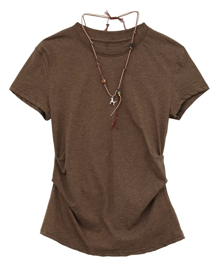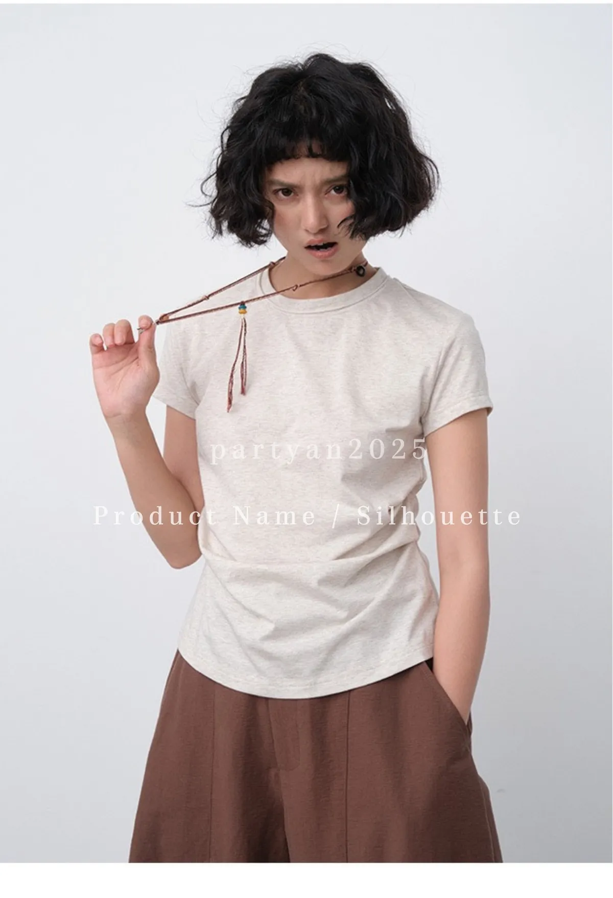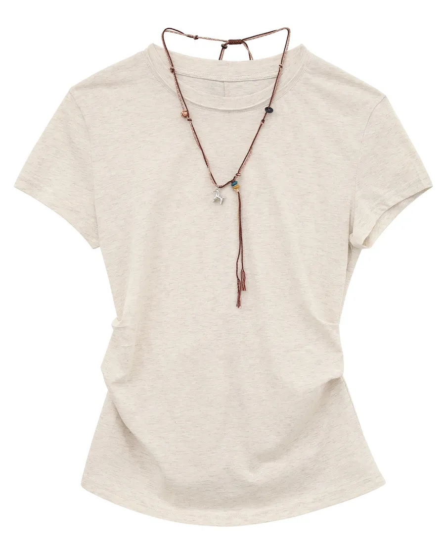 Partyan 設計 Élan Sculpted Drape Tee|法式雕塑側褶棉質上衣(附設計感項鍊)