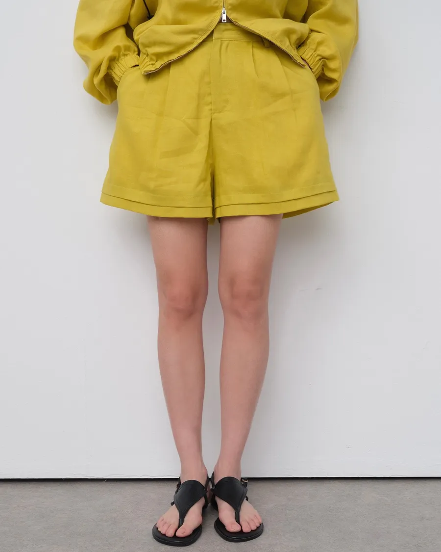 PARTYAN 設計 Élan Silk-Linen Tailored Shorts|亞麻天絲鬆弛顯腿長短褲
