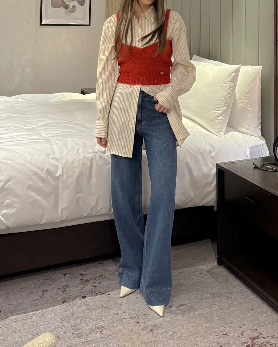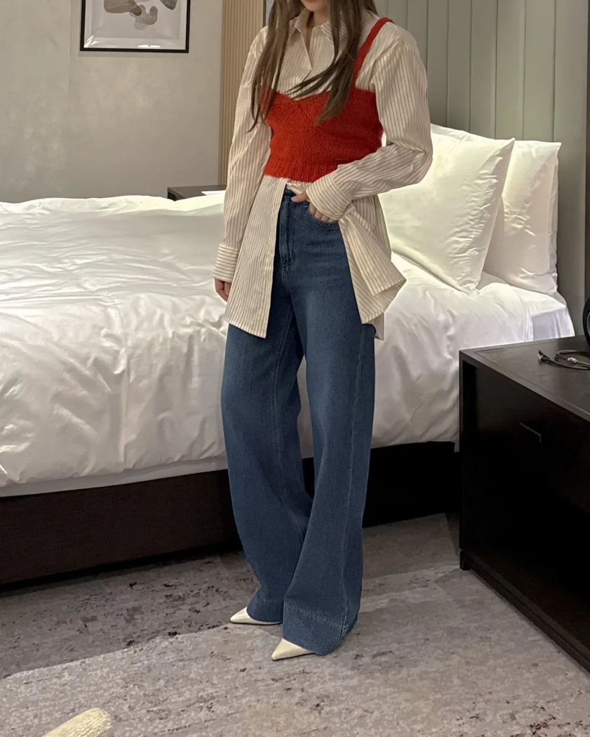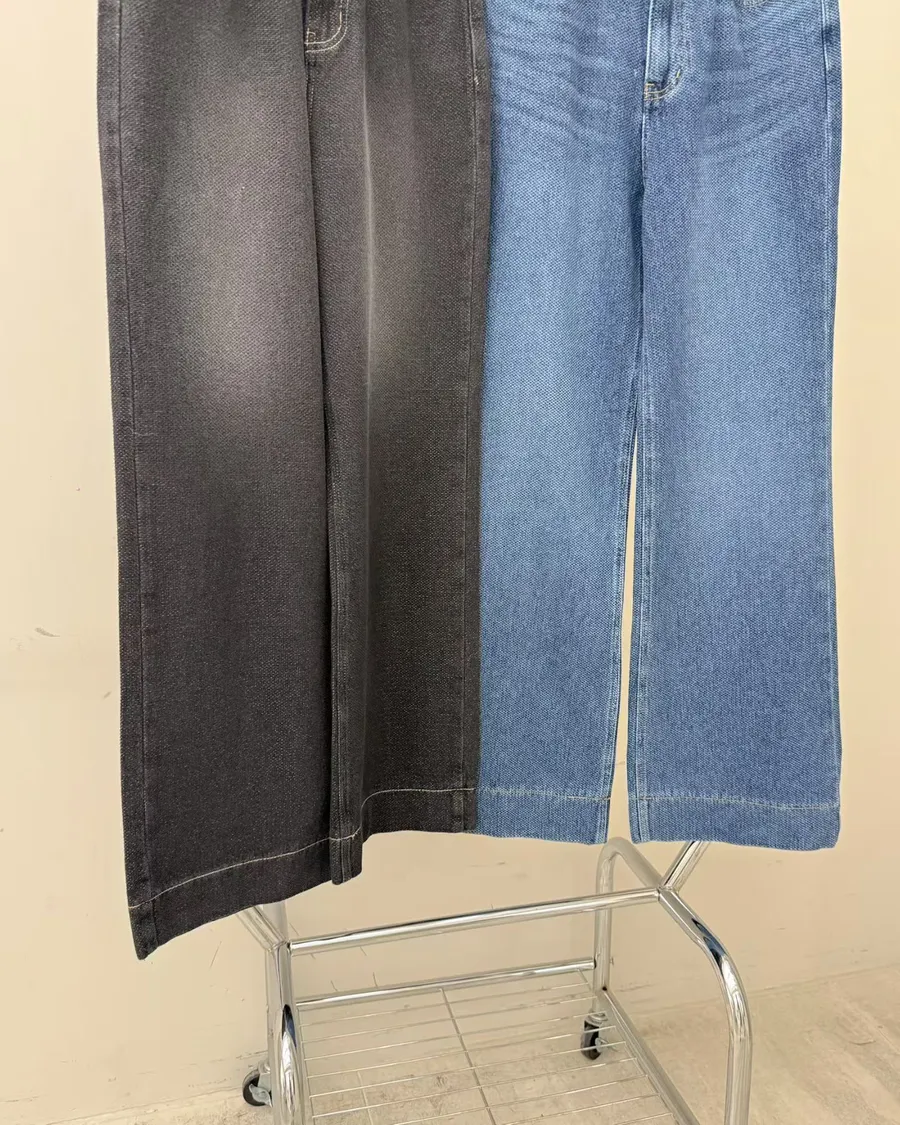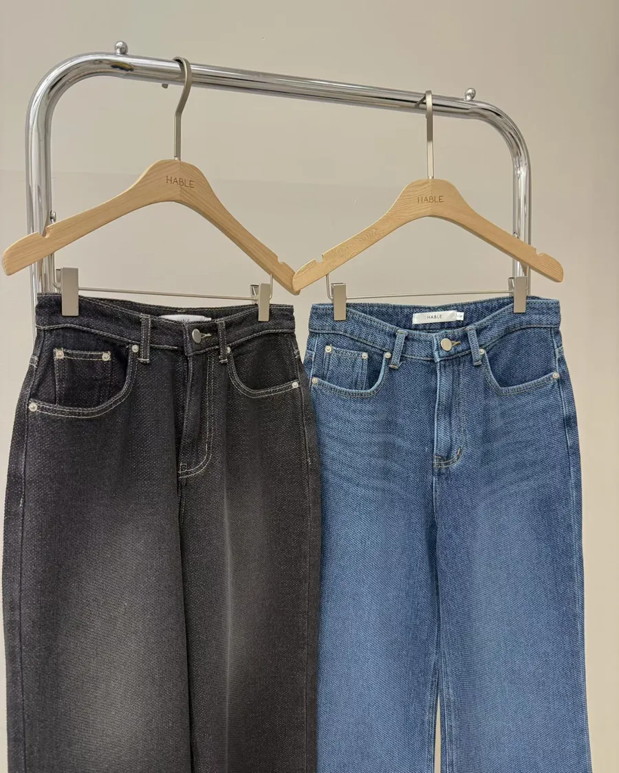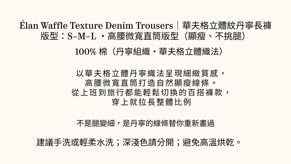 PARTYAN 韓國直送 Élan Waffle Texture Denim Trousers|華夫格立體紋丹寧長褲