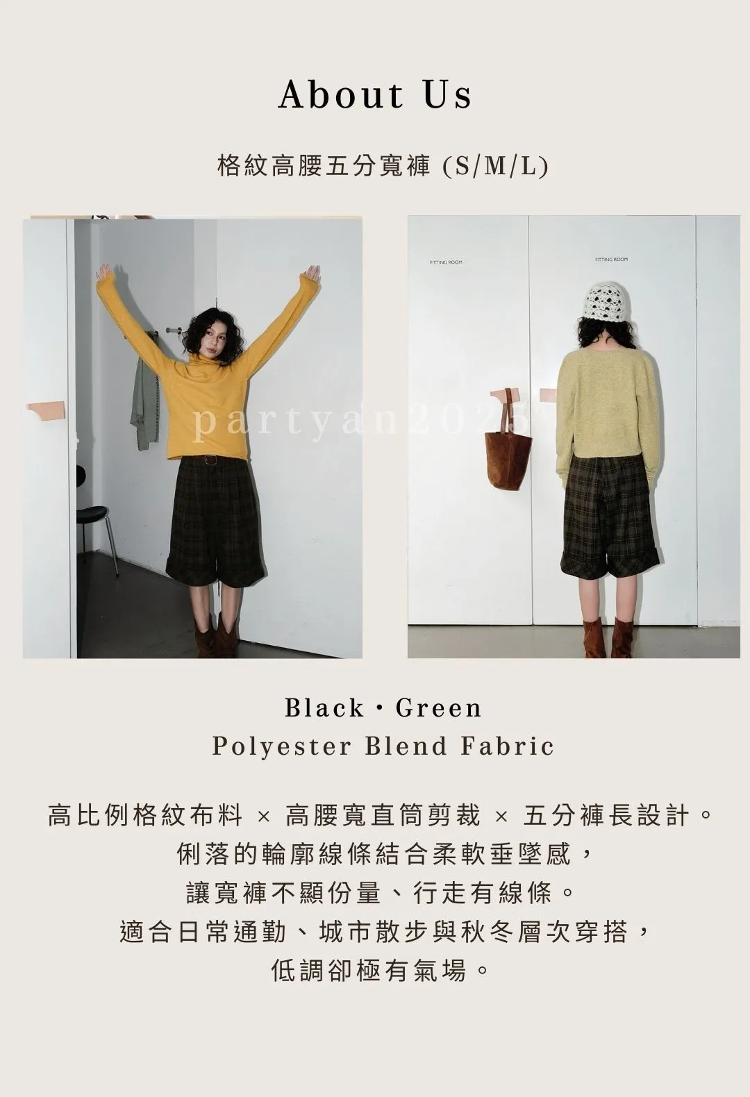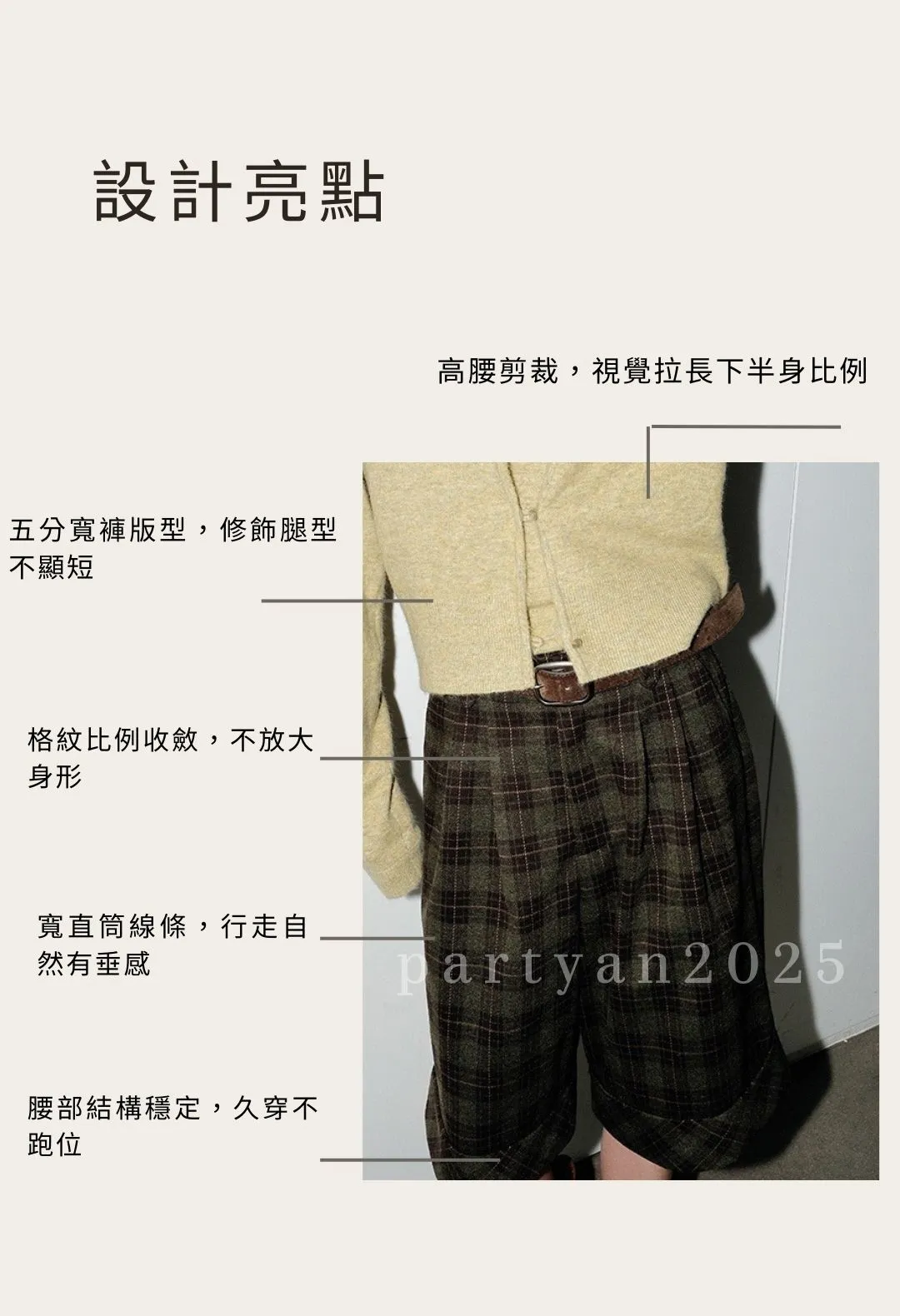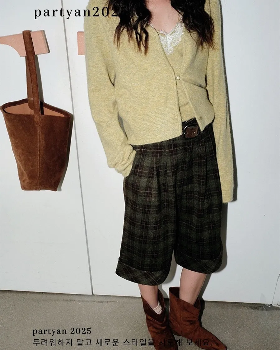 PARTYAN 設計師款 Heritage Plaid Culotte 格紋高腰五分寬褲