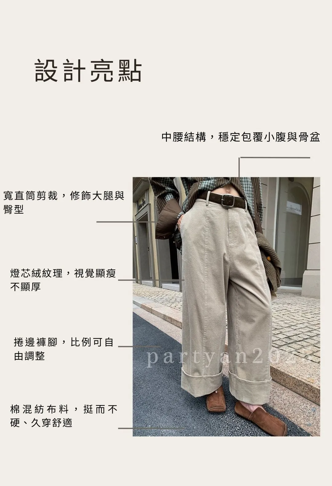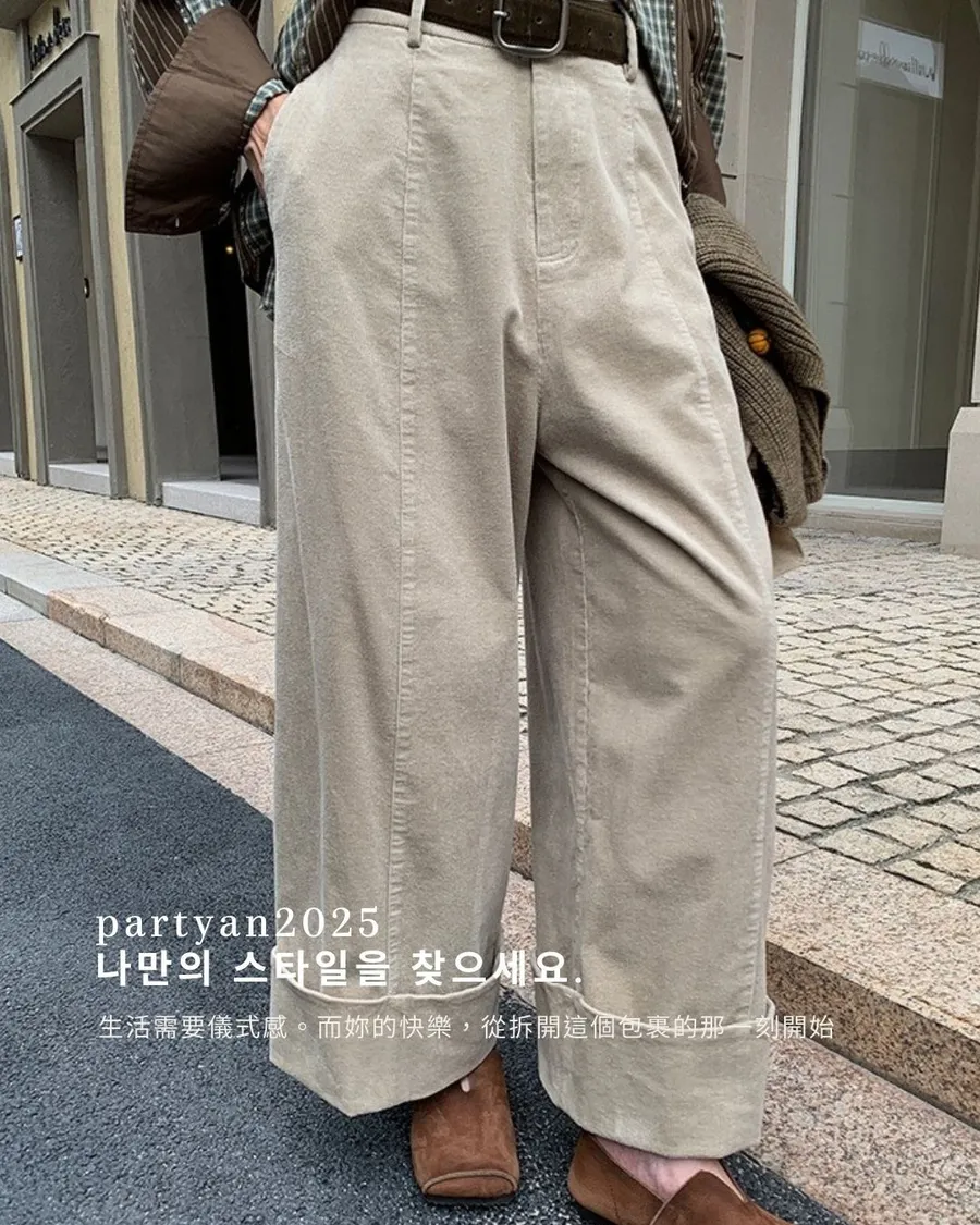 PARTYAN 設計師款 ATELIER NOMADE|復古捲邊燈芯絨寬直褲