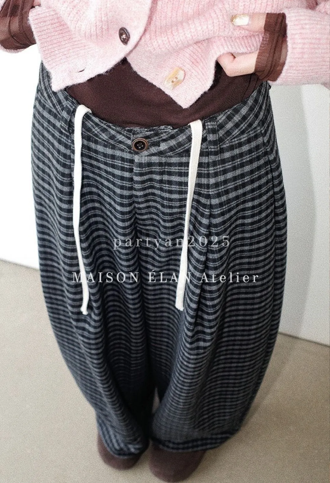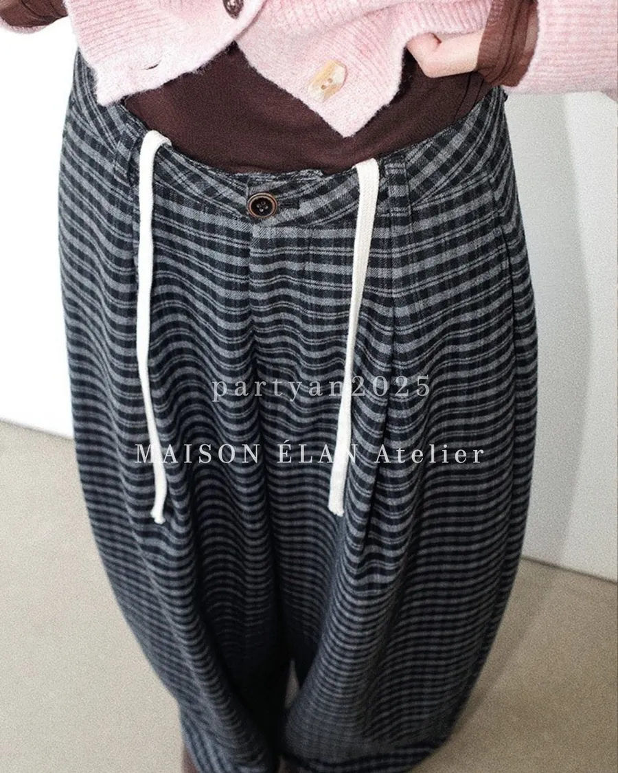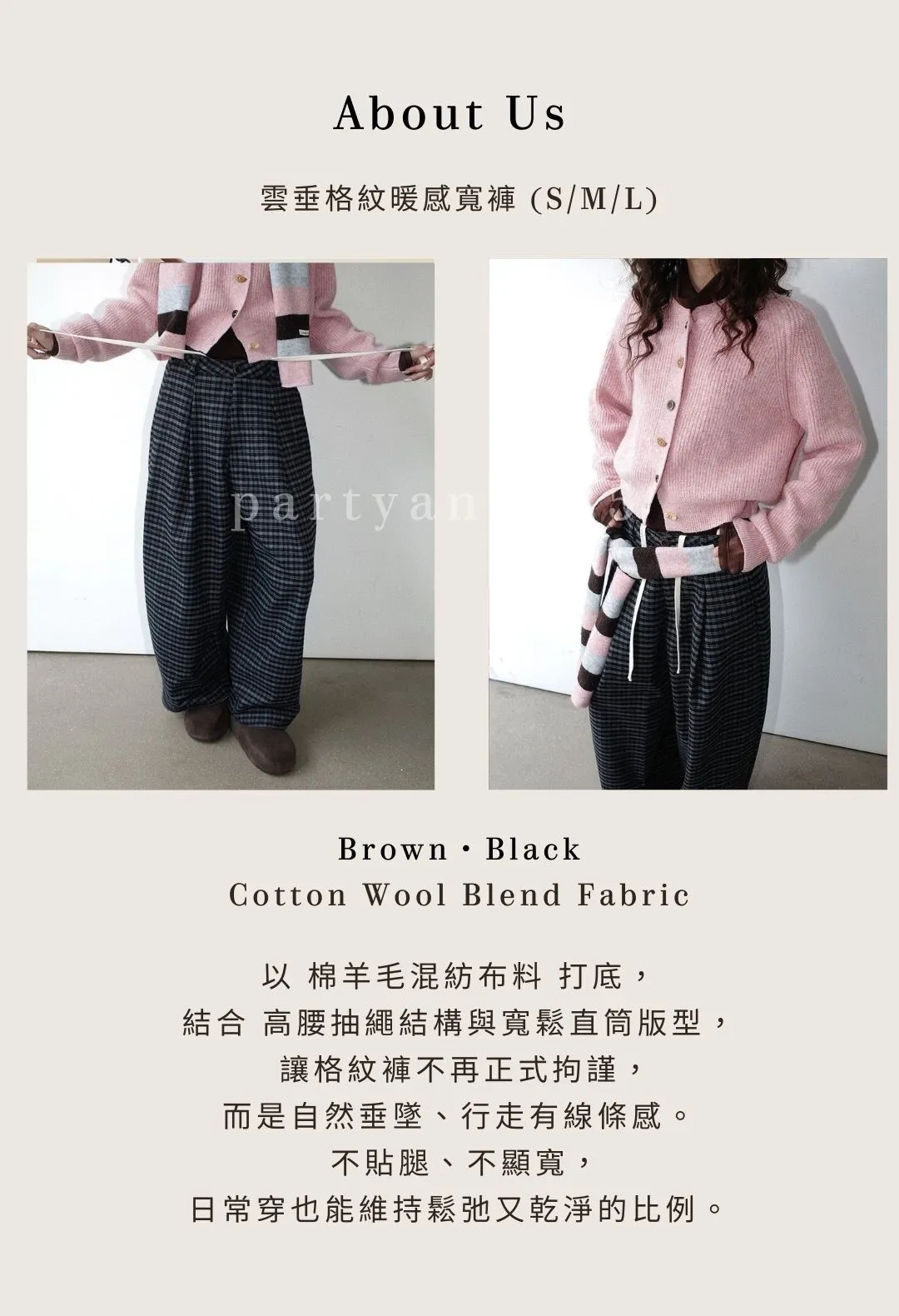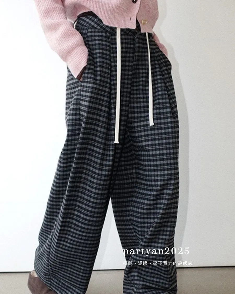 PARTYAN 設計師款 MAISON ÉLAN Atelier|雲垂格紋暖感寬褲