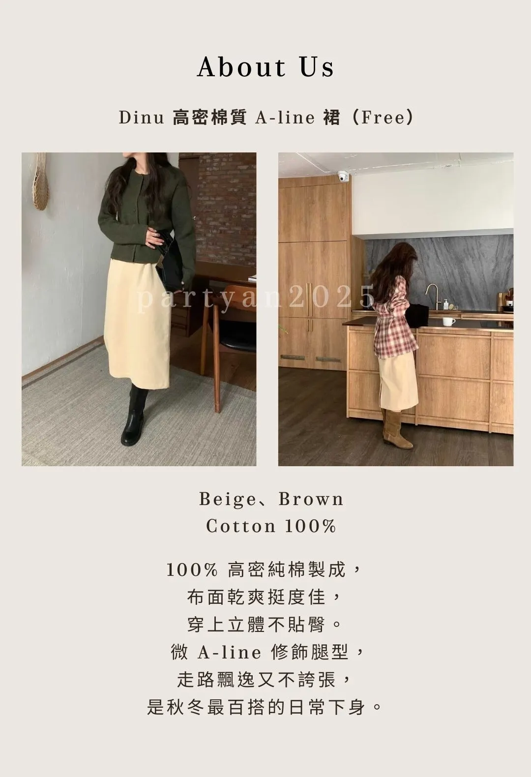 PARTYAN 韓國直送 Dinu Cotton Skirt|Dinu 高密棉質 A-line 裙