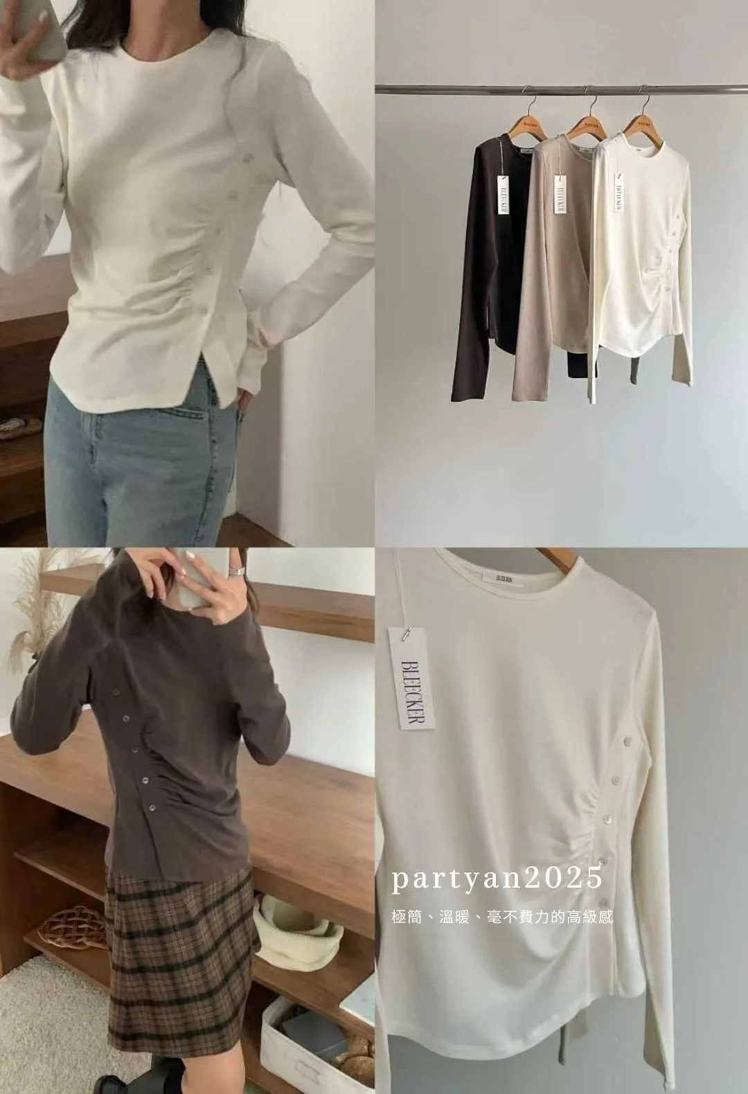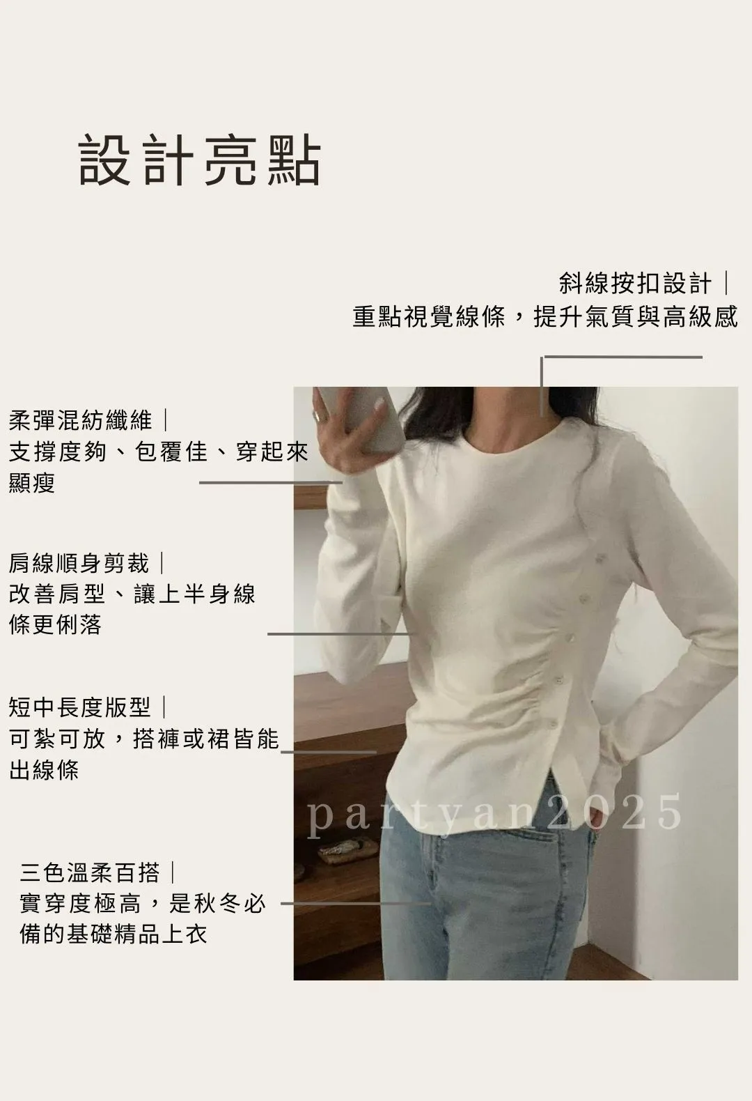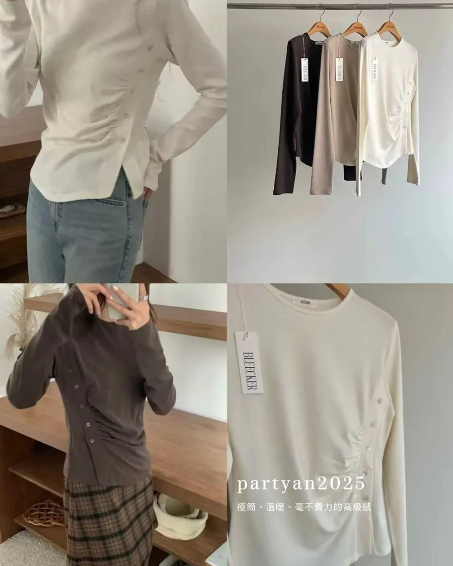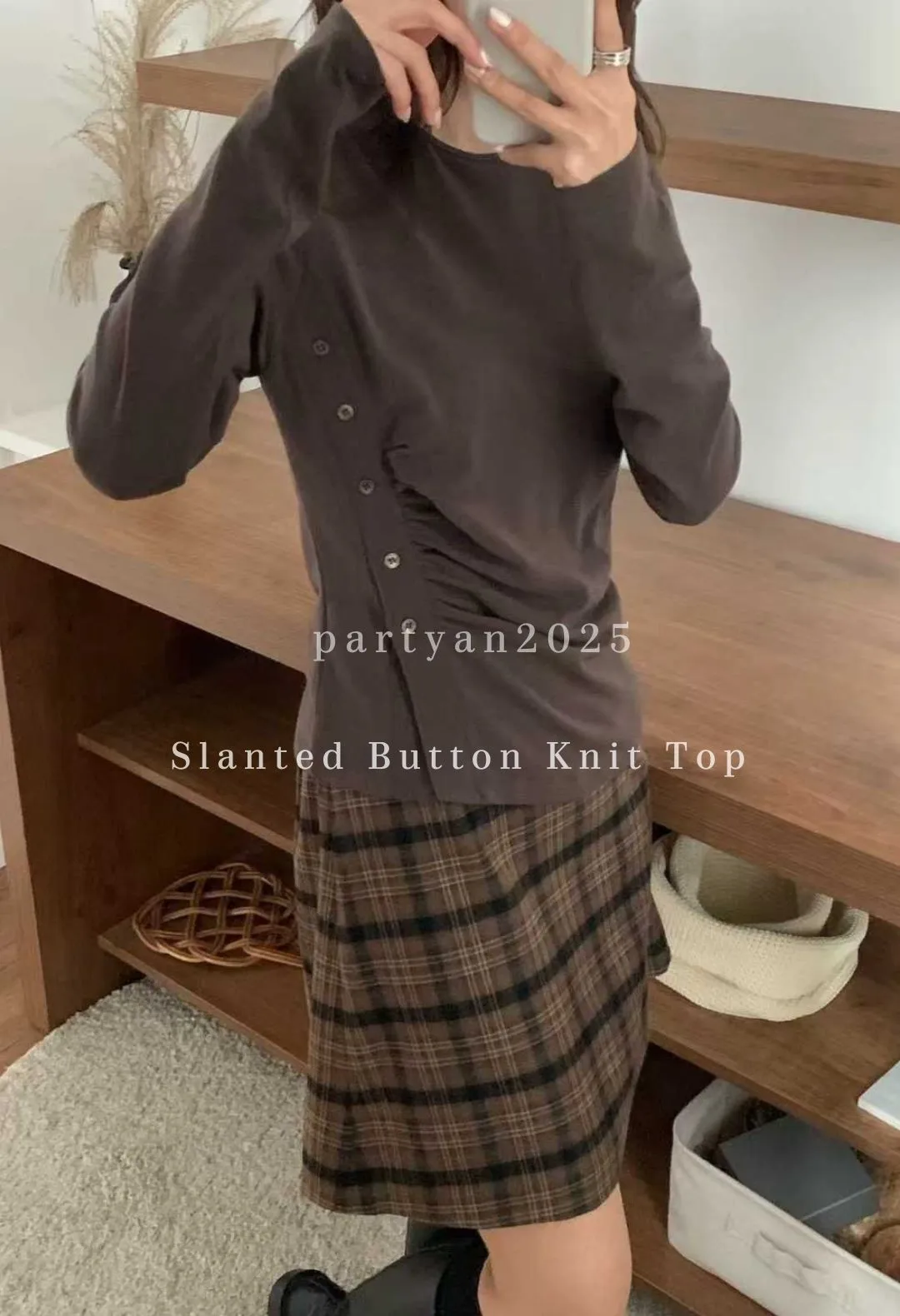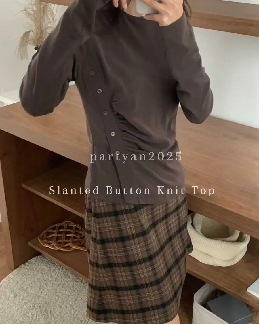 PARTYAN 韓國直送 Slanted Button Knit Top|斜線按扣柔彈針織 T