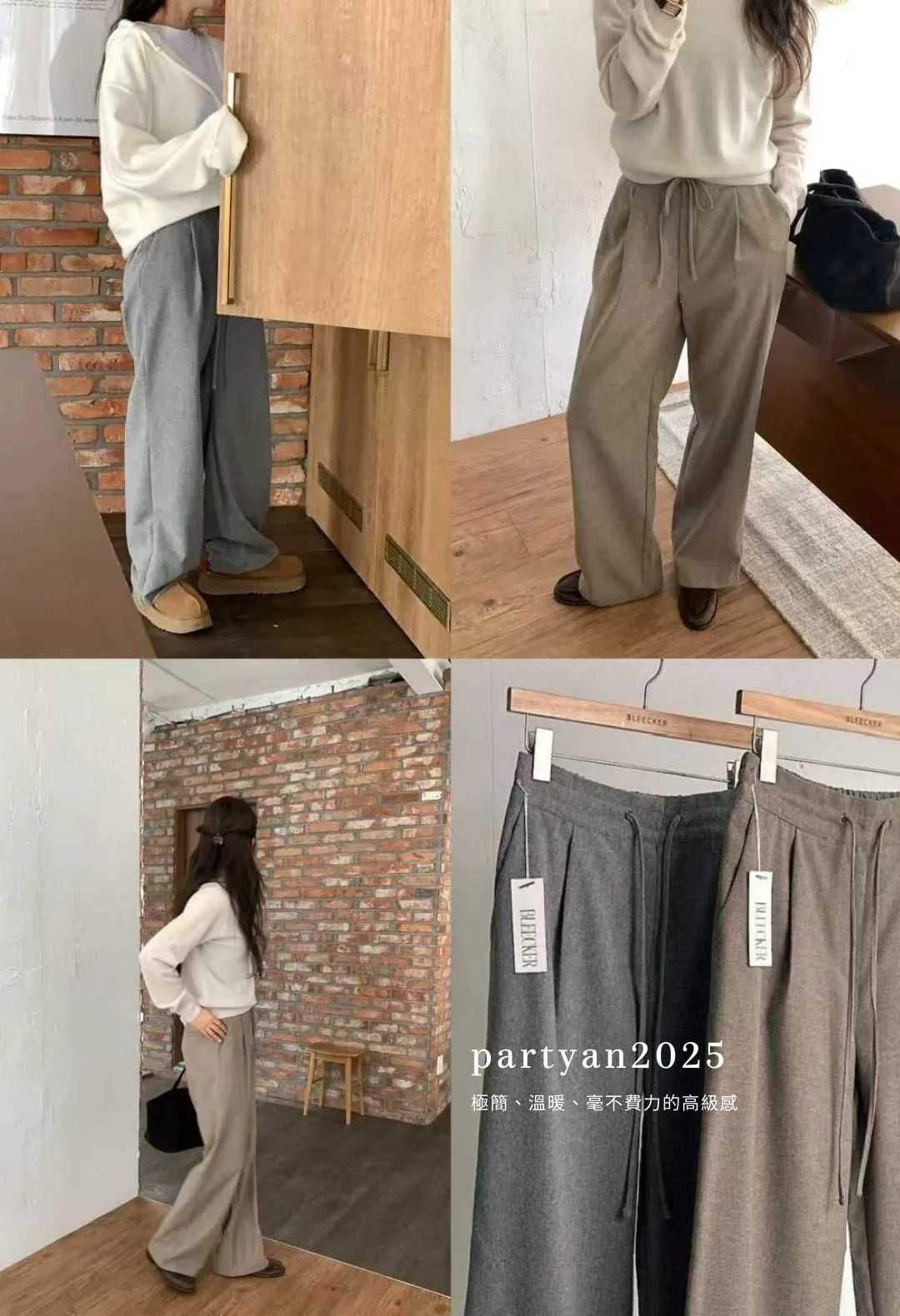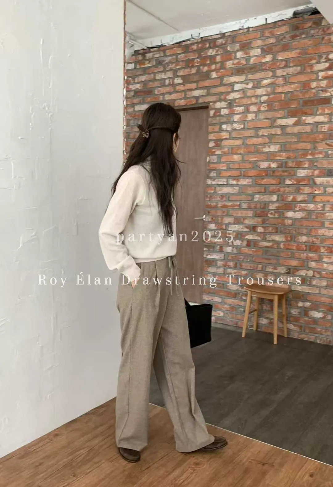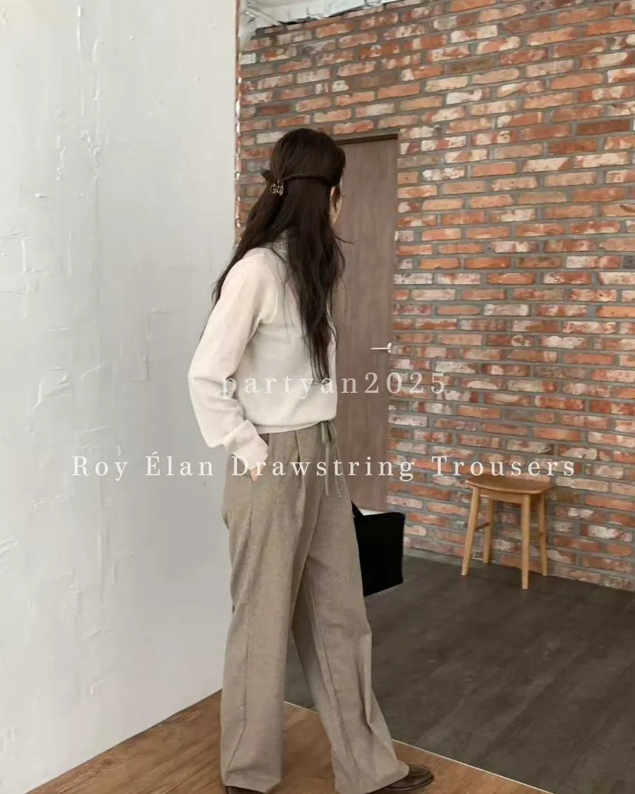 PARTYAN 韓國直送 Roy Élan Drawstring Trousers|雅緻抽繩毛呢寬褲