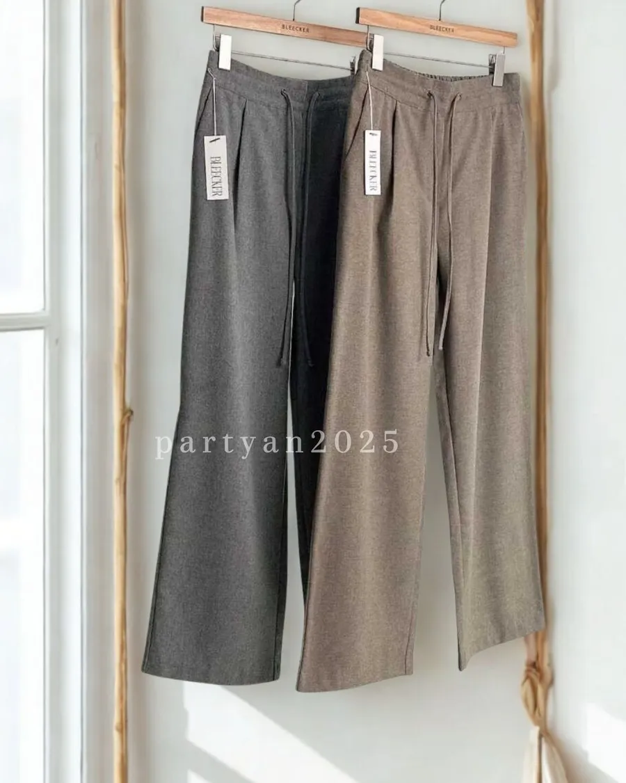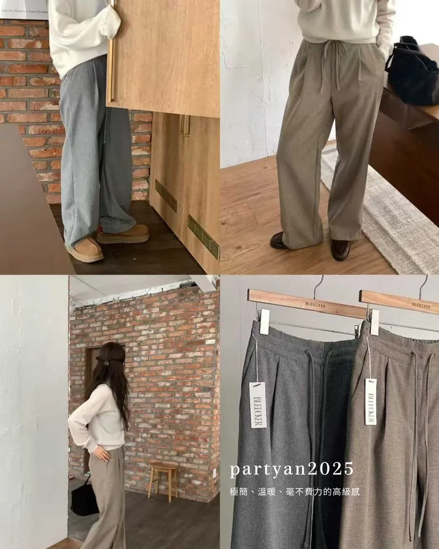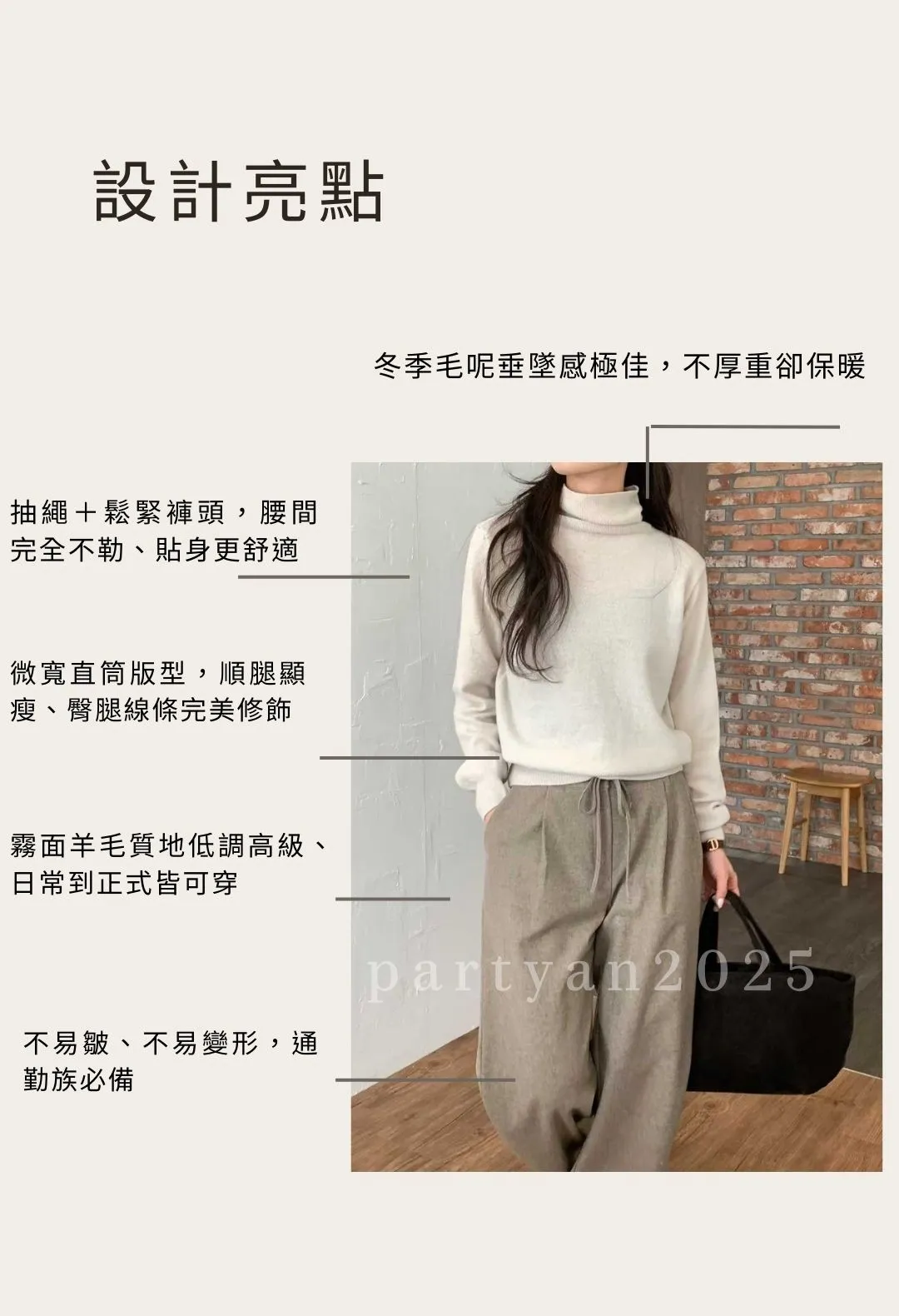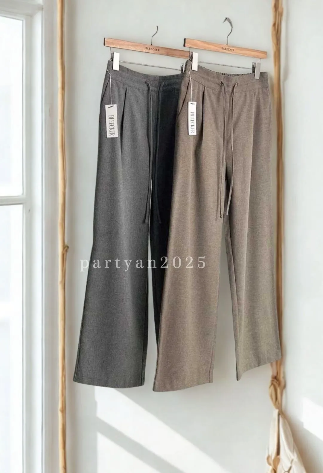 PARTYAN 韓國直送 Roy Élan Drawstring Trousers|雅緻抽繩毛呢寬褲