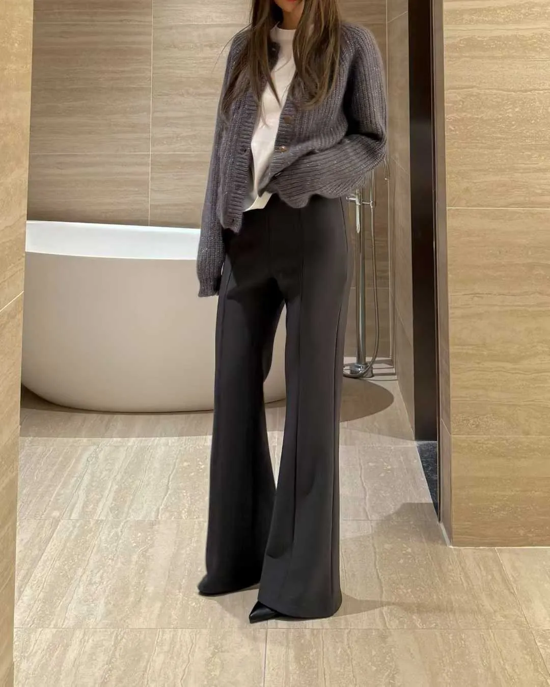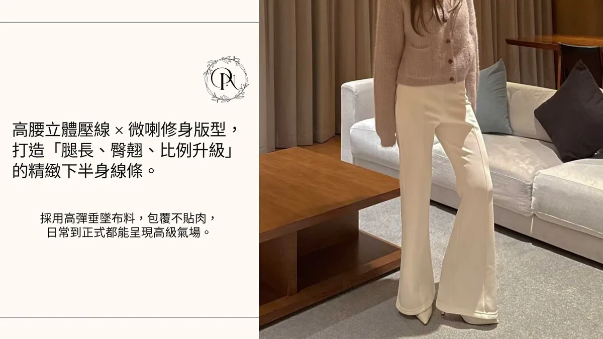 PARTYAN 韓國直送 ÉLAN Sculpt Flare Trousers|高訂立體線條微喇修身長褲