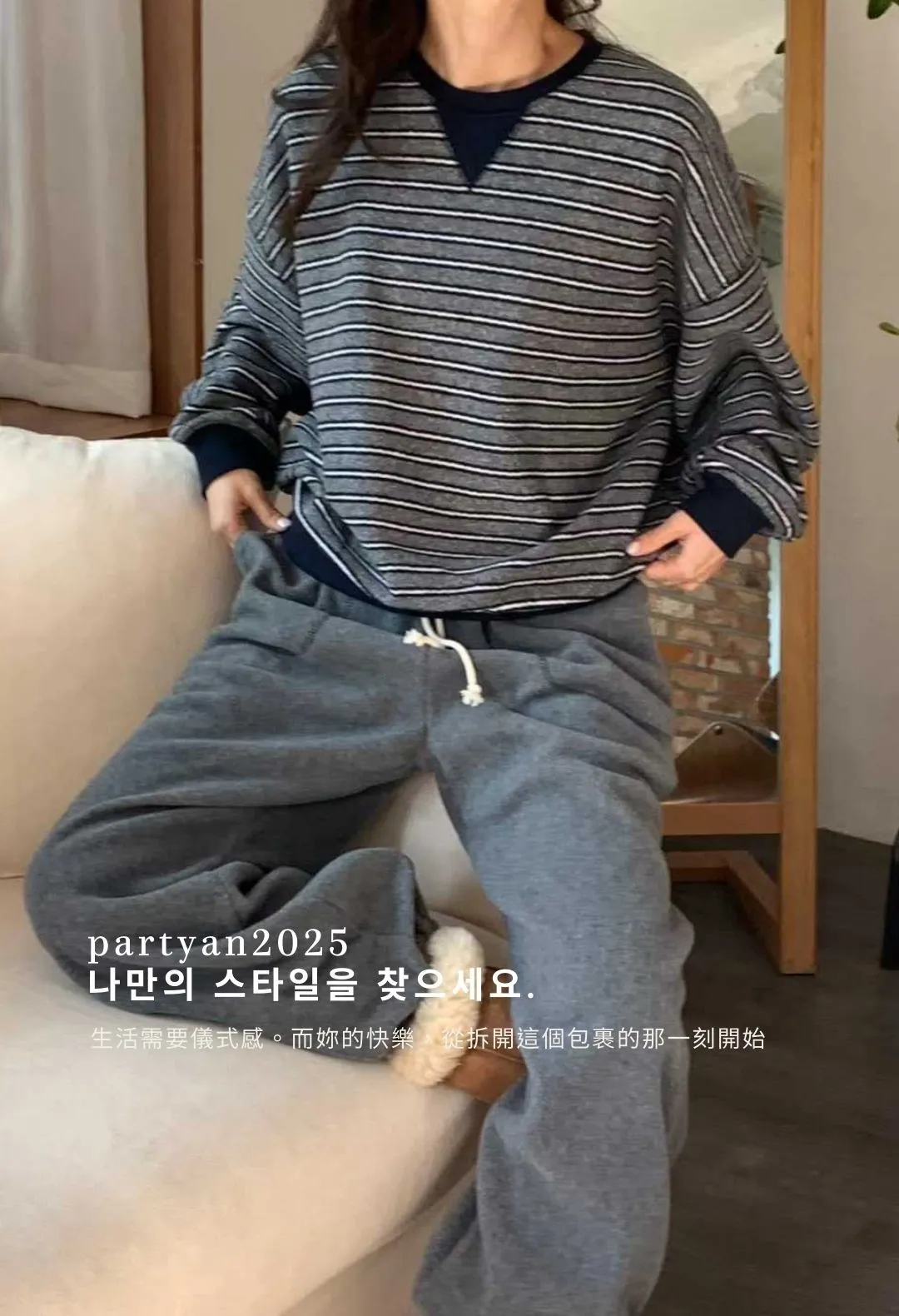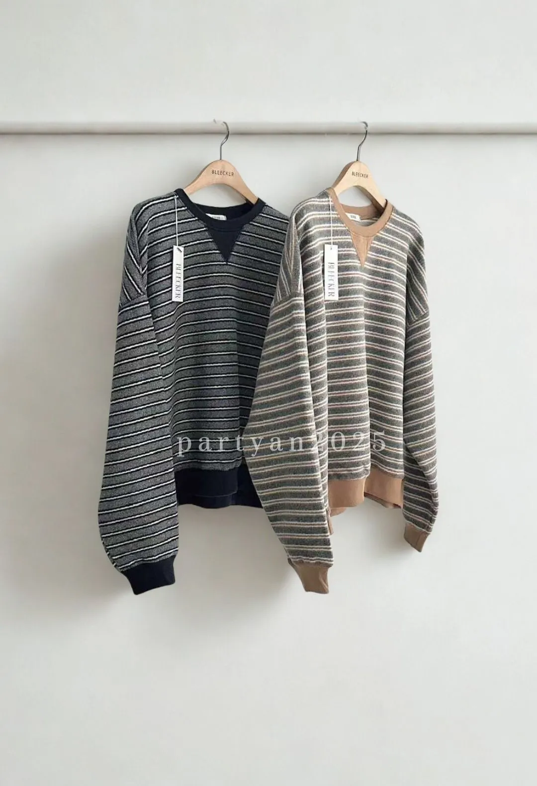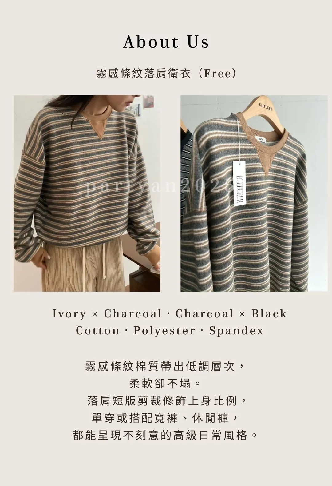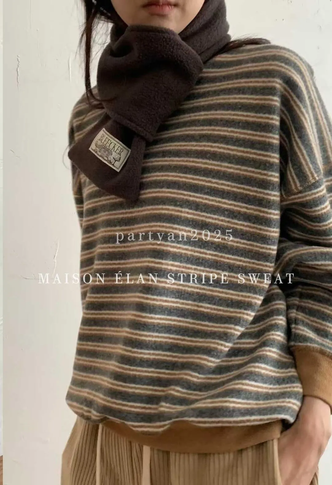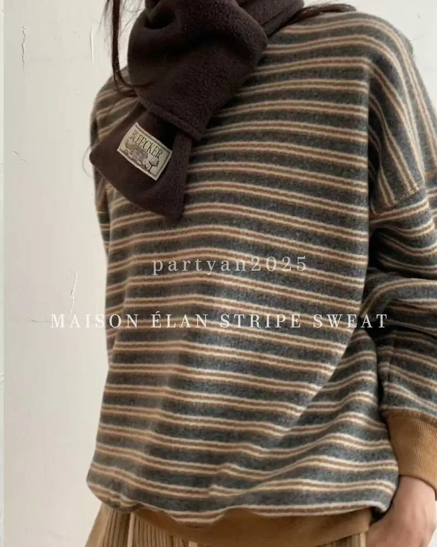 PARTYAN 韓國直購 MAISON ÉLAN STRIPE SWEAT|霧感條紋落肩衛衣