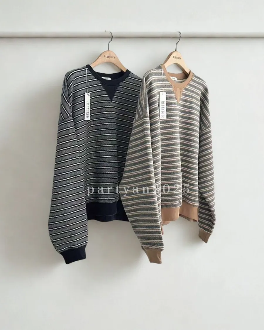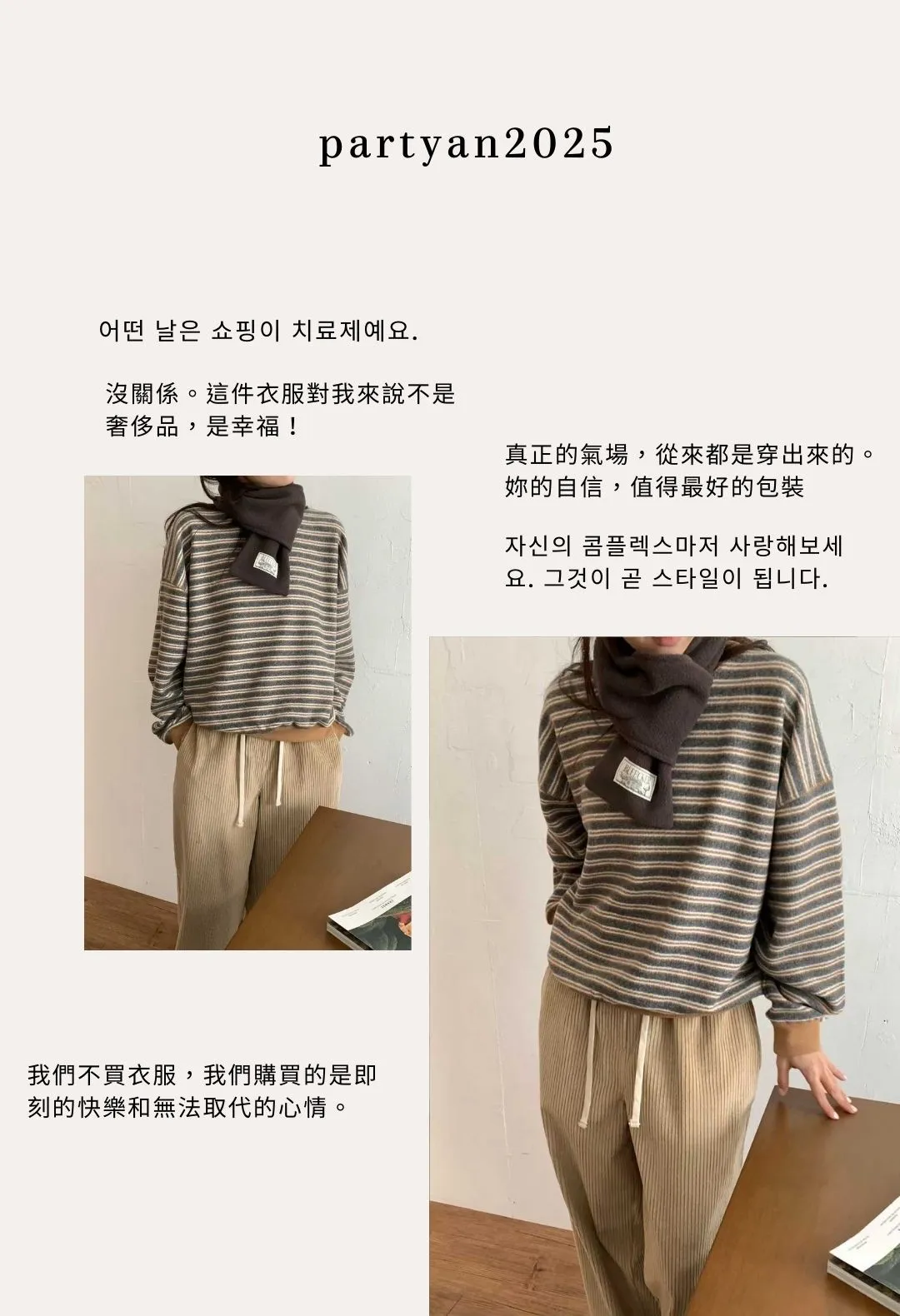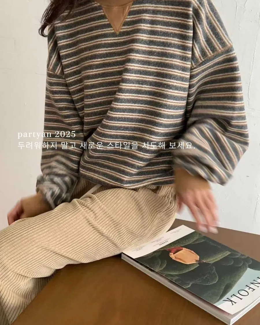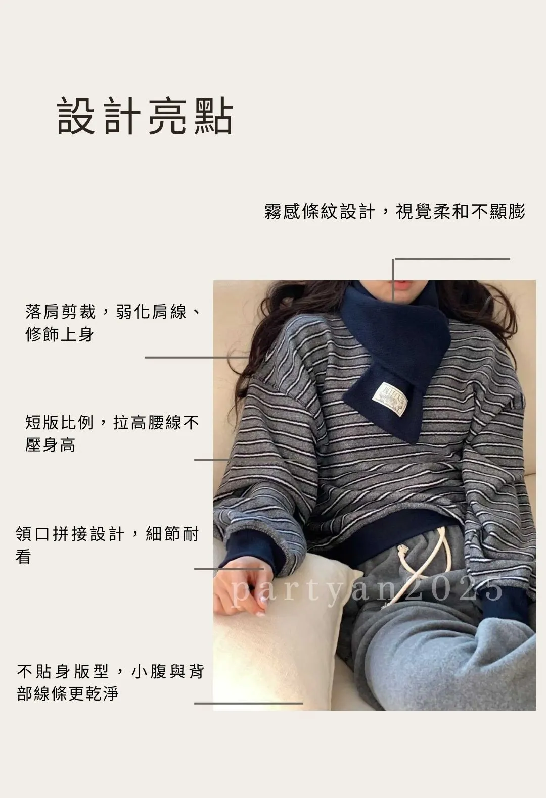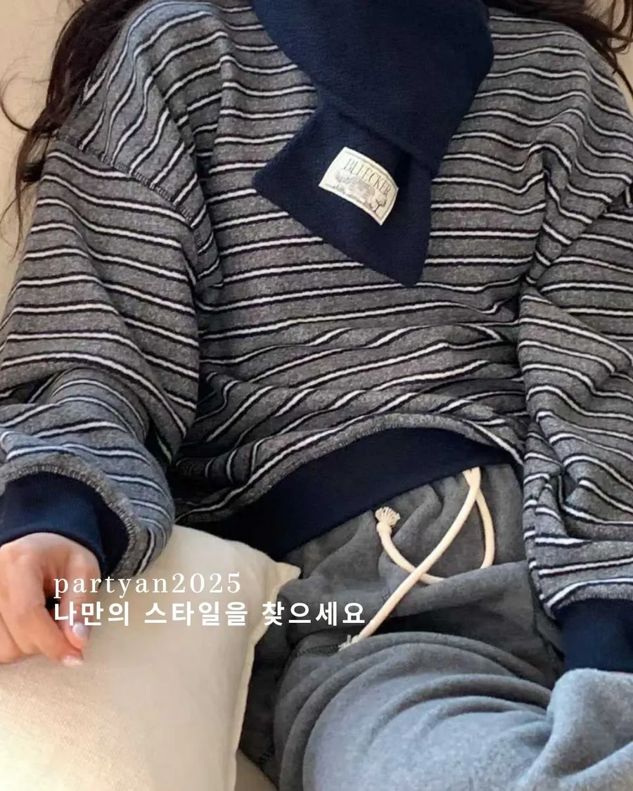 PARTYAN 韓國直購 MAISON ÉLAN STRIPE SWEAT|霧感條紋落肩衛衣