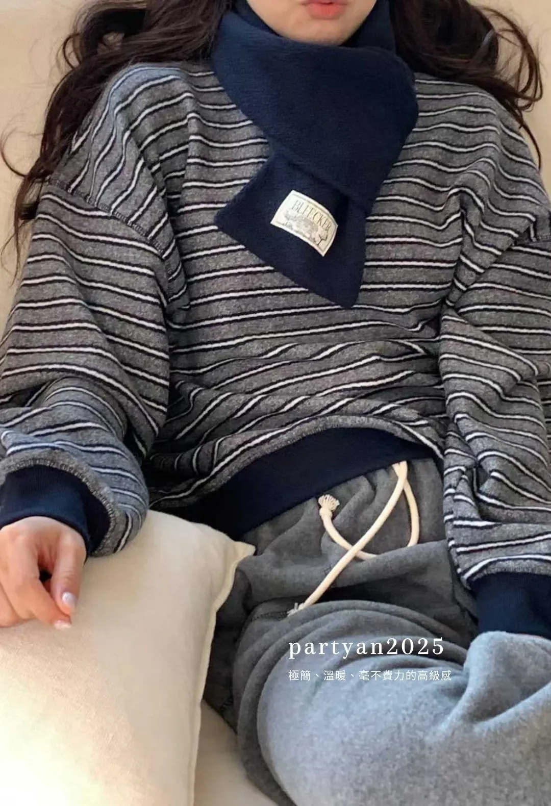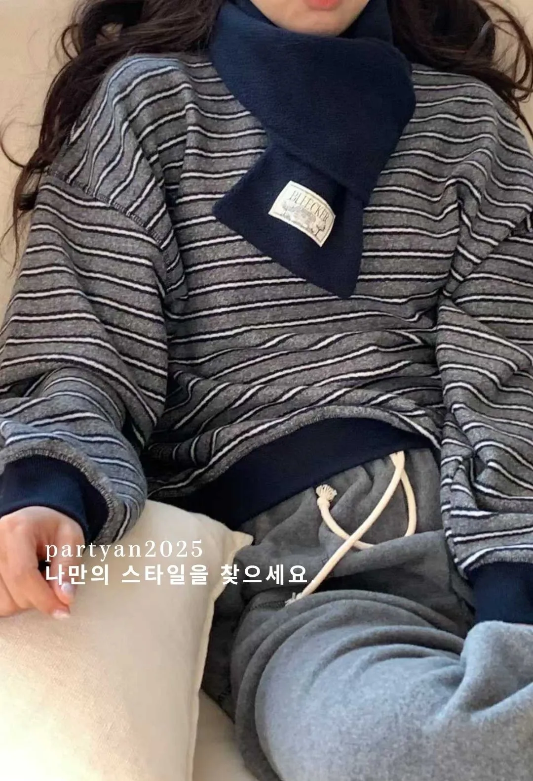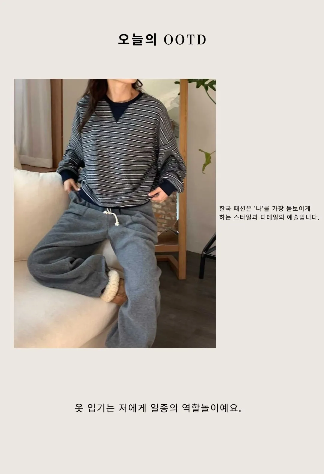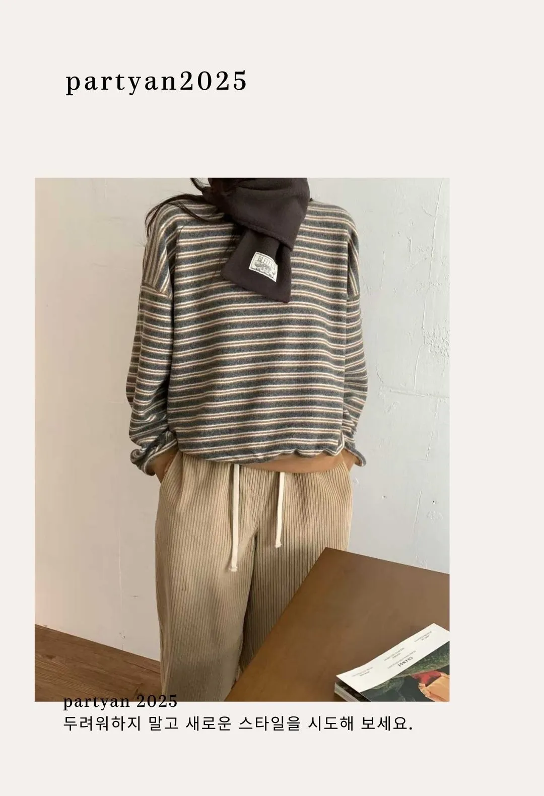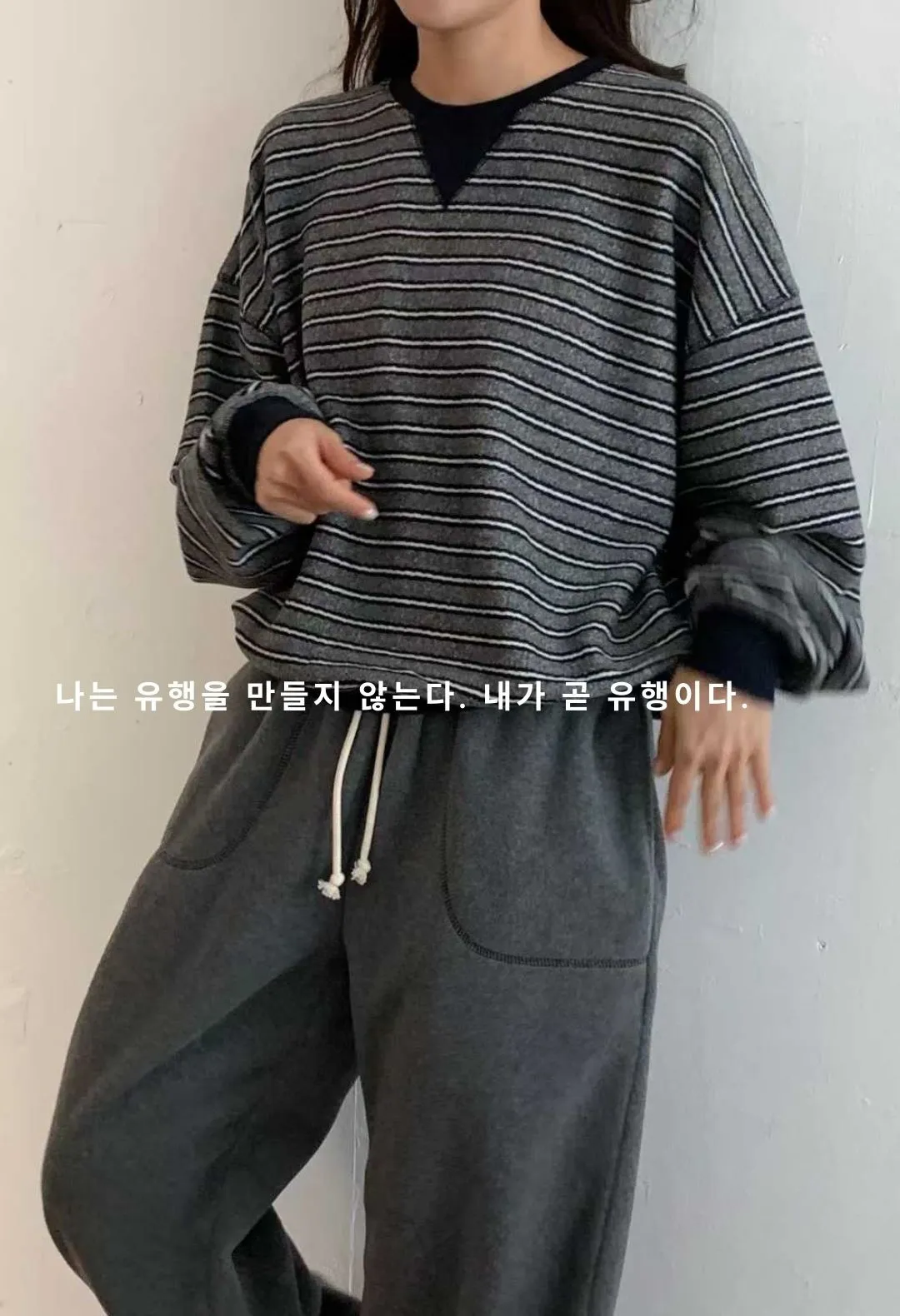 PARTYAN 韓國直購 MAISON ÉLAN STRIPE SWEAT|霧感條紋落肩衛衣