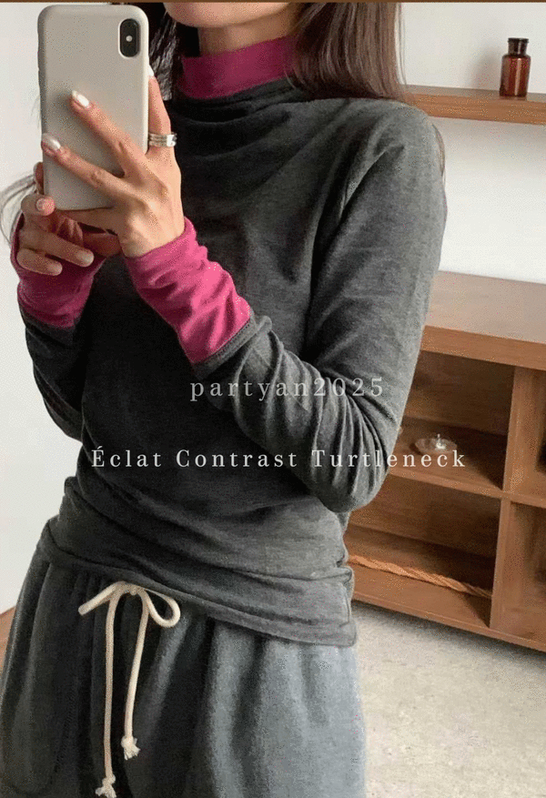 PARTYAN 韓國直送 Éclat Contrast Turtleneck 極簡撞色高領上衣