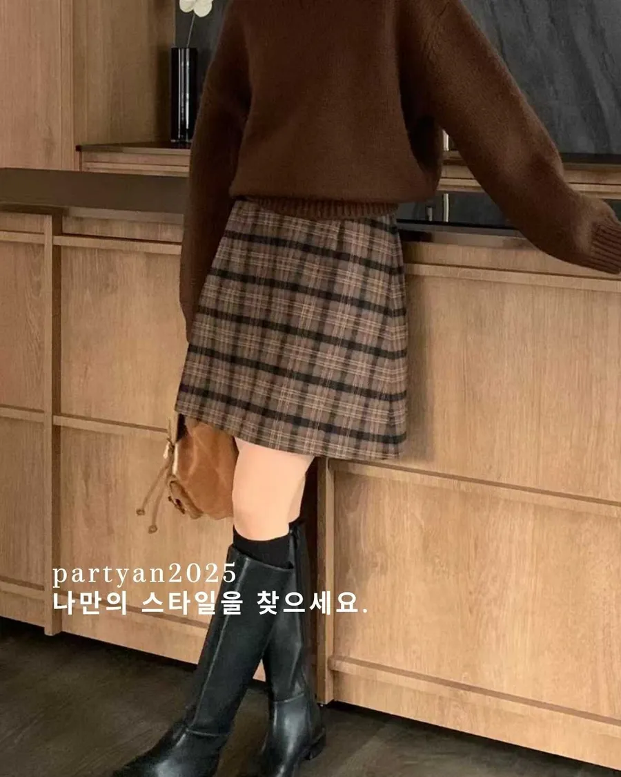 PARTYAN 韓國直購 HERITAGE CHECK SKIRT|經典馬德拉格紋修身短裙