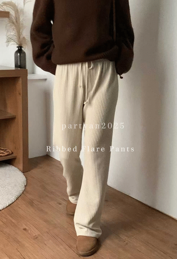PARTYAN 韓國直送 Ribbed Flare Pants|羅紋微喇叭彈力長褲