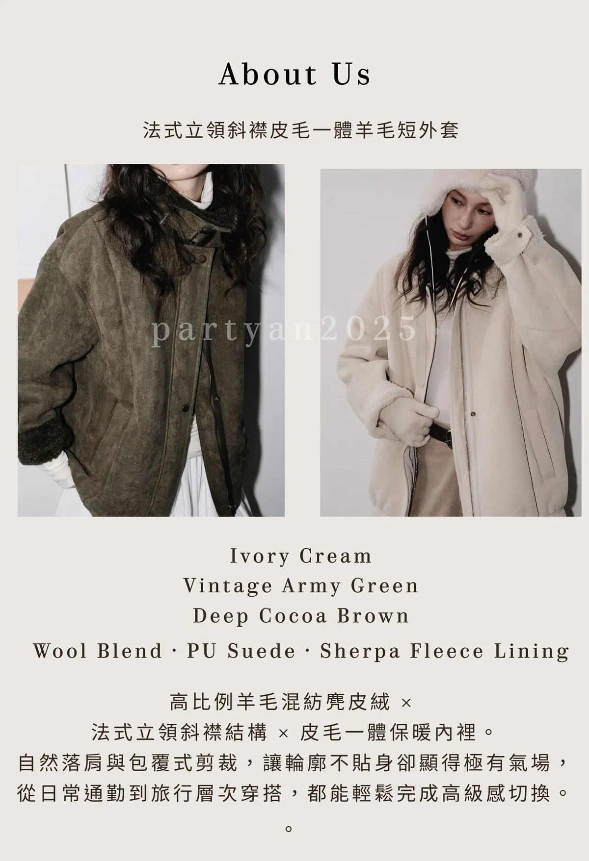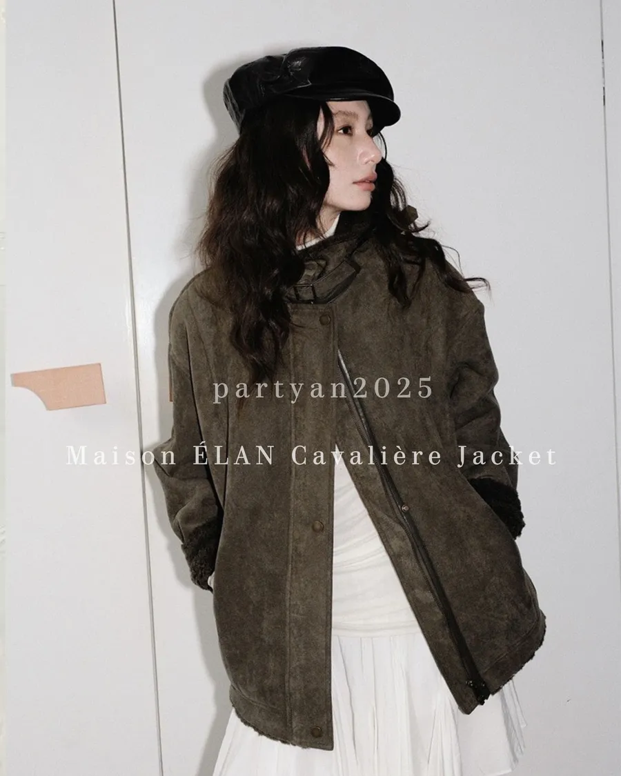 PARTYAN 設計款 Maison ÉLAN Cavalière Jacket|法式立領斜襟皮毛一體羊毛短外套