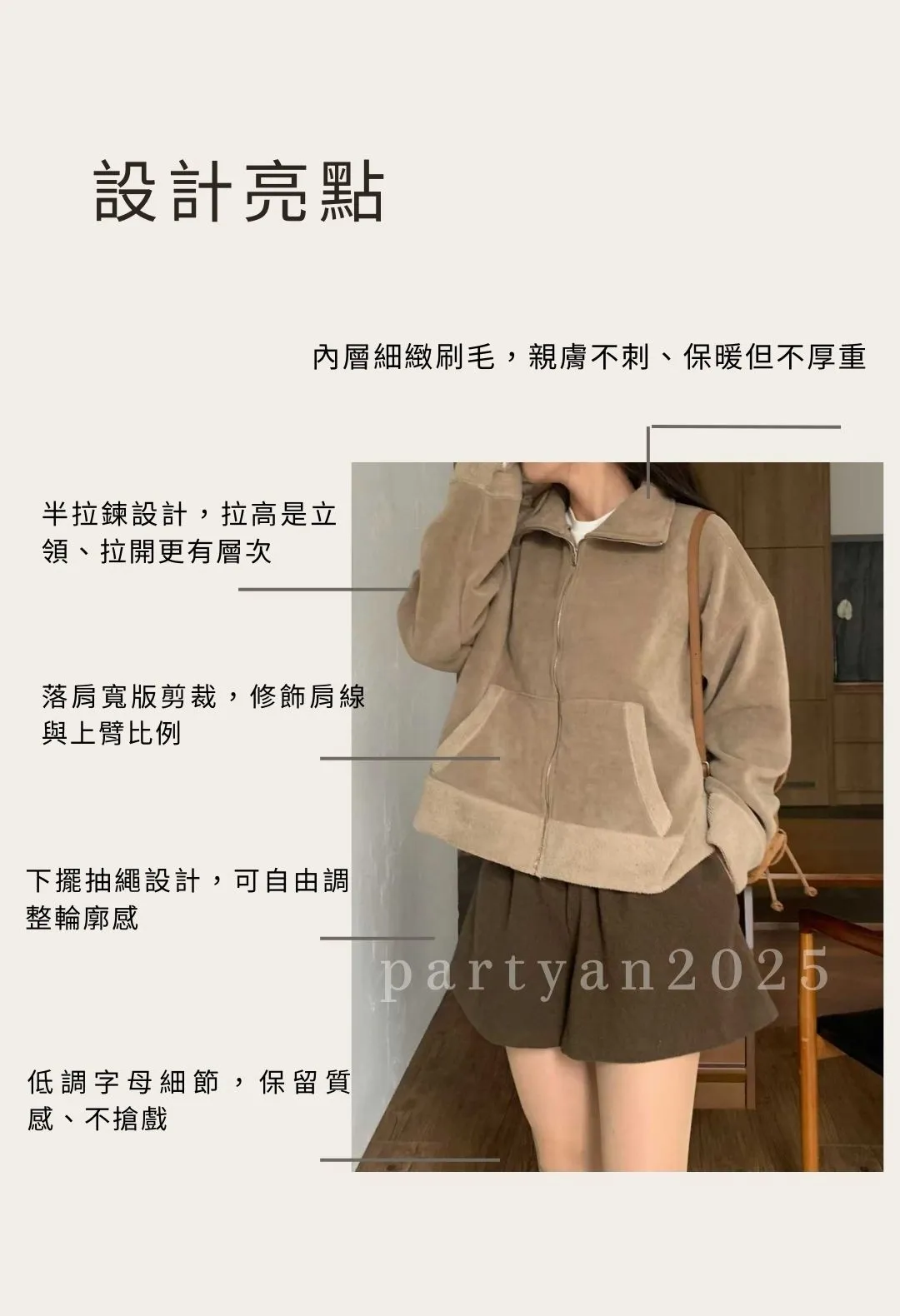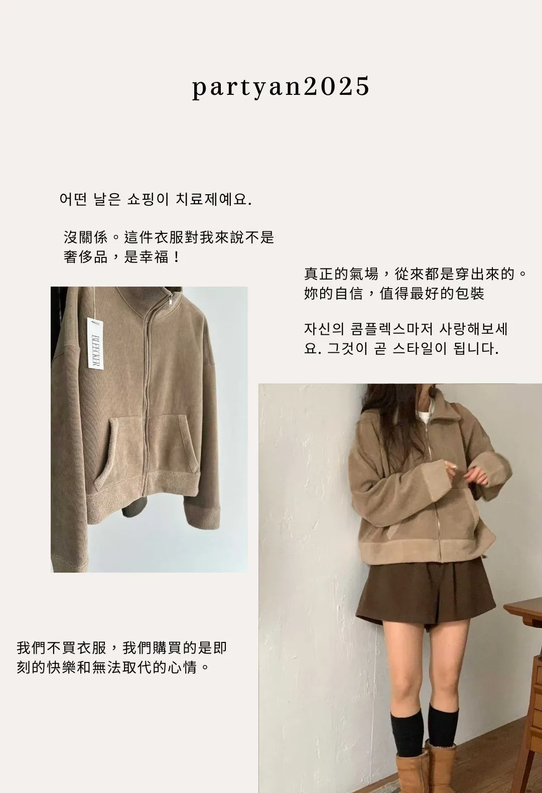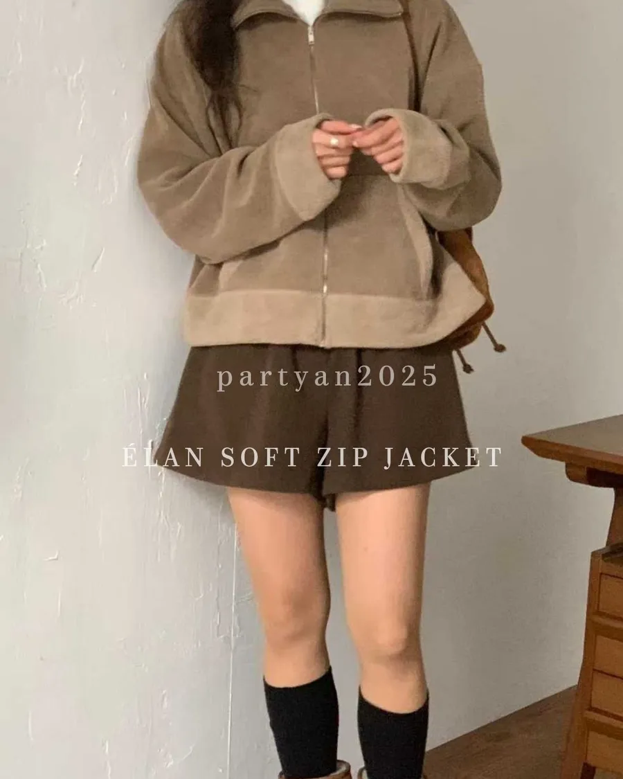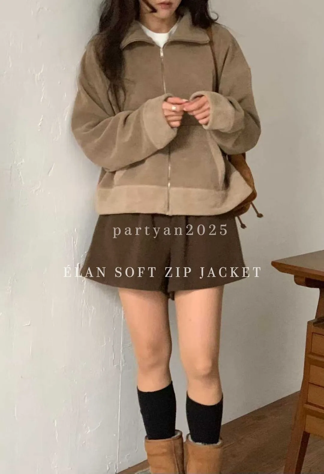 PARTYAN 韓國直購 ÉLAN SOFT ZIP JACKET|柔霧刷毛半拉鍊外套