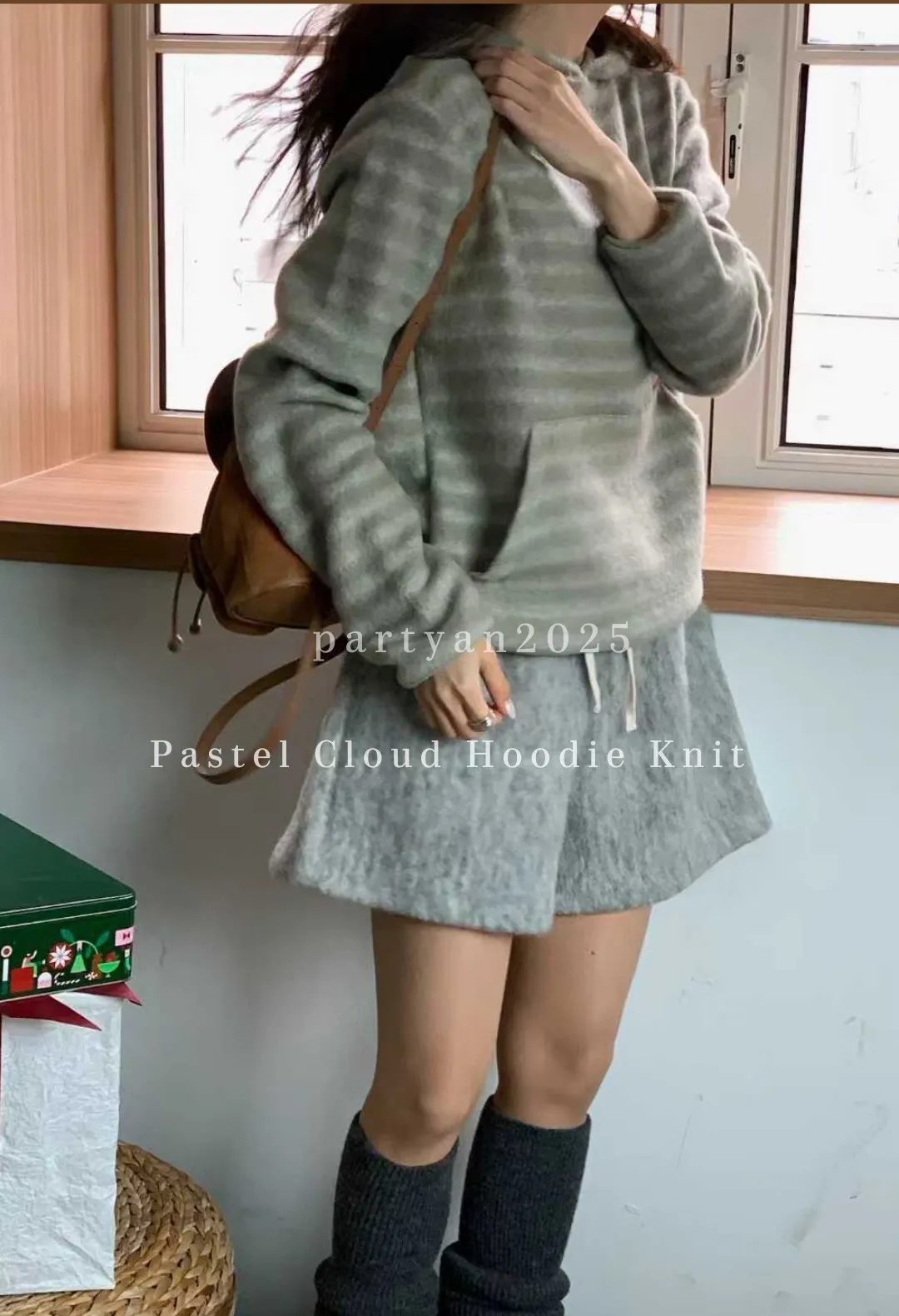 PARTYAN 韓國直送 Pastel Cloud Hoodie Knit馬卡龍柔霧連帽針織衫