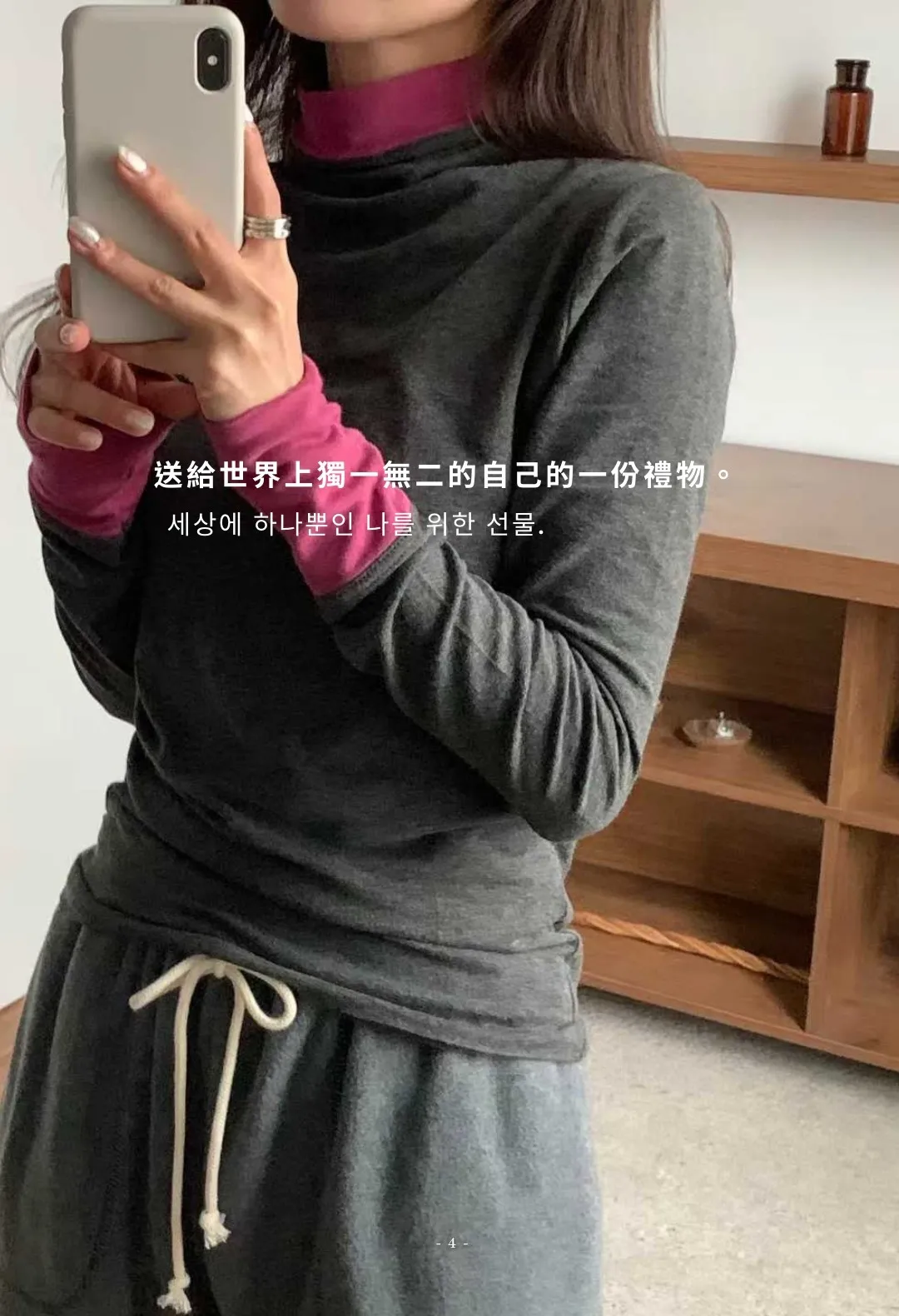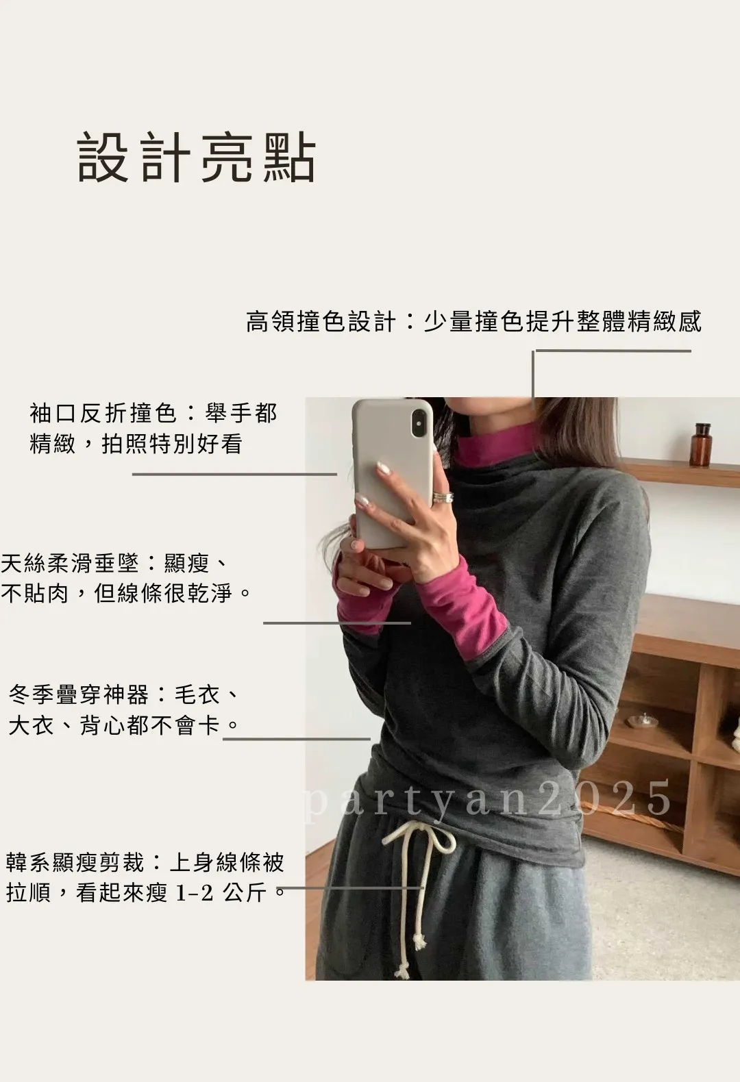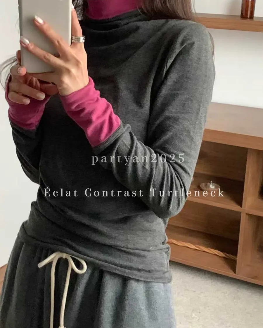 PARTYAN 韓國直送 Éclat Contrast Turtleneck 極簡撞色高領上衣