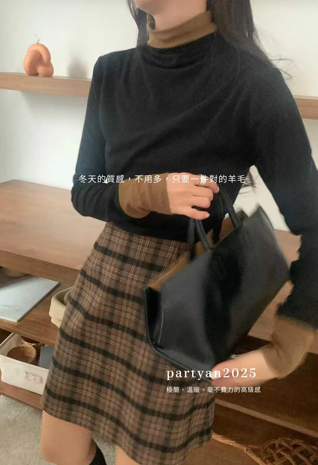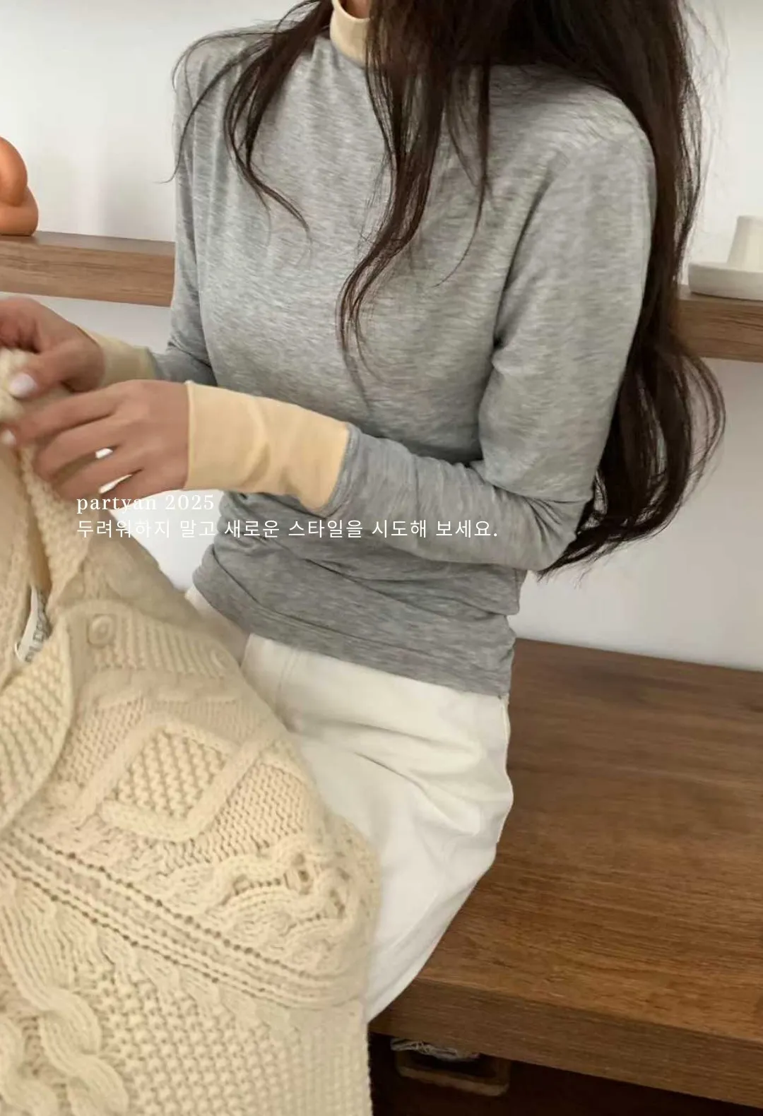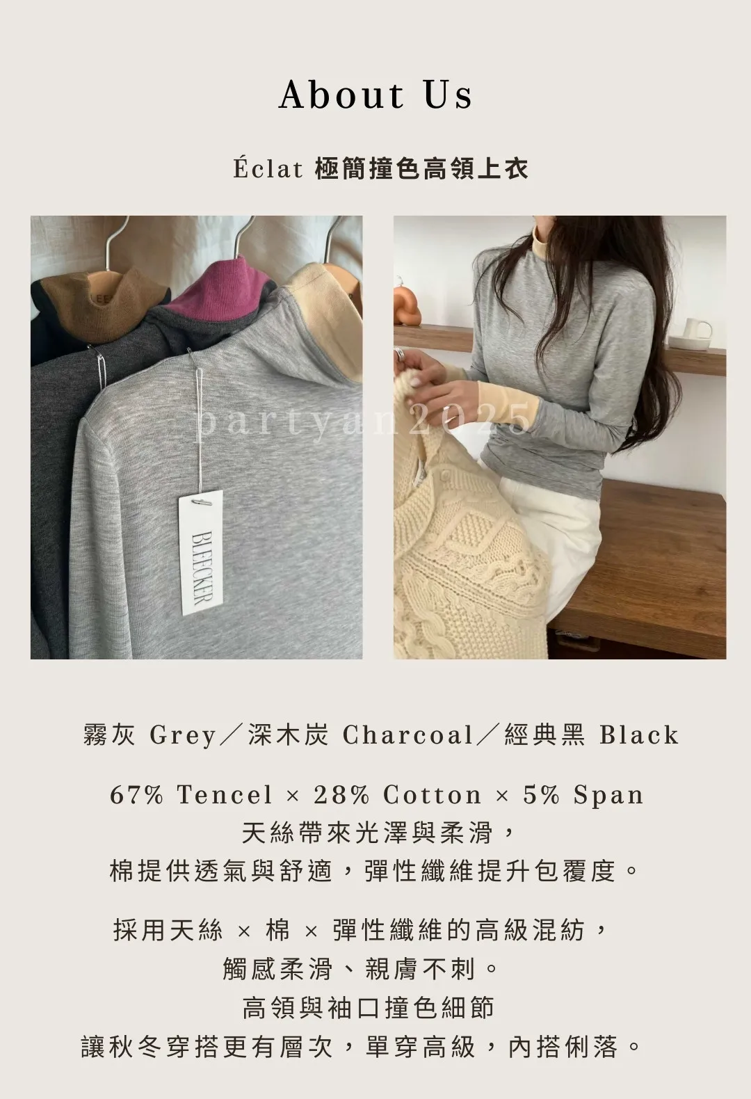 PARTYAN 韓國直送 Éclat Contrast Turtleneck 極簡撞色高領上衣