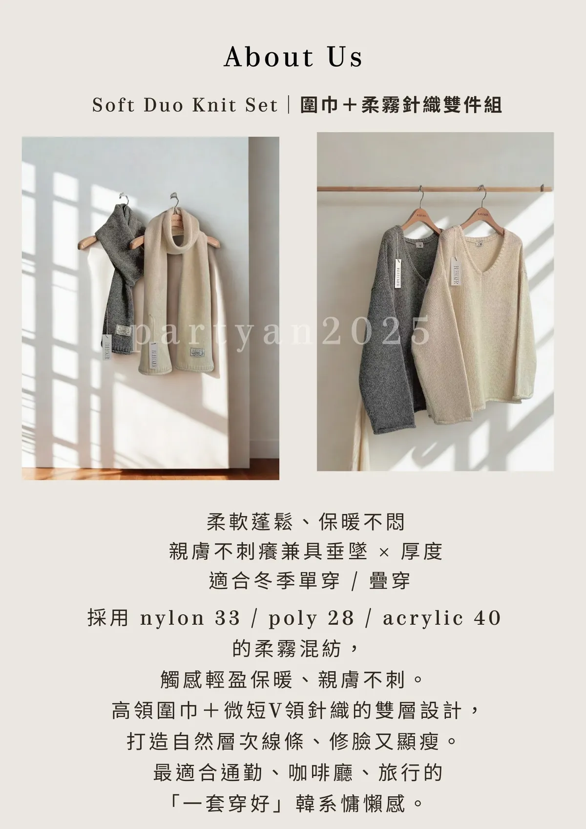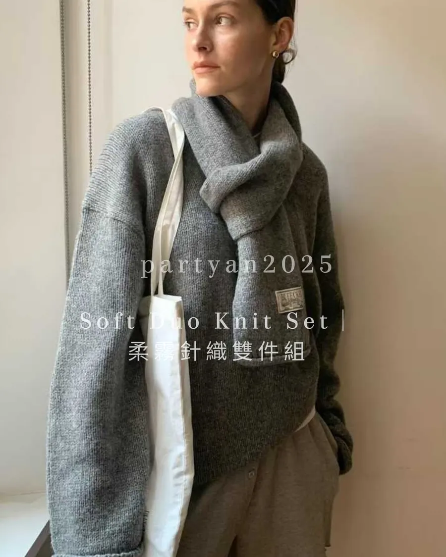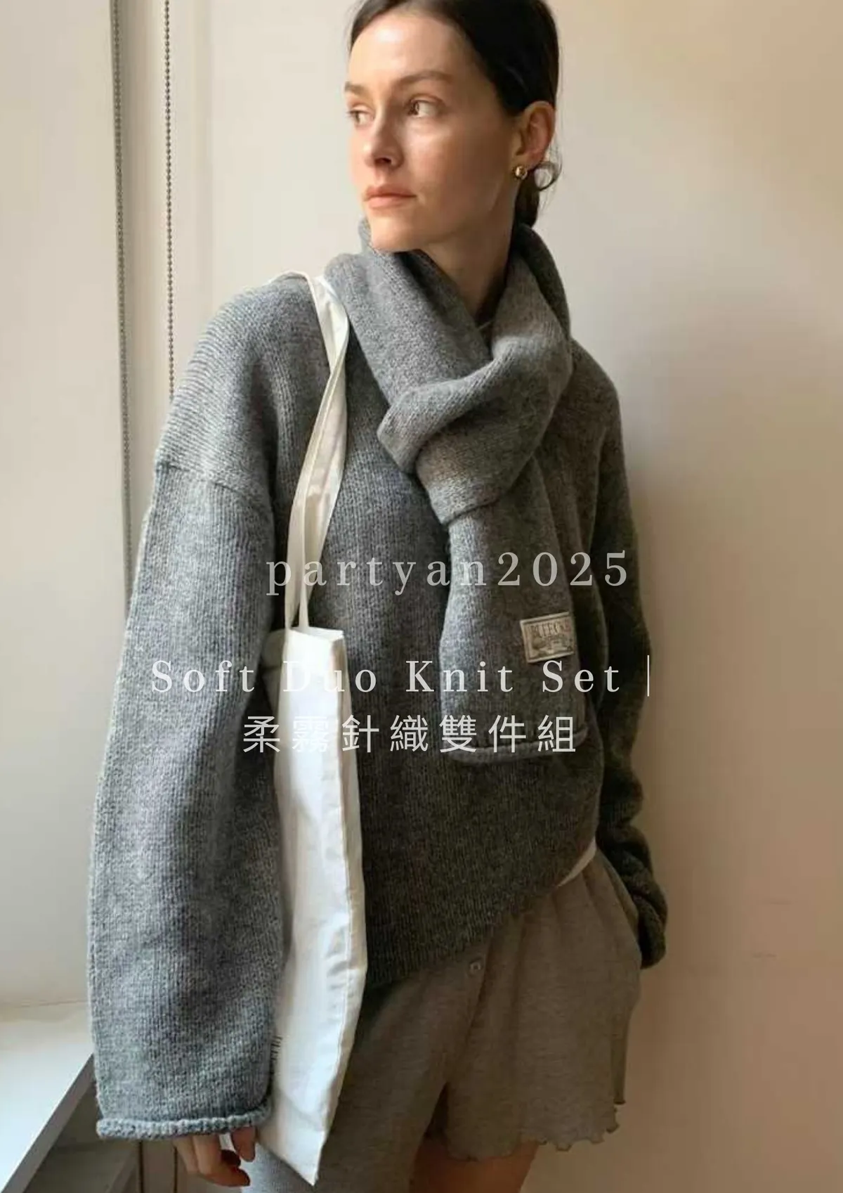 PARTYAN 韓國直送 Soft Duo Knit Set|柔霧針織+j圍巾雙件組