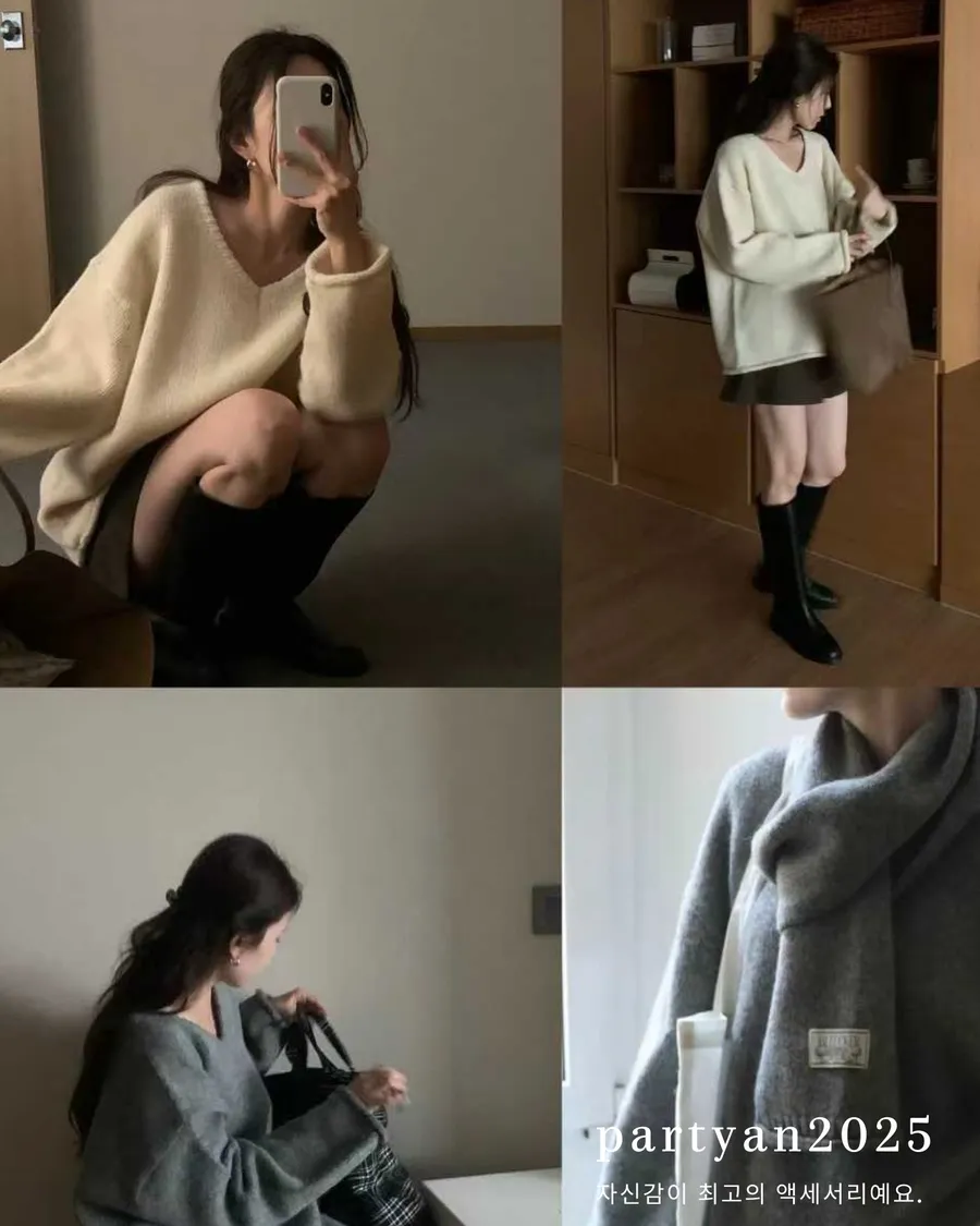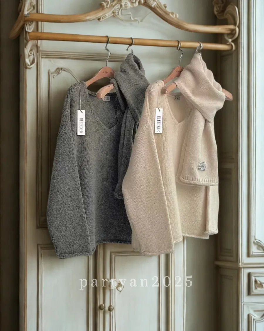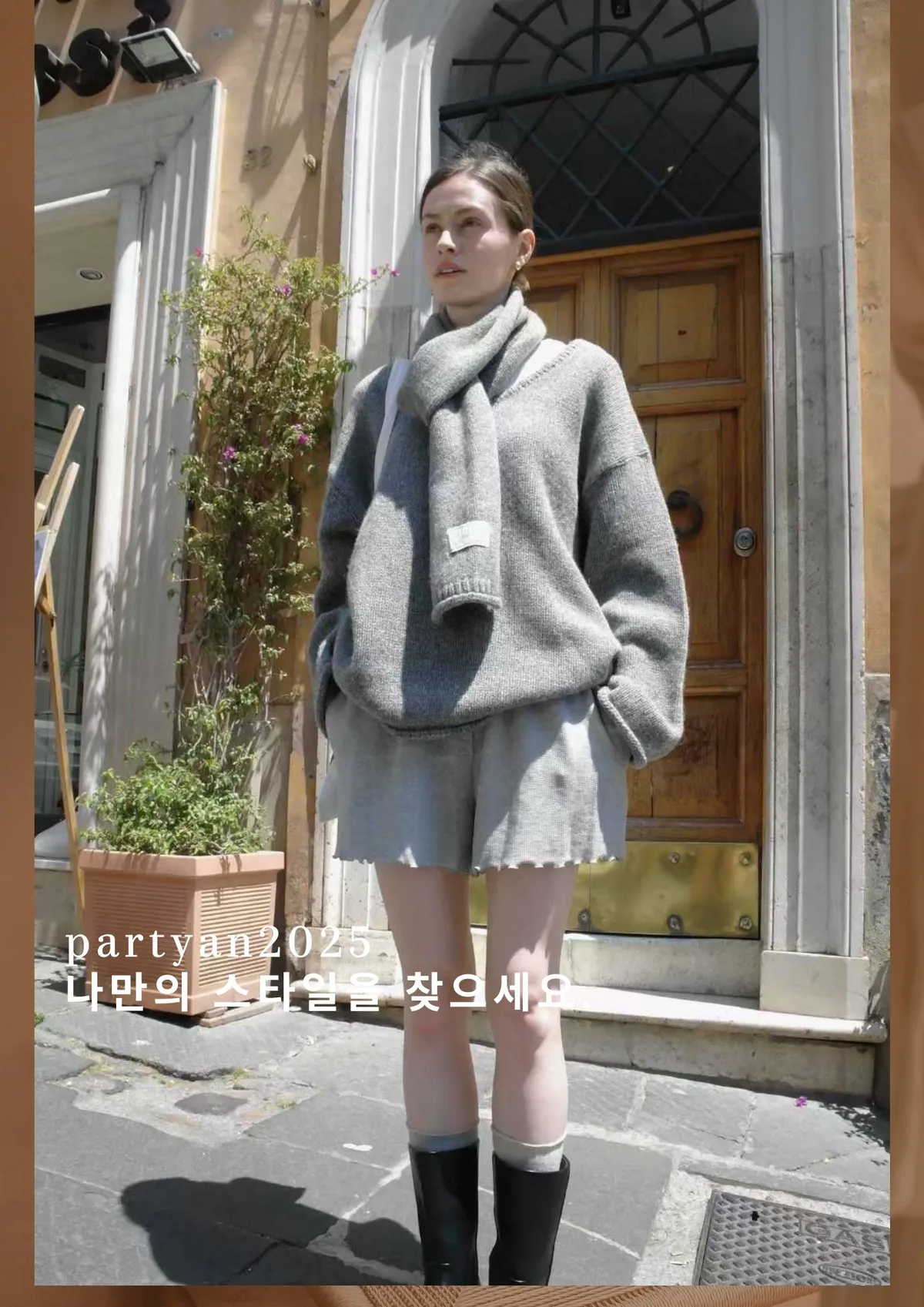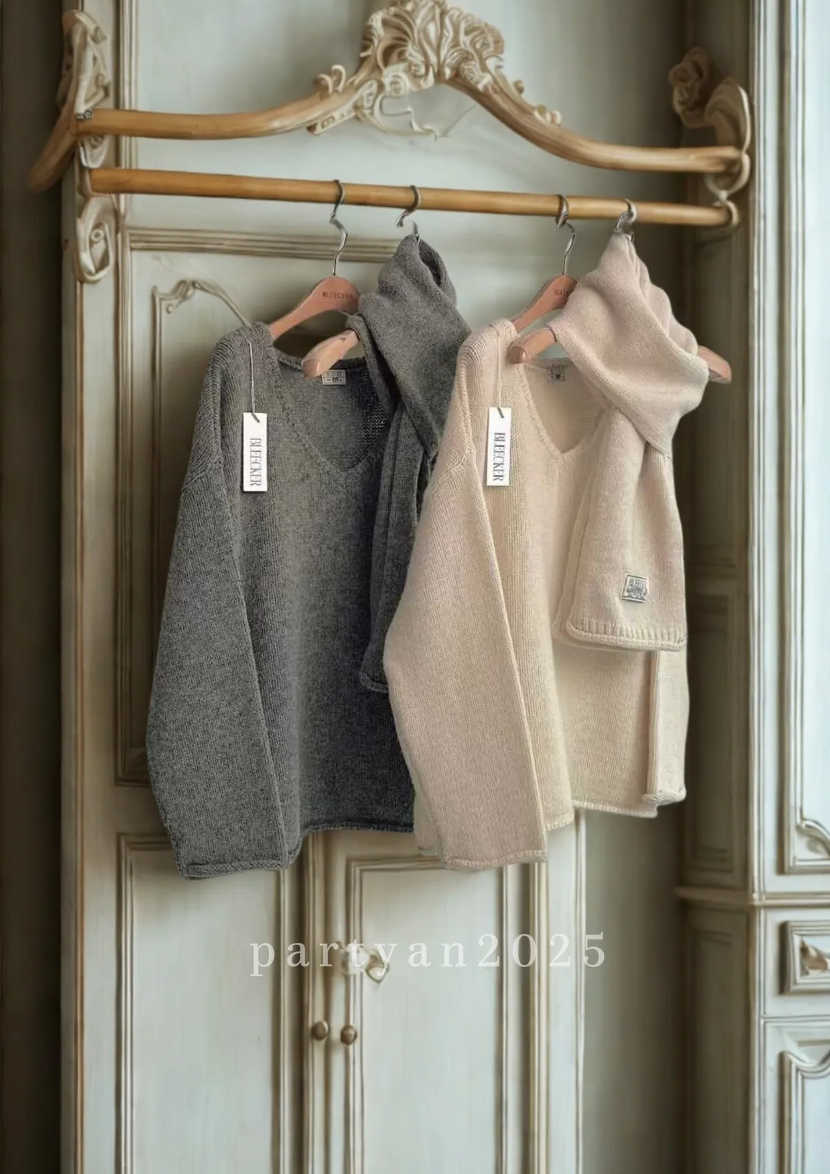 PARTYAN 韓國直送 Soft Duo Knit Set|柔霧針織+j圍巾雙件組