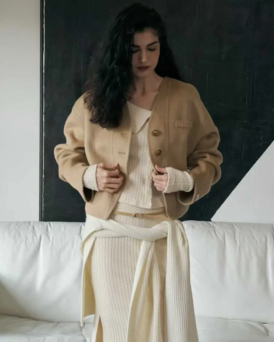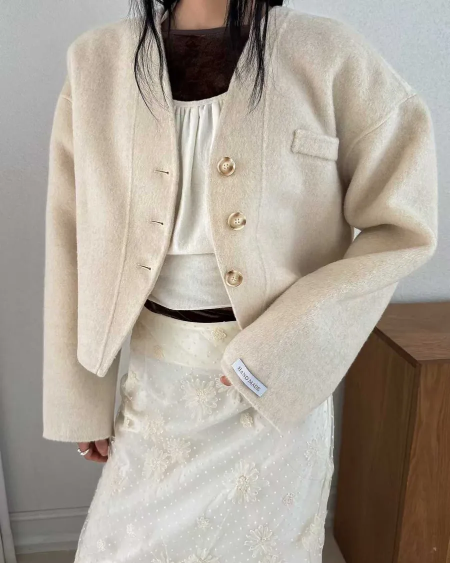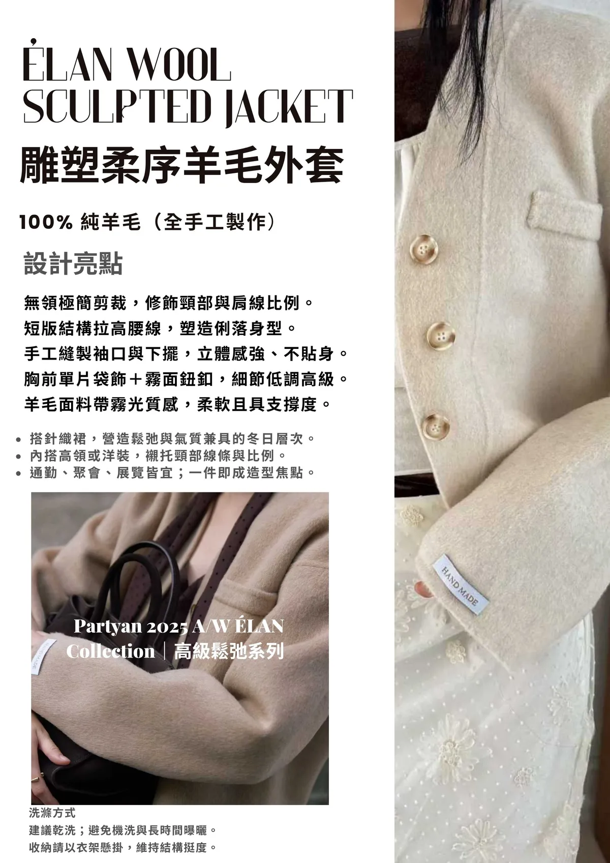 手工羊毛展現霧光肌理與自然挺度,