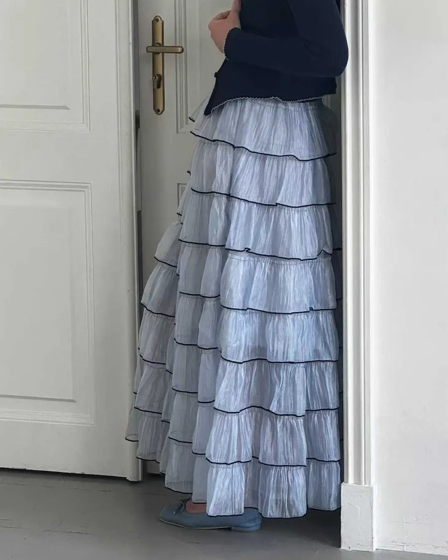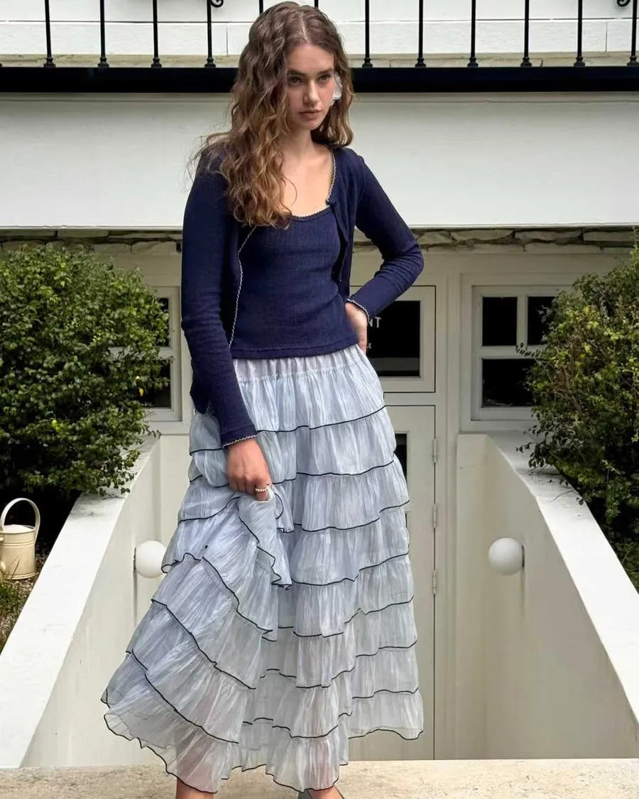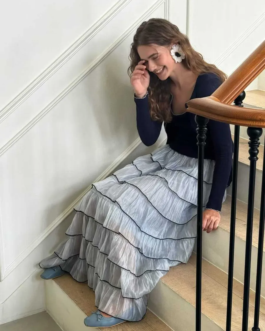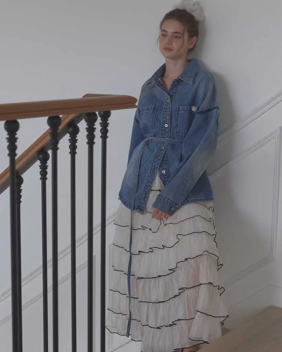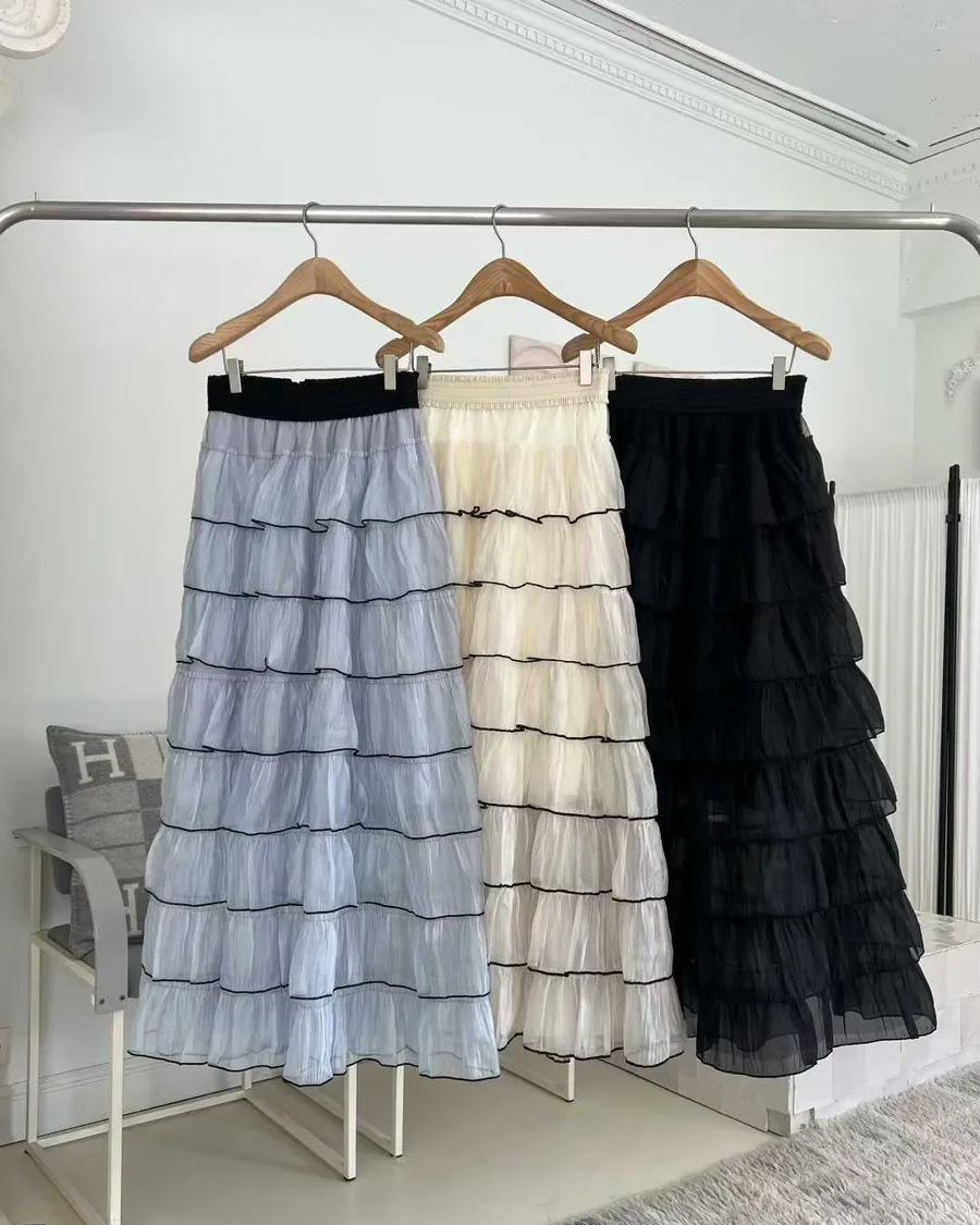 PARTYAN 韓國直送 Maison Cancan Tiered Organza Skirt 高定層疊薄紗綁帶裙