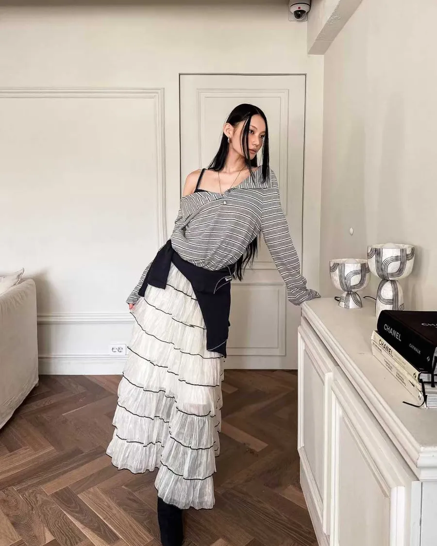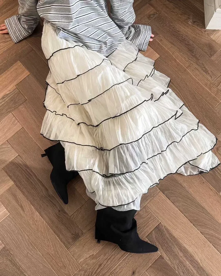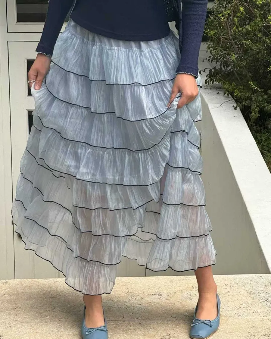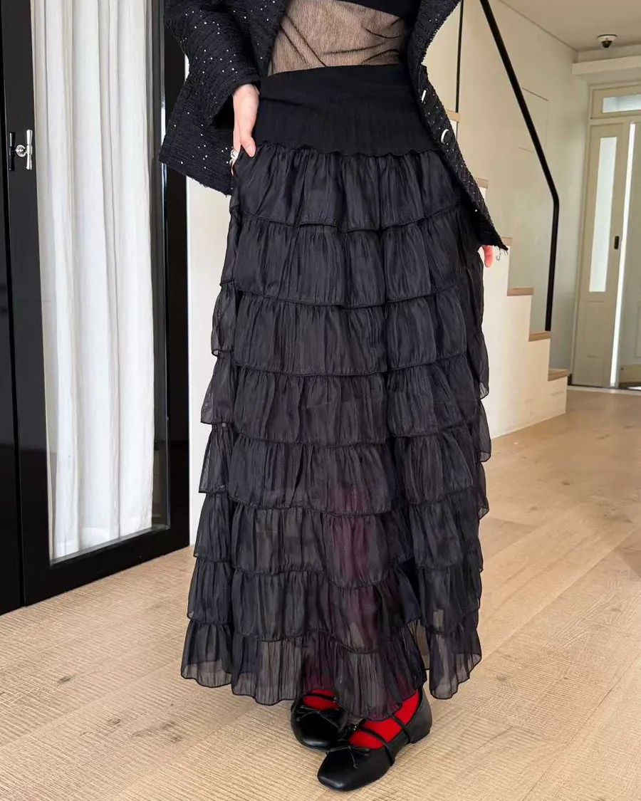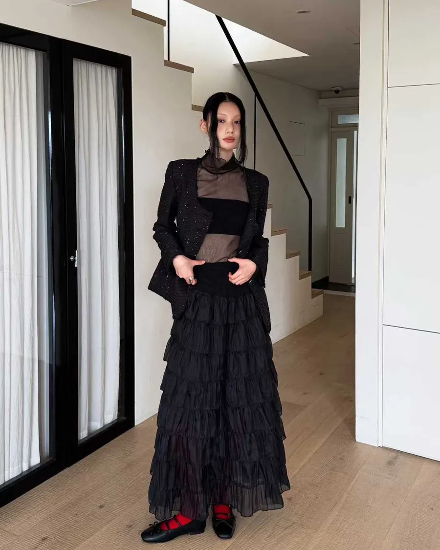 PARTYAN 韓國直送 Maison Cancan Tiered Organza Skirt 高定層疊薄紗綁帶裙