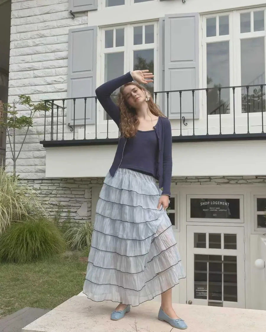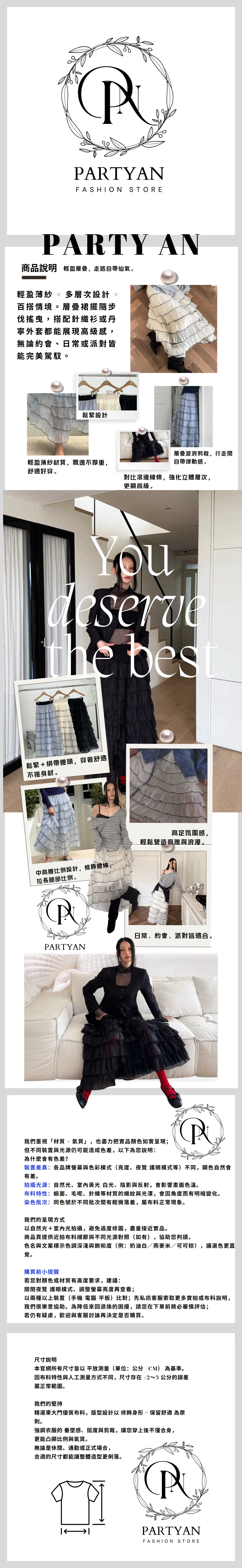 - 多層薄紗堆疊設計,製造輕盈靈動的律動感。
