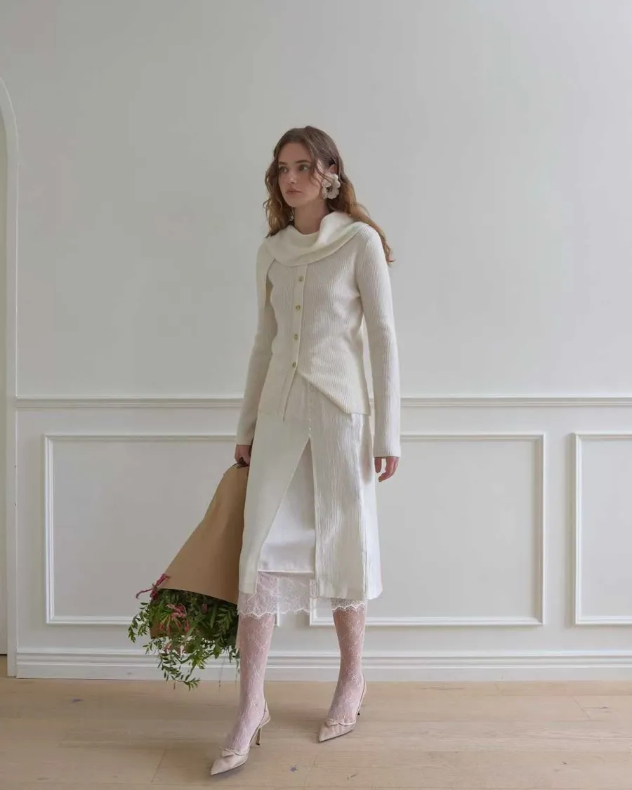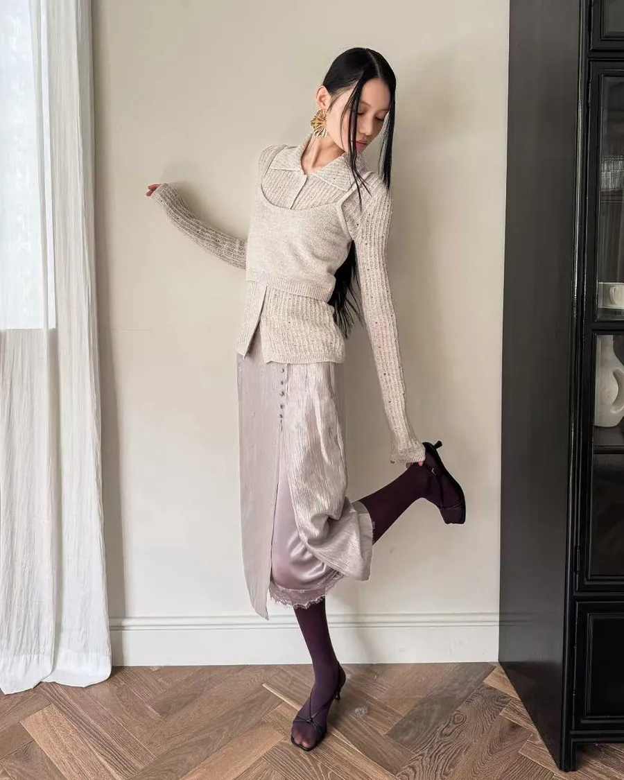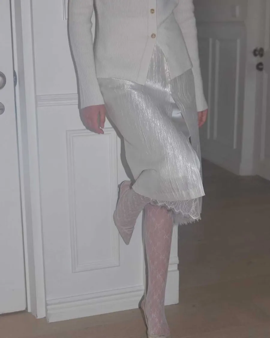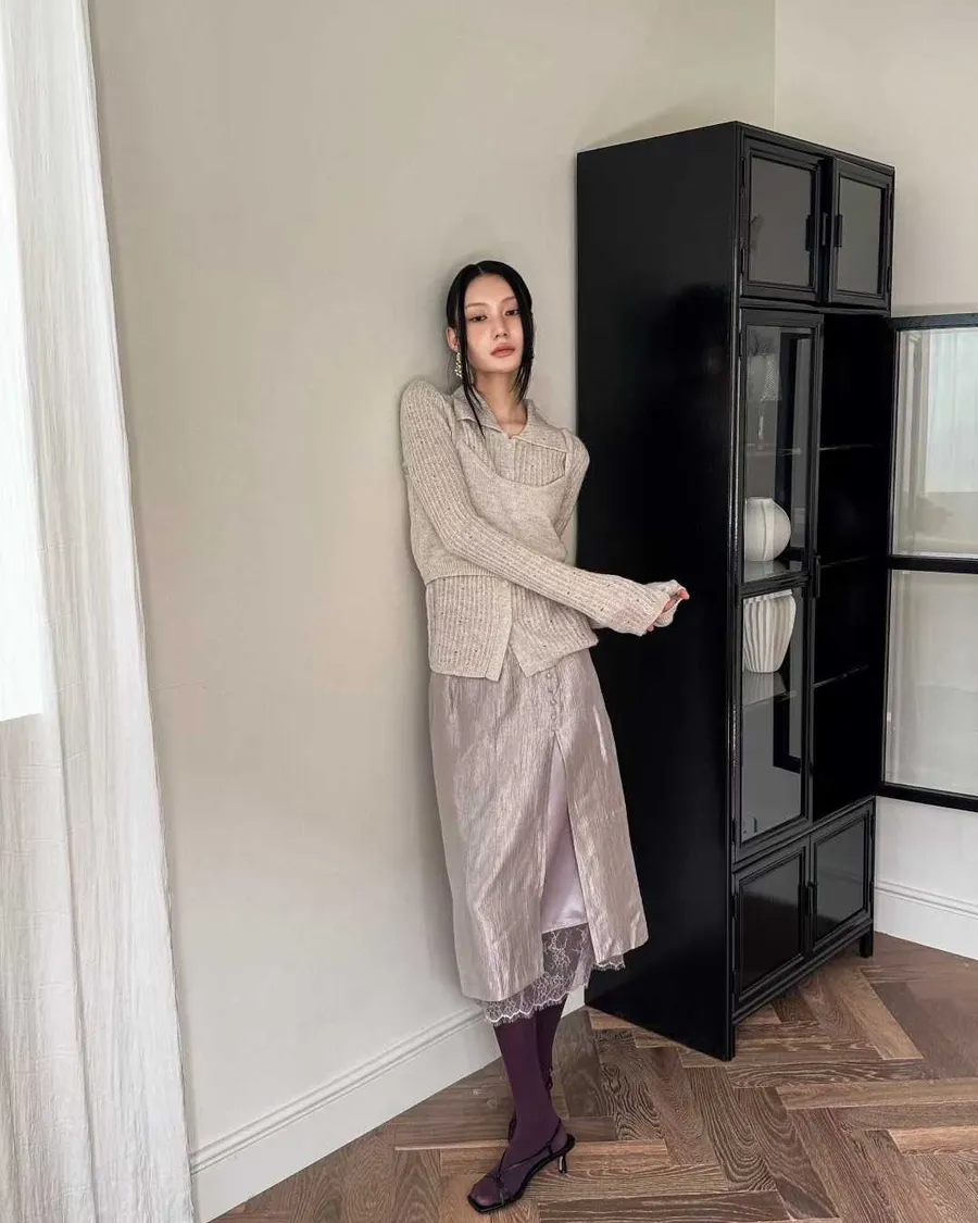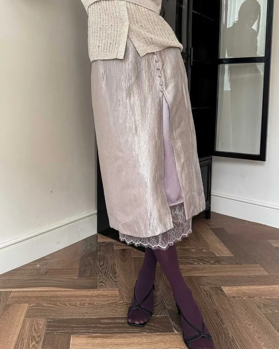 PARTYAN 韓國直送 Maison Muses Lace Satin Skirt 繆思蕾絲緞面中長裙