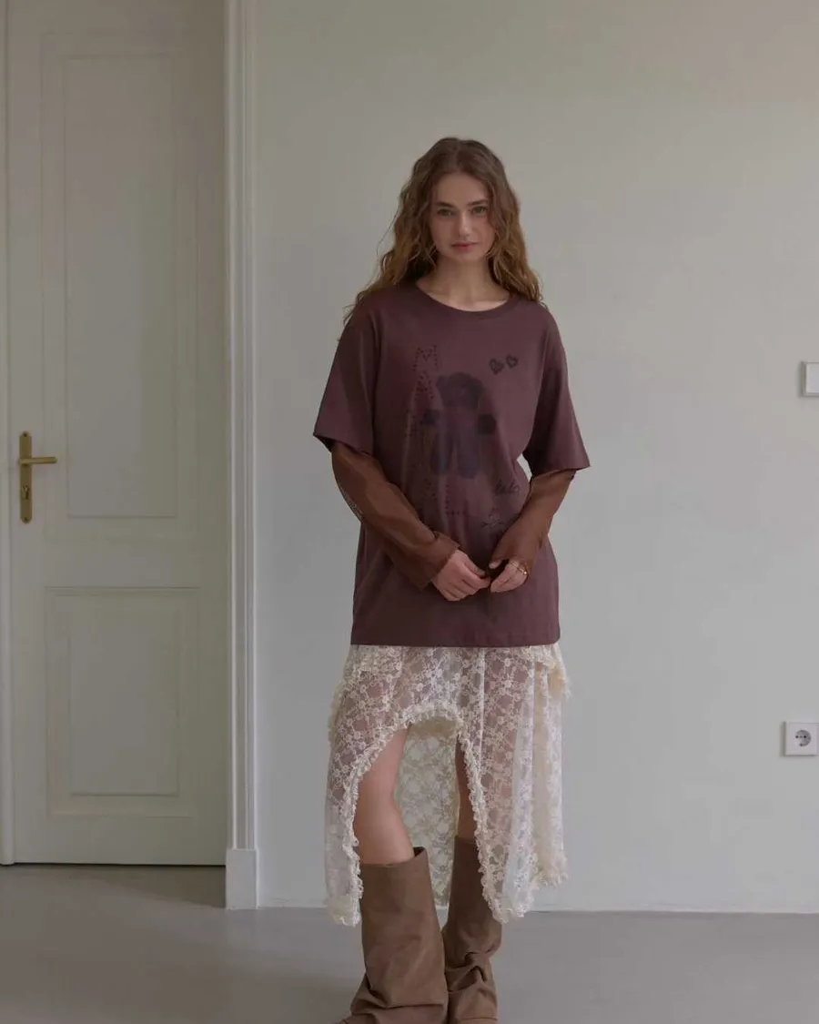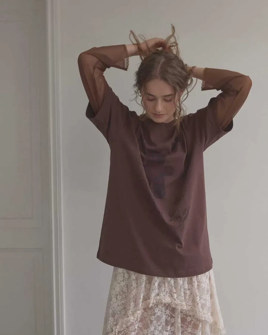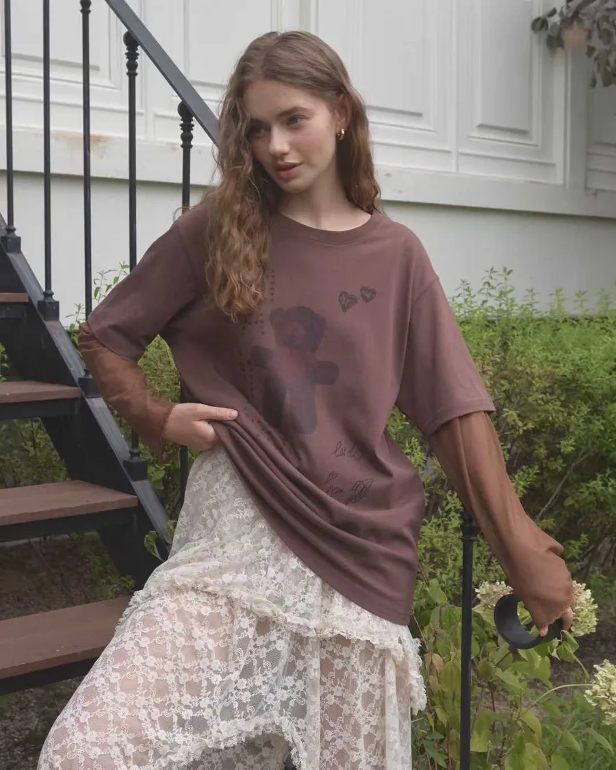 PARTYAN 韓國直送 Maison Teddy Lace Layered Tee|泰迪蕾絲拼接層次T恤