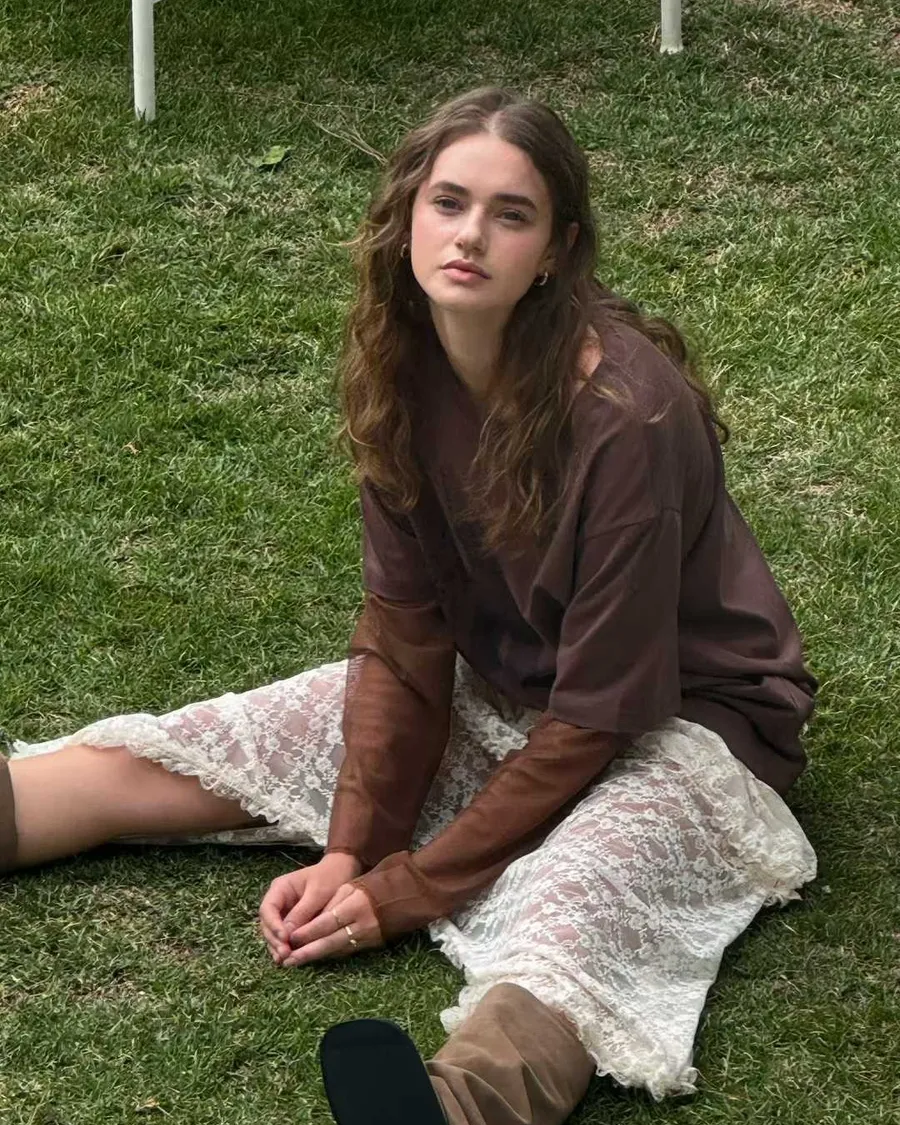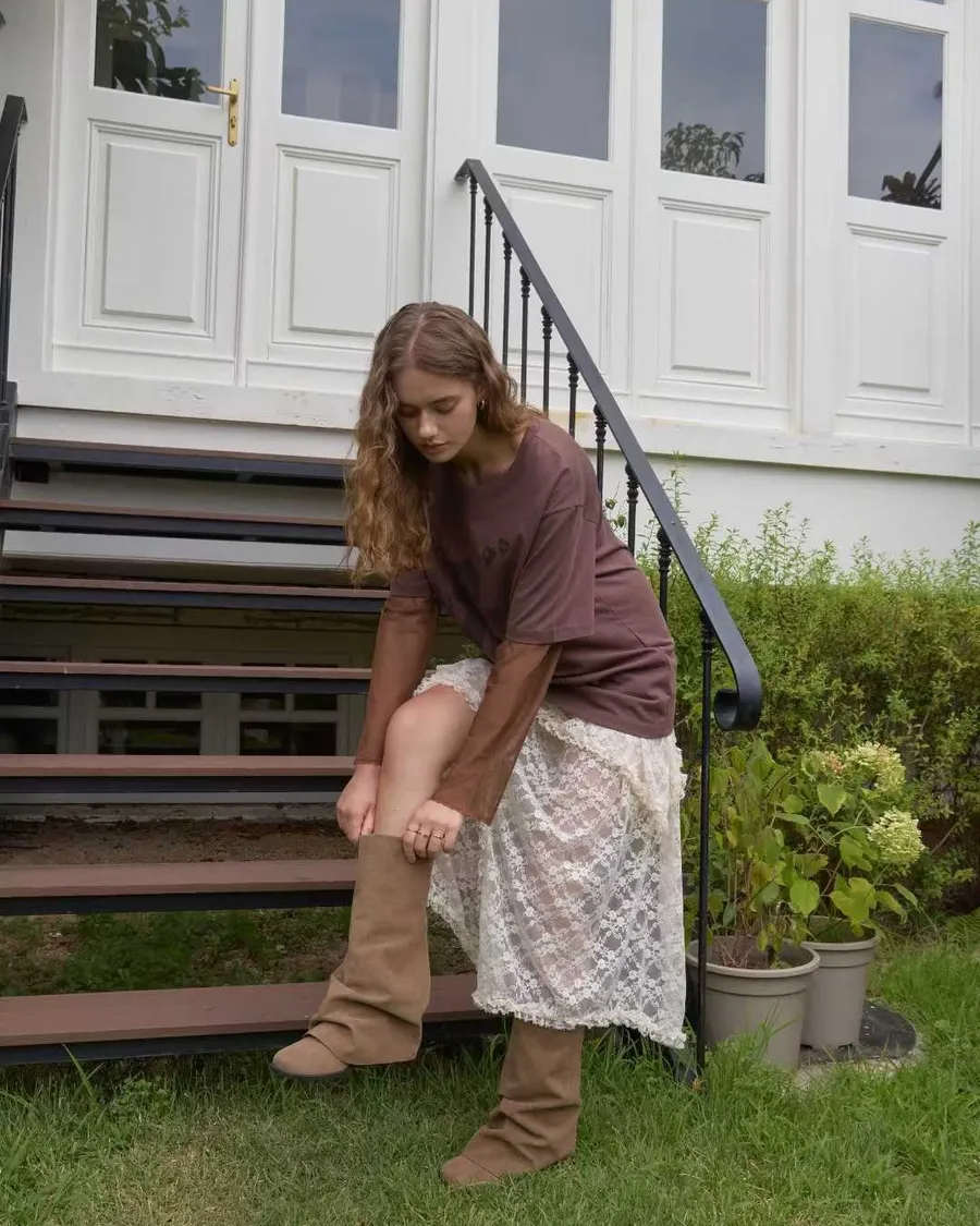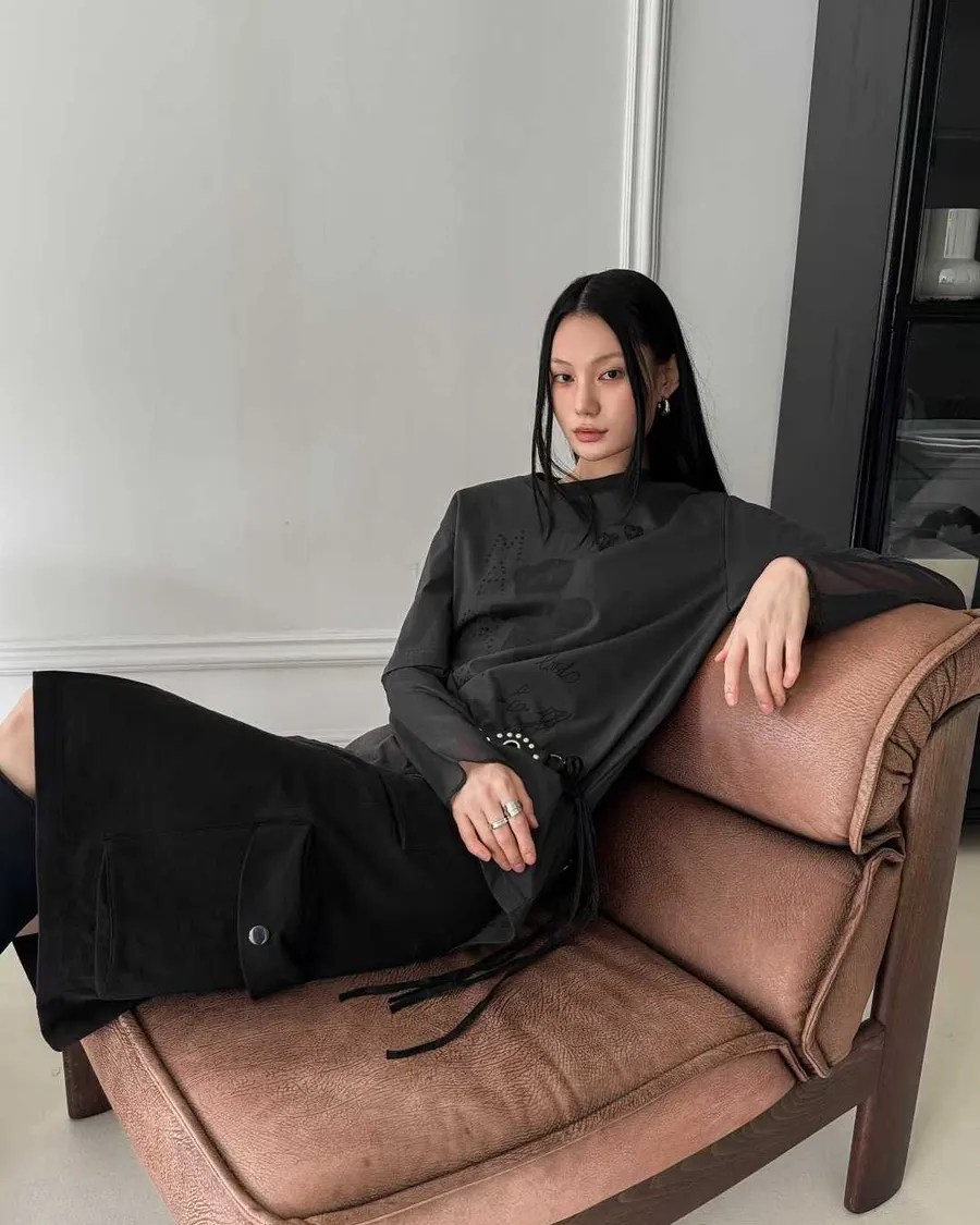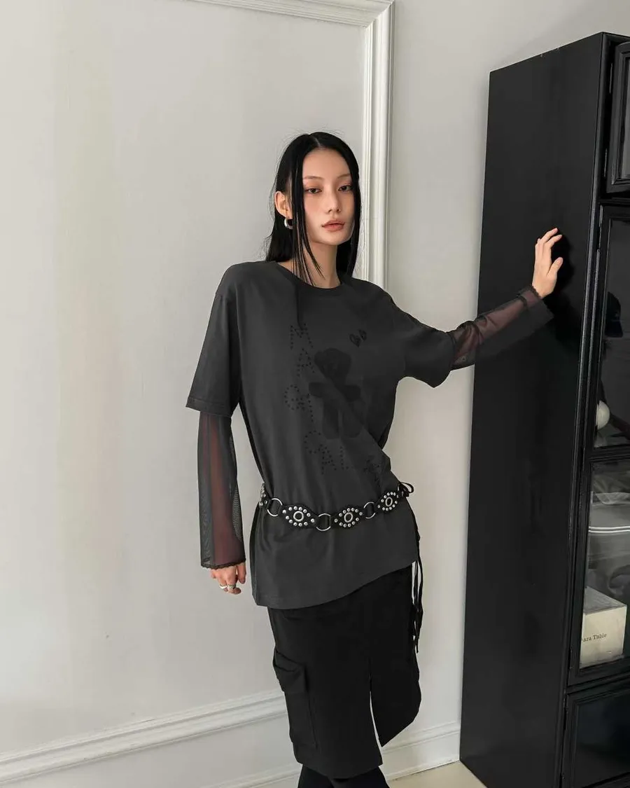 - 蕾絲透膚拼接袖 → 假兩件設計感。